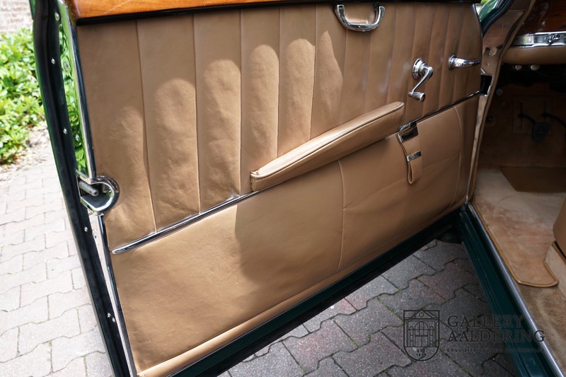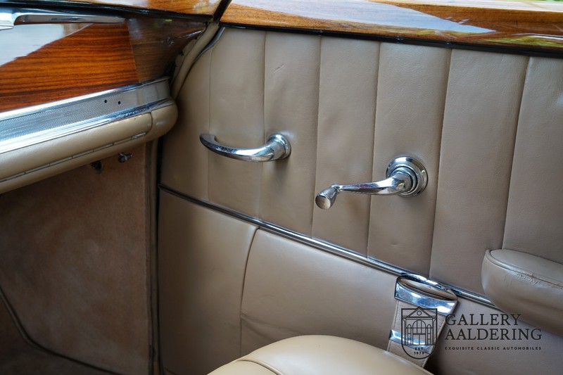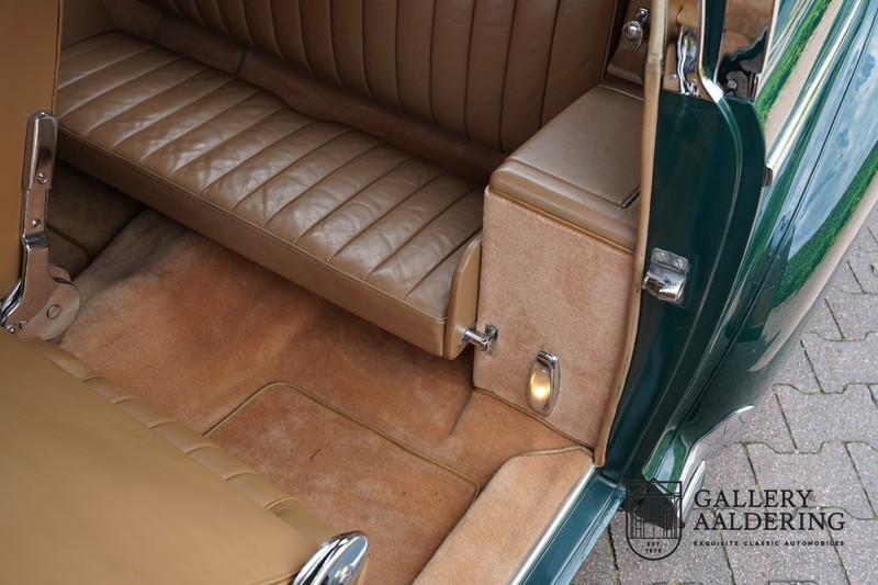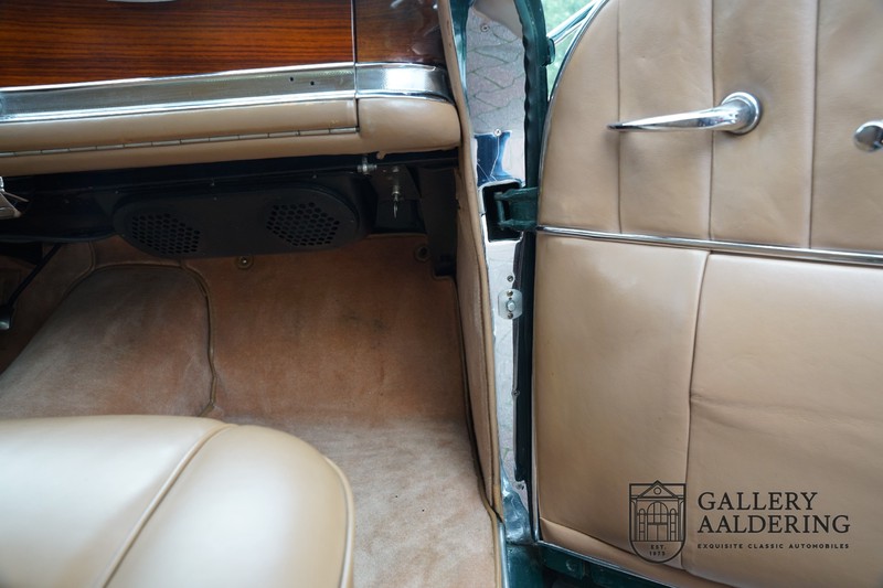 The interior is, we are happy to say, completely original. The matching luggage set is present. The original brown leather is of exceptional quality. The carpets and door cards are also in great condition. All the controls and gauges work exactly as they should. The wooden inlay on the dashboard and doors is also in very good and original condition. Inside time has done nothing to diminish its splendour.