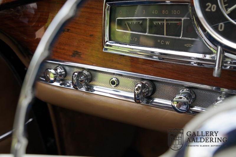 The perfect mechanical maintenance left nothing to chance. The M188 engine would later evolve into the M198 found in the world famous Mercedes-Benz Gullwing. This one is a 3 litre straight-six with three Solex carburettors. The engine produces 150 PS at 5,500 RPM and is attached to a manual 4-speed transmission. It has all-round good working drum brakes. The 300S also has the benefit of independent suspension on all fours. Perishable items such as suspension, door and window rubbers are also in good condition.