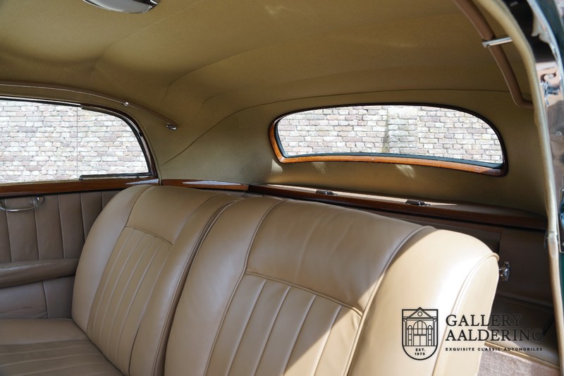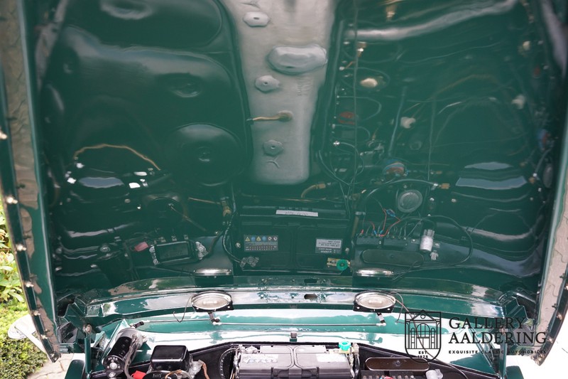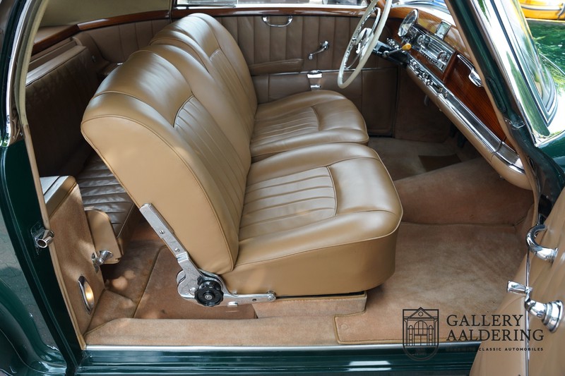 Het interieur daarentegen is volledig origineel. Er is een bijpassende originele koffer-set aanwezig. Het bruine leder is van exceptioneel hoge kwaliteit en volledig origineel. De tapijten en deurpanelen verkeren eveneens in zeer goede staat. De bedieningselementen en instrumenten functioneren eveneens allemaal precies zoals het hoort. Ook de houtinleg op de portieren en het dashboard verkeert in zeer goede en originele staat. De kwaliteit van het interieur heeft de afgelopen decennia niets aan uitstraling hoeven inboeten.