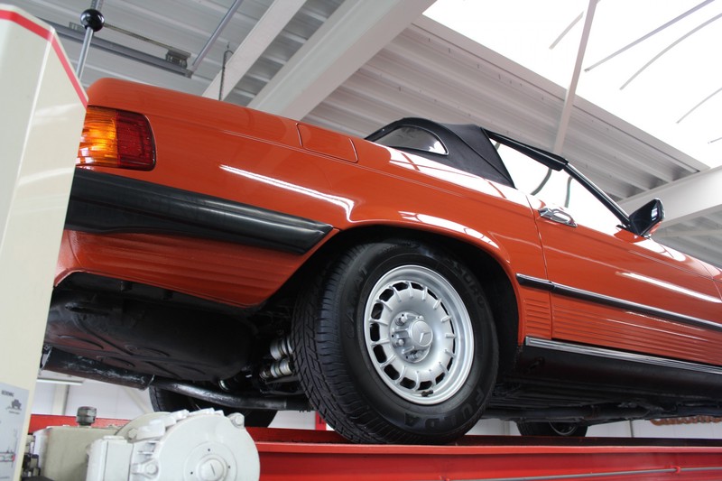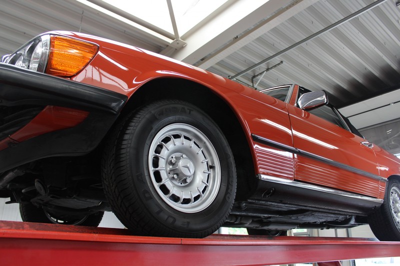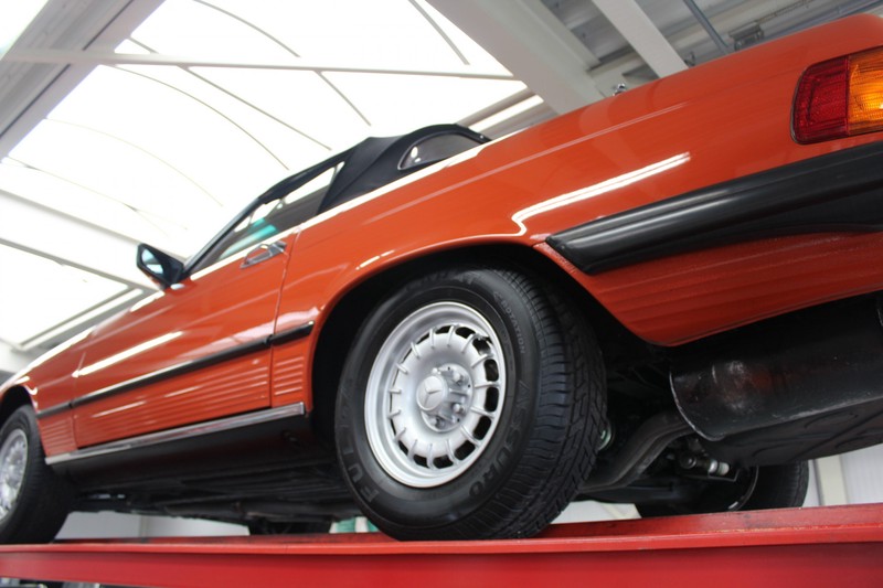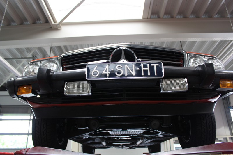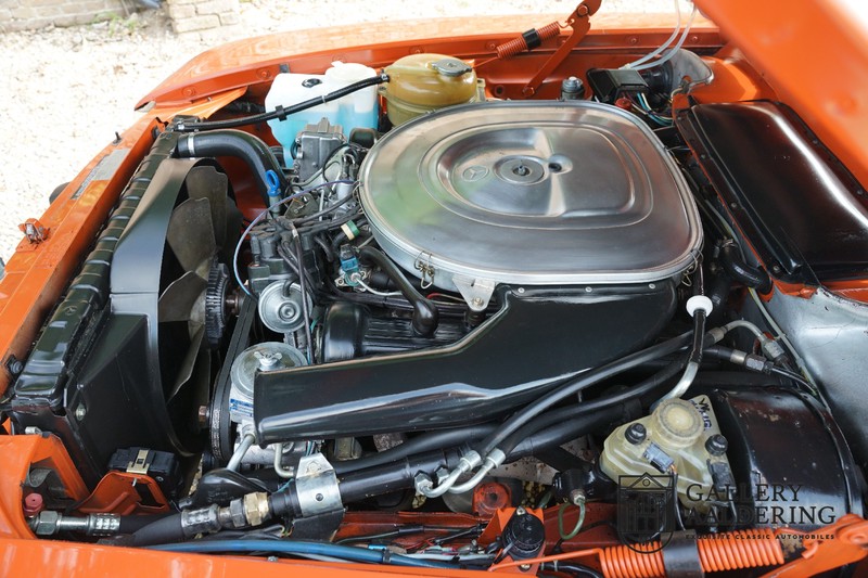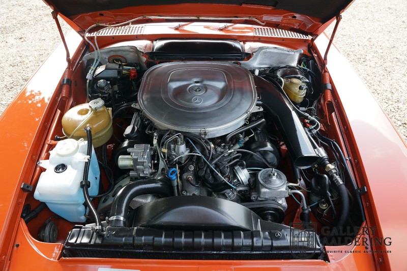 Both engine and gearbox have been fully rebuilt, still to good effect. The 3.8 litre straight-six runs silkily smooth developing 215 Ps at 5,500 rpm and 300 Nm at 4,000 rpm. The engine is coupled to a smoothly working 4-speed automatic transmission, suiting the SL’s relaxed driving characteristics.