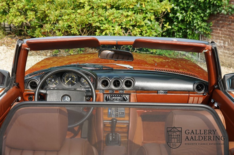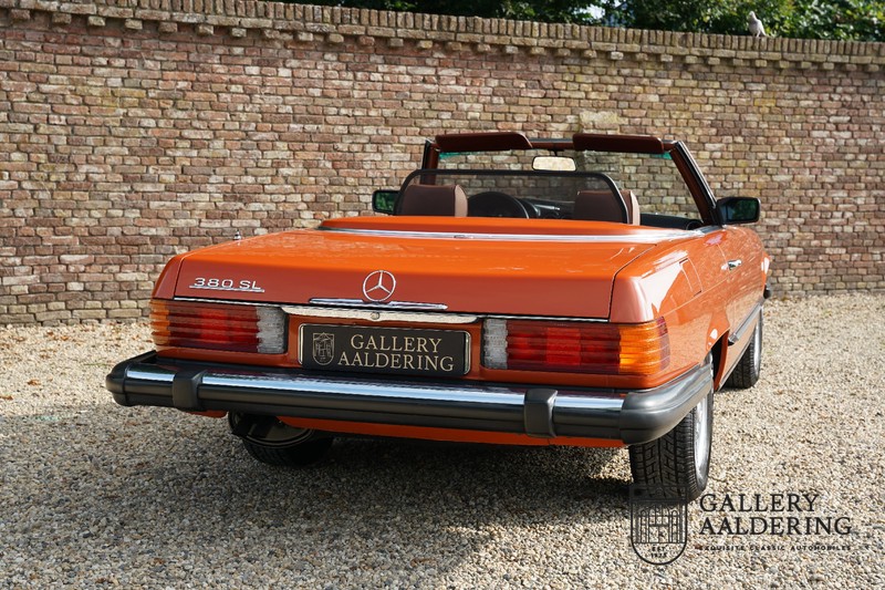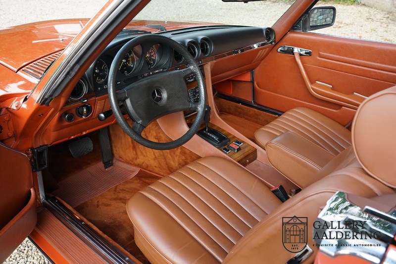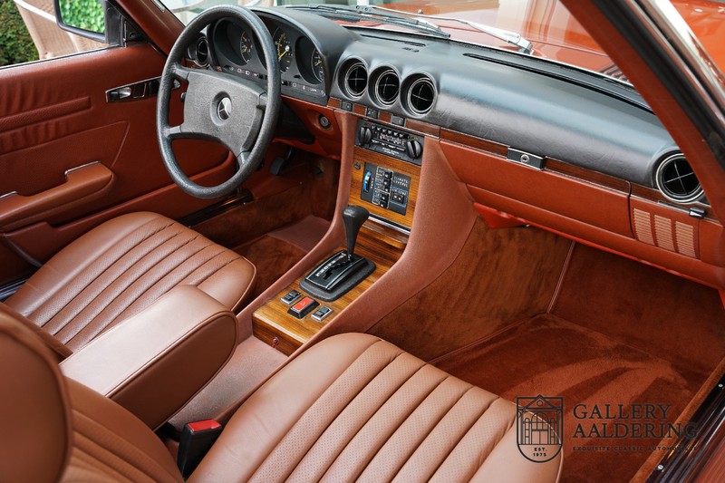 In the past, the interior trim was reupholstered with a keen eye to the original spec. Both the leather and carpets are therefore in excellent condition. This Mercedes-Benz 380SL has a lovely Sonneland convertible hood. The hood’s condition and fit are perfect.