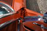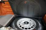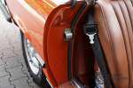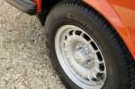 In the past the car was taken back to bare metal and resprayed in its original color. The bodywork looks fine with nice and thin, correctly aligned panelwork. Both chrome brightwork and hubcaps look great.