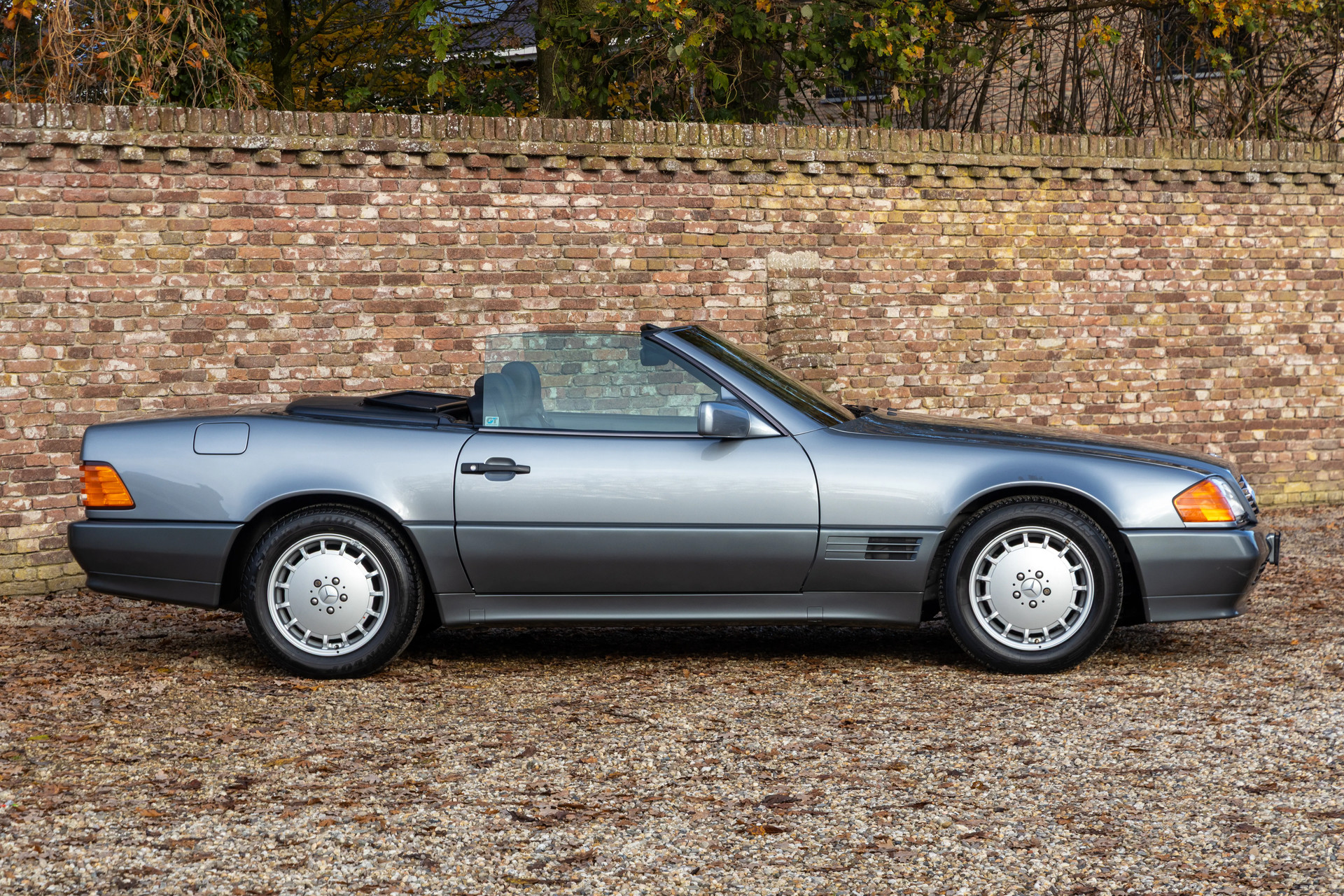 This 1991 500 SL, finished in elegant Pearl Grey over an anthracite leather interior, comes from the private collection of a Mercedes aficionado—and you notice it immediately. The condition is exemplary: a remarkably clean body, an interior with barely any signs of use, and an overall presence that suggests a car no more than five years old.