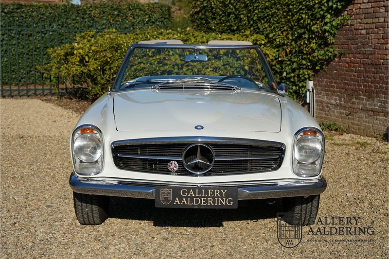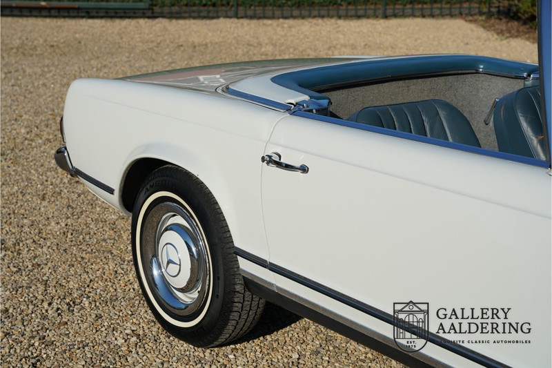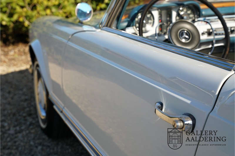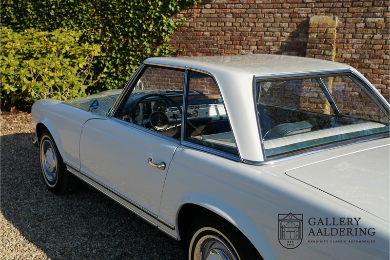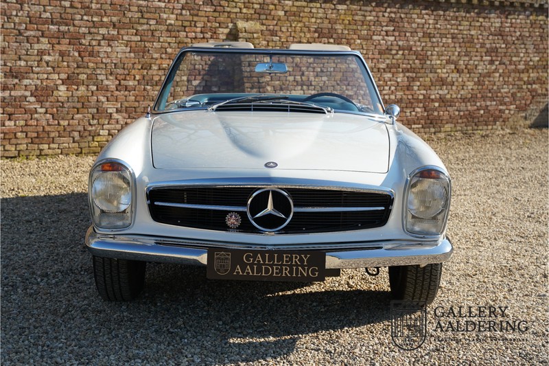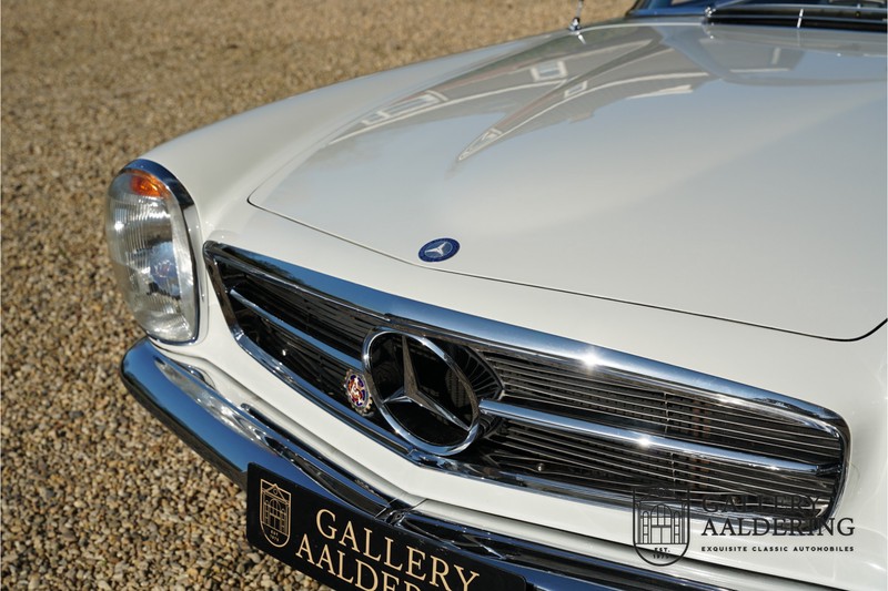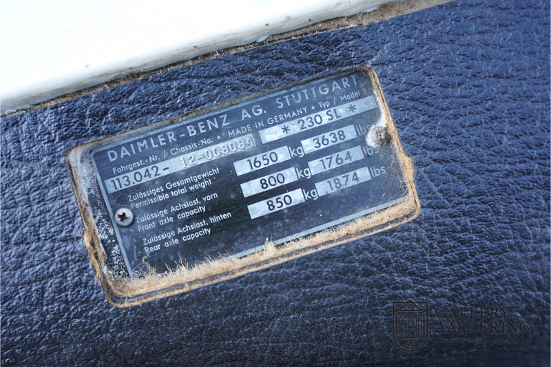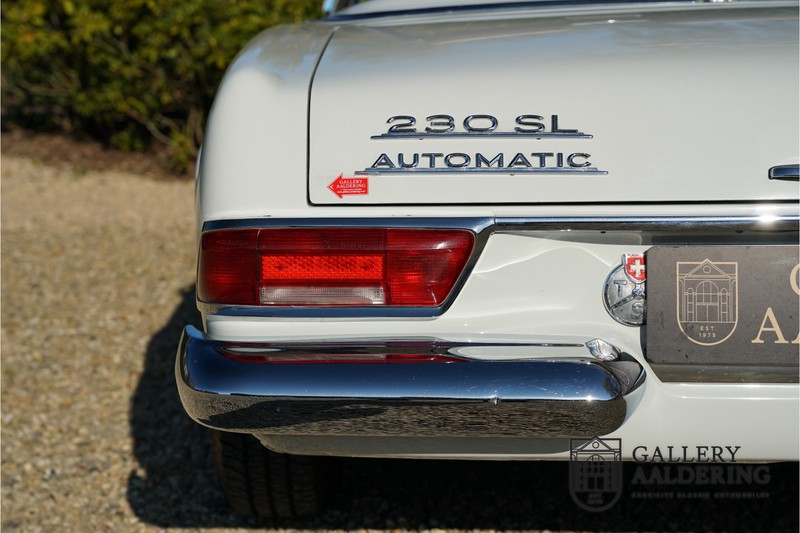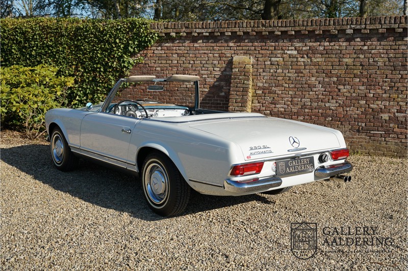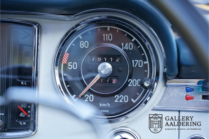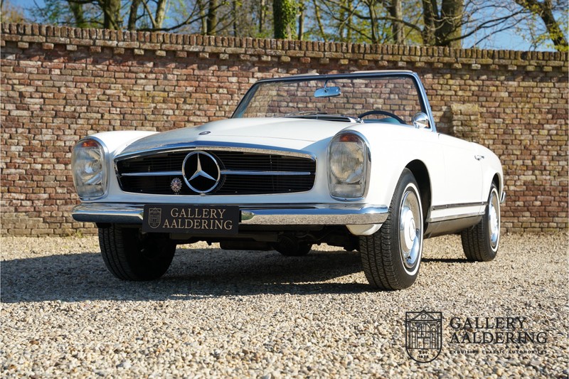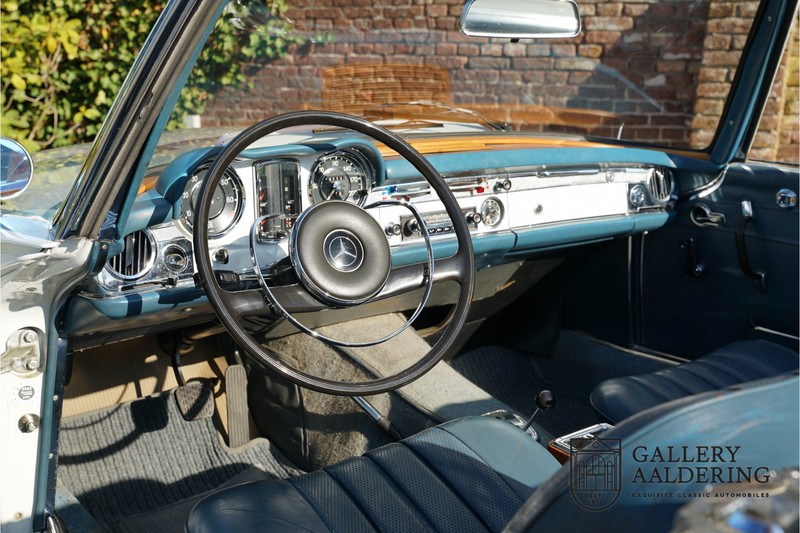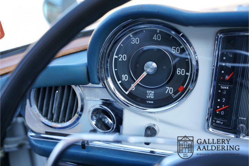 Mechanically the previous owner took good care of the car. The engine runs as smooth as can be. The 230SL is a great car to tour over long distances and thanks to its typical Mercedes-Benz build quality this is no problem at all. The Pagoda is assisted by its original power steering. Over the last few years the brakes, suspension bushes and battery have been replaced. This car drives exactly as you would expect from a proper Mercedes-Benz. Invoices relating to this maintenance are of course included in the car’s itinerary. The car is therefore mechanically as well as visually in fine condition, all you need to worry about is getting in and choosing a nice destination. Gallery Aaldering is Europe’s leading Classic Cars specialist since 1975! Always 400 Classic and Sportscars in stock, please visit www.gallery-aaldering.com for the current stock list (all offered cars are available in our showroom) and further information. We are located near the German border, 95 km from Düsseldorf and 90 km from Amsterdam. So easy traveling by plane, train, taxi and car. Transport and worldwide shipping can be arranged. No duties/import costs within Europe. We buy, sell and provide consignment sales (selling on behalf of the owner). We can arrange/provide registration/papers for our German (H-Kennzeichen, TÜV, Fahrzeugbrief, Wertgutachten usw.) and Benelux customers. Gallery Aaldering, Arnhemsestraat 47, 6971 AP Brummen, The Netherlands. Tel: 0031-575-564055. Quality, experience and transparency is what sets us apart. We look forward to welcoming you in our showroom