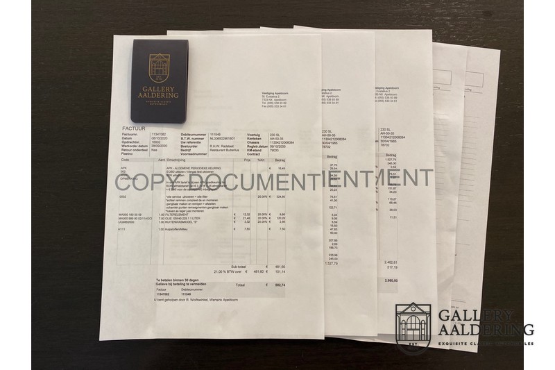 Mechanically the previous owner took good care of the car. The engine runs as smooth as can be. The 230SL is a great car to tour over long distances and thanks to its typical Mercedes-Benz build quality this is no problem at all. The Pagoda is assisted by its original power steering. Over the last few years the brakes, suspension bushes and battery have been replaced. This car drives exactly as you would expect from a proper Mercedes-Benz. Invoices relating to this maintenance are of course included in the car’s itinerary. The car is therefore mechanically as well as visually in fine condition, all you need to worry about is getting in and choosing a nice destination. Die Gallery Aaldering in den Niederlanden existiert seit 1975 und ist Marktführer in Europa im Bereich von klassischen Fahzreugen. Es sind immer 400 klassische Fahzreuge und Sportwagen auf Vorrat. Bitte besuchen Sie unsere Website www.gallery-aaldering.com für den aktuellen Vorrat und weitere Informationen. Alle gezeigte Fahrzeuge sind zu besichtingen in unseren Ausstellungsräumen. Wir haben unseren Sitz unweit der deutschen Grenze, 95 Km Entfernung von Düsseldorf und 90 Km Entfernung von Amsterdam, gut erreichbar mit dem Zug, Auto, Taxi und Flugzeug. Transport und Versand weltweit kann versorgt werden, innerhalb von Europa fallen keine Importsteuern oder Zollkosten an. Unsere Kerntätigkeiten sind Ankauf, Verkauf und Konsignationverkauf. (im Auftrag vom Kunde) Wir versorgen alle Zulassungsunterlagen (H-Kennzeichen, Fahrzeugbrief, Wertgutachten usw.) für unsere deutsche- und Beneluxkunden. Bei uns können Sie auch leasen oder finanzieren! Unser Leasingpartner bietet maßgeschneiderte Lösungen für private und gewerbliche Kunden. Gallery Aaldering, Arnhemsestraat 47, 6971 AP Brummen in den Niederlanden. T. 0031-575-564055 Qualität, Erfahrung und Transparenz sind unsere besondere Merkmale! Wir freuen und auf Ihren Besuch.