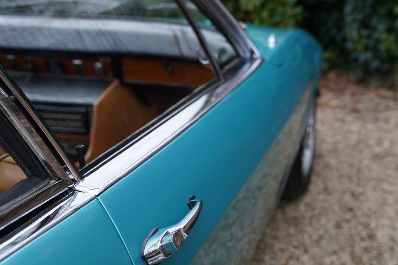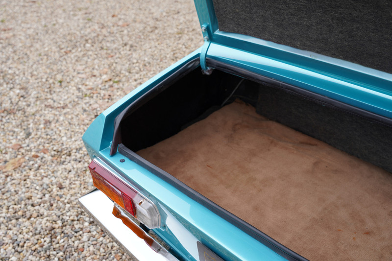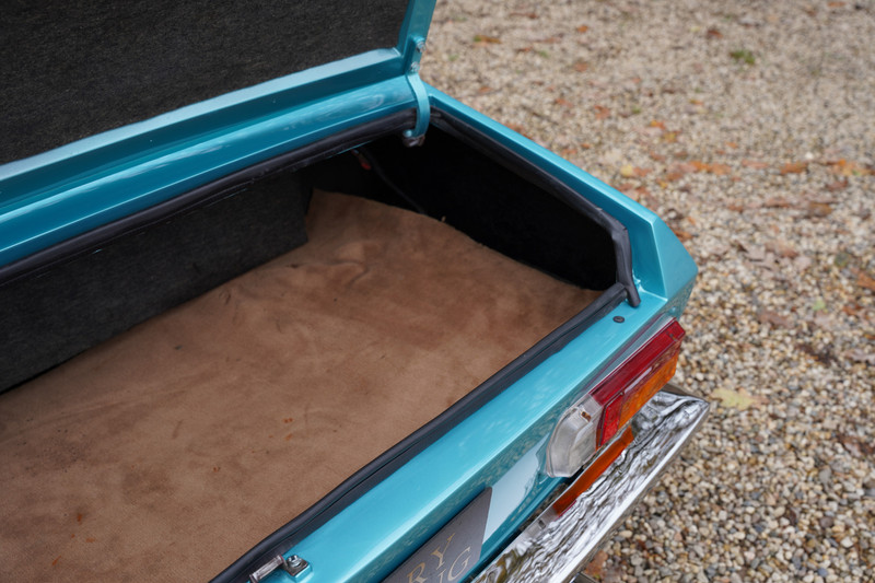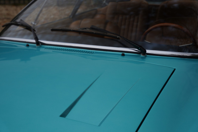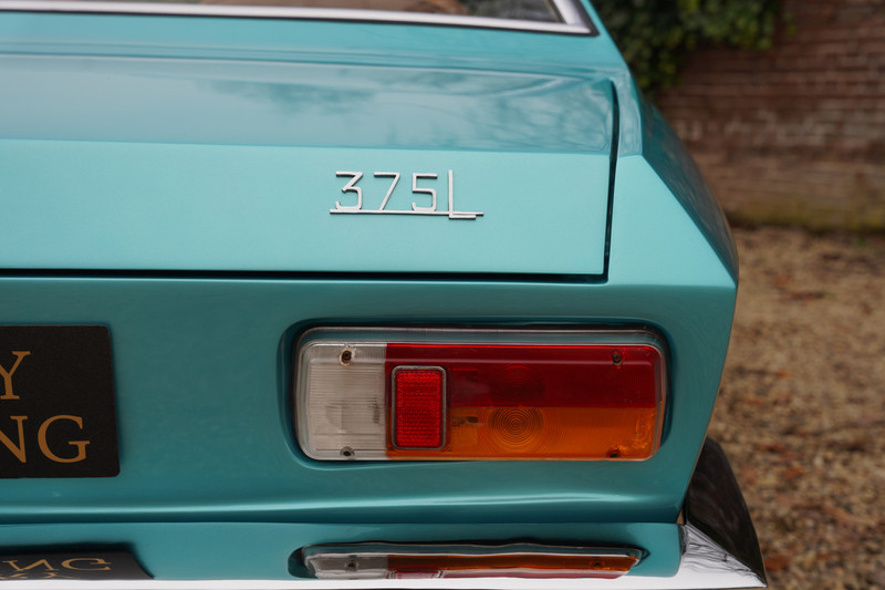 Dieser 375 L befindet sich in einem sehr schönen Zustand. Das Fahrzeug ist ein sehr originales und nicht restauriertes Exemplar. Das Auto hat die Zeit gut durchstanden, wir sprechen mit ziemlicher Sicherheit von einem Auto, dessen Originalkilometerstand auf dem Tacho steht. Das Auto wurde in der Vergangenheit schon mal neulackiert und hat einen wunderschönen meeresblauen Farbton mit einem unglaublich passenden cognacfarbenen Leder.