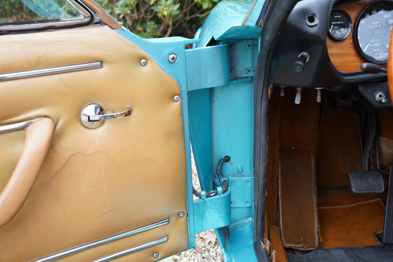 Voor zowel de carrosserie als het interieur geldt dat de auto een frisse indruk maakt en overtuigt qua originaliteit. Veel van dit soort bijzondere en weinig voorkomende auto’s worden door de decennia heen een beetje verprutst met niet originele delen maar deze auto oogt nog zoals hij hoort.