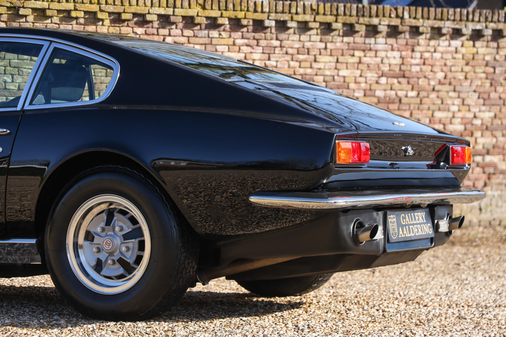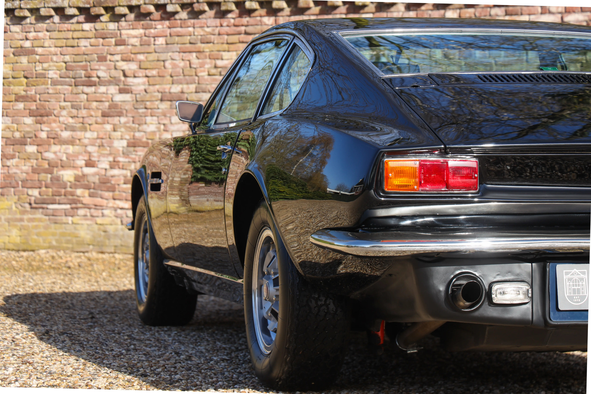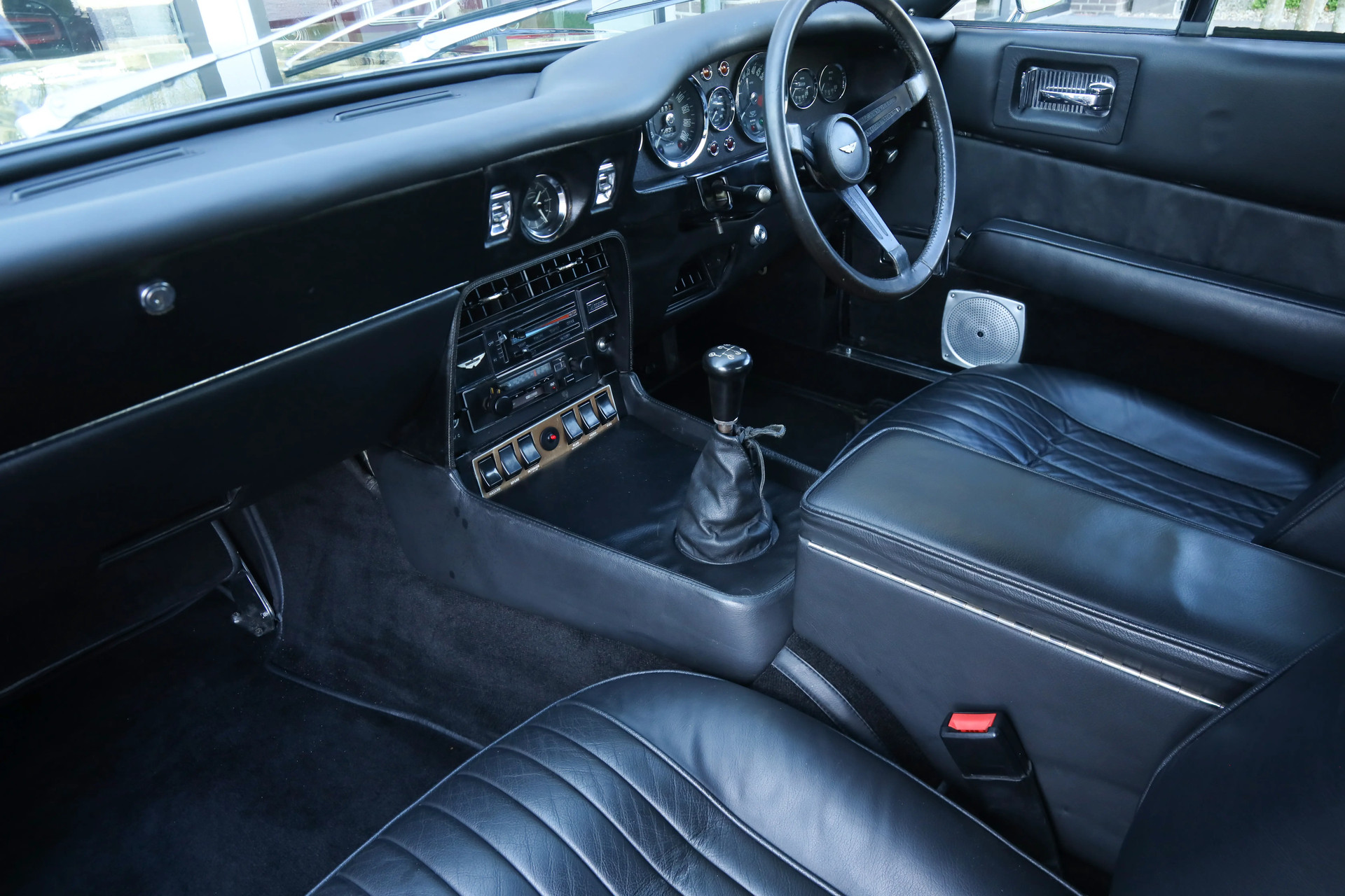 Laten we beginnen met de belangrijkste details. Deze Aston Martin presenteert zich in een goede en grotendeels originele staat. Deze wagen is zeer goed onderhouden in Engeland door erkende Aston Martin specialisten en gedocumenteerd door liefhebbers. Oorspronkelijk geleverd in Silver Blue, is de auto later uitgevoerd in een zwart-op-zwart kleurstelling die hem bijzonder goed staat.