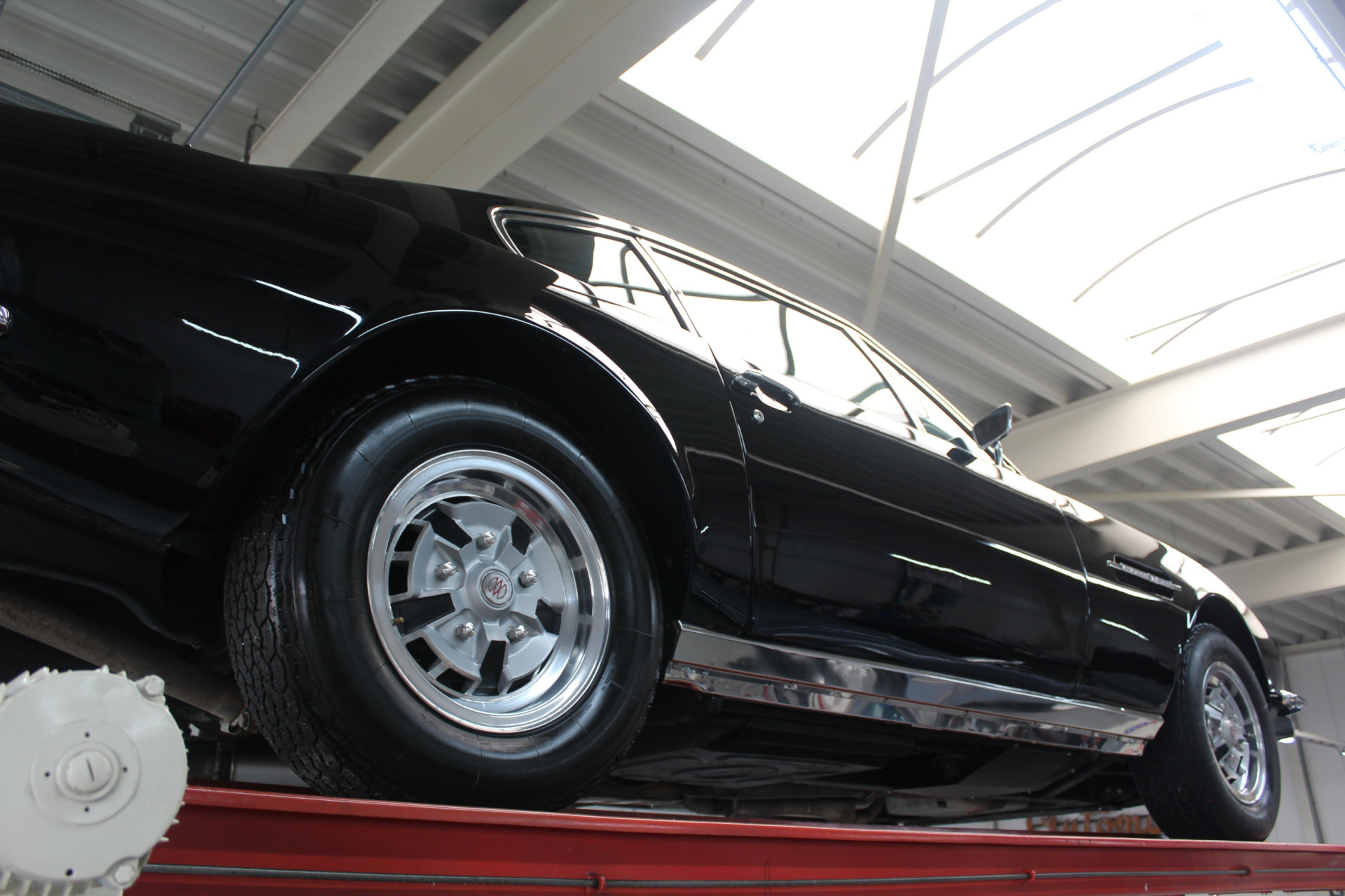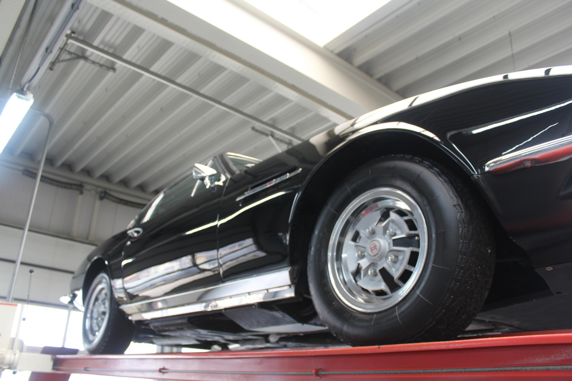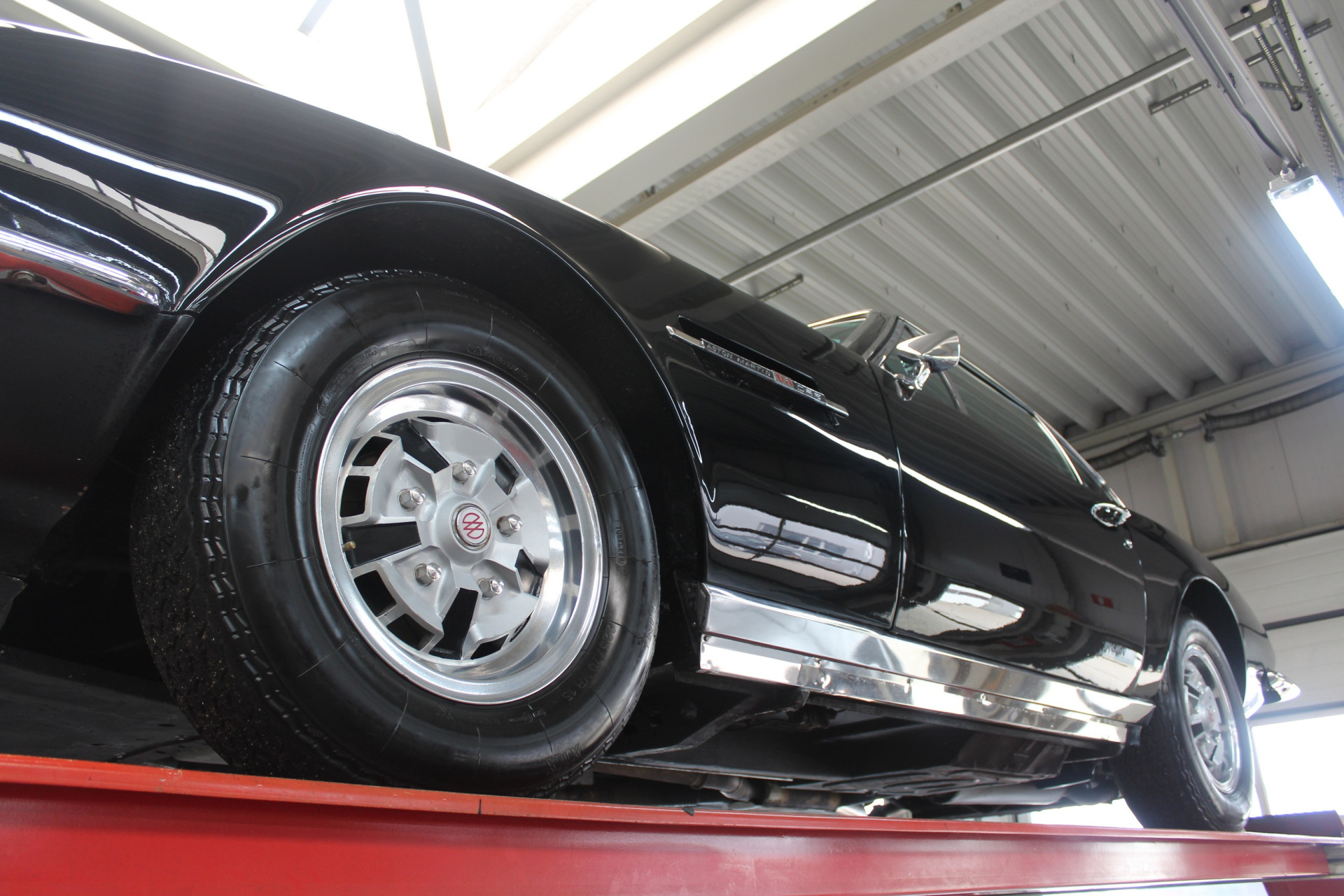 Beginnen wir mit den wesentlichen Details. Dieses Fahrzeug präsentiert sich in einem guten und weitgehend originalen Zustand, mit gezielten Verbesserungen, wo sinnvoll. Es wurde in England von anerkannten Aston-Martin-Spezialisten gewartet und aufgearbeitet und ist durch Enthusiasten dokumentiert. Ursprünglich in Silver Blue ausgeliefert, wurde es später in eine schwarz-auf-schwarz Farbgebung umlackiert, die dem Fahrzeug hervorragend steht.