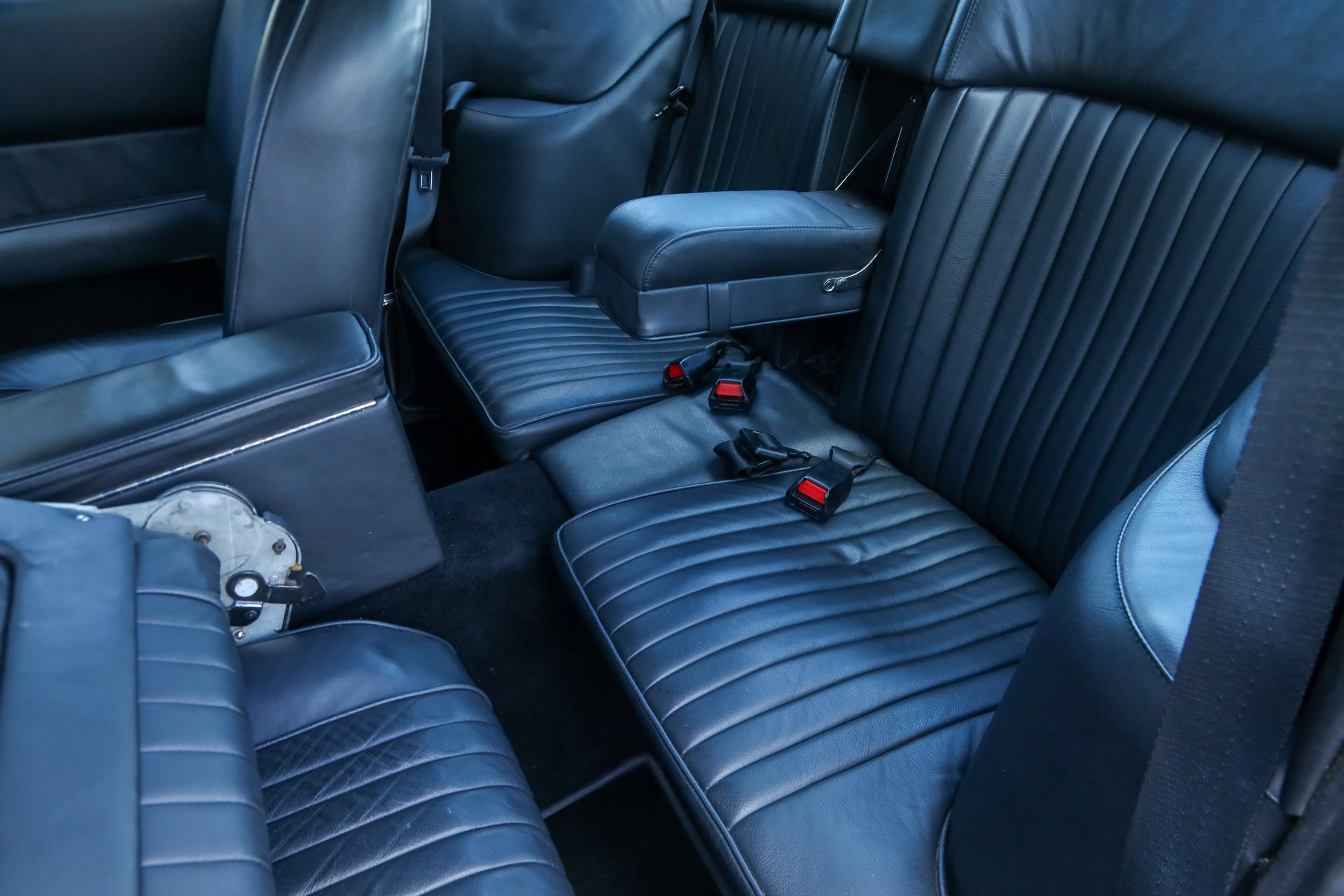 L’extérieur se présente dans un état très soigné avec une belle peinture. Les détails tels que les pare-chocs et les jantes sont également en excellent état. À l’intérieur, les sièges en cuir sont bien conservés, tout comme les moquettes. Ce qui renforce l’attrait de cet exemplaire, c’est la manière dont il a été traité au fil du temps. Entretenu par des spécialistes, documenté et conservé proche de sa configuration d’origine, il offre une vision claire de l’expérience telle qu’elle était prévue.