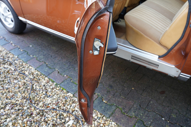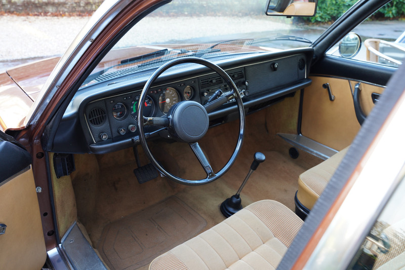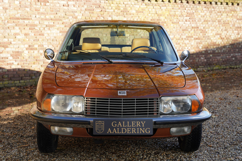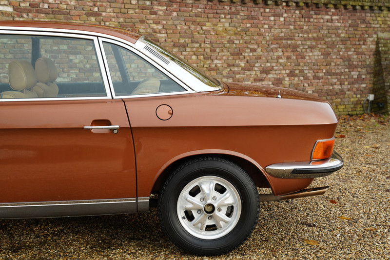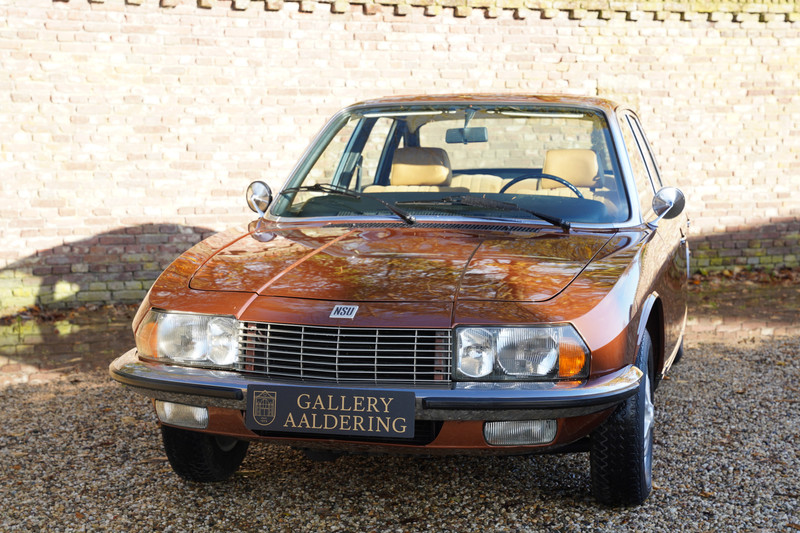 The model you see here is from 1976 and is a real time machine. Dark brown on the outside and beige fabric upholstery on the inside; what a wonderful 70s atmosphere that is captured! This NSU has travelled 96,000 kilometers and is equipped with a sunroof and comes with the original manual and booklets. This car was originally delivered in Germany and has German registration.
