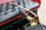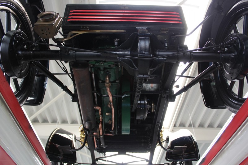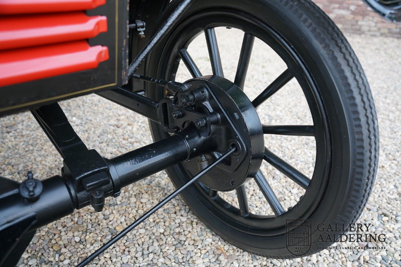 Our car is in a wonderful restored condition. The Oldsmobile 6C was also known as the “Curved Dash”. Early cars all look like a coach without horses with the Oldsmobile 6C being no exception. They did not resemble anything we see on the roads today. This type of car was called a “Runabout” as they were not suitable to cover larger distances and mainly used in cities. The car has place for two people and is steered using a rod directly attached to the front wheels. The fully rebuilt engine is richly adorned with cooper parts. It is a wonderful piece of old fashioned technology simply not seen these days. The one cylinder engine delivers its power using a chain to the rear wheels. It a two forward gears and one reverse. Blasting ones horn is done by means of one of those iconic air pressure horns attached to the steering rod. The bodywork is in great shape and during the restoration it was decided to spray it in the same colour as the original Oldsmobile 6C prototype.