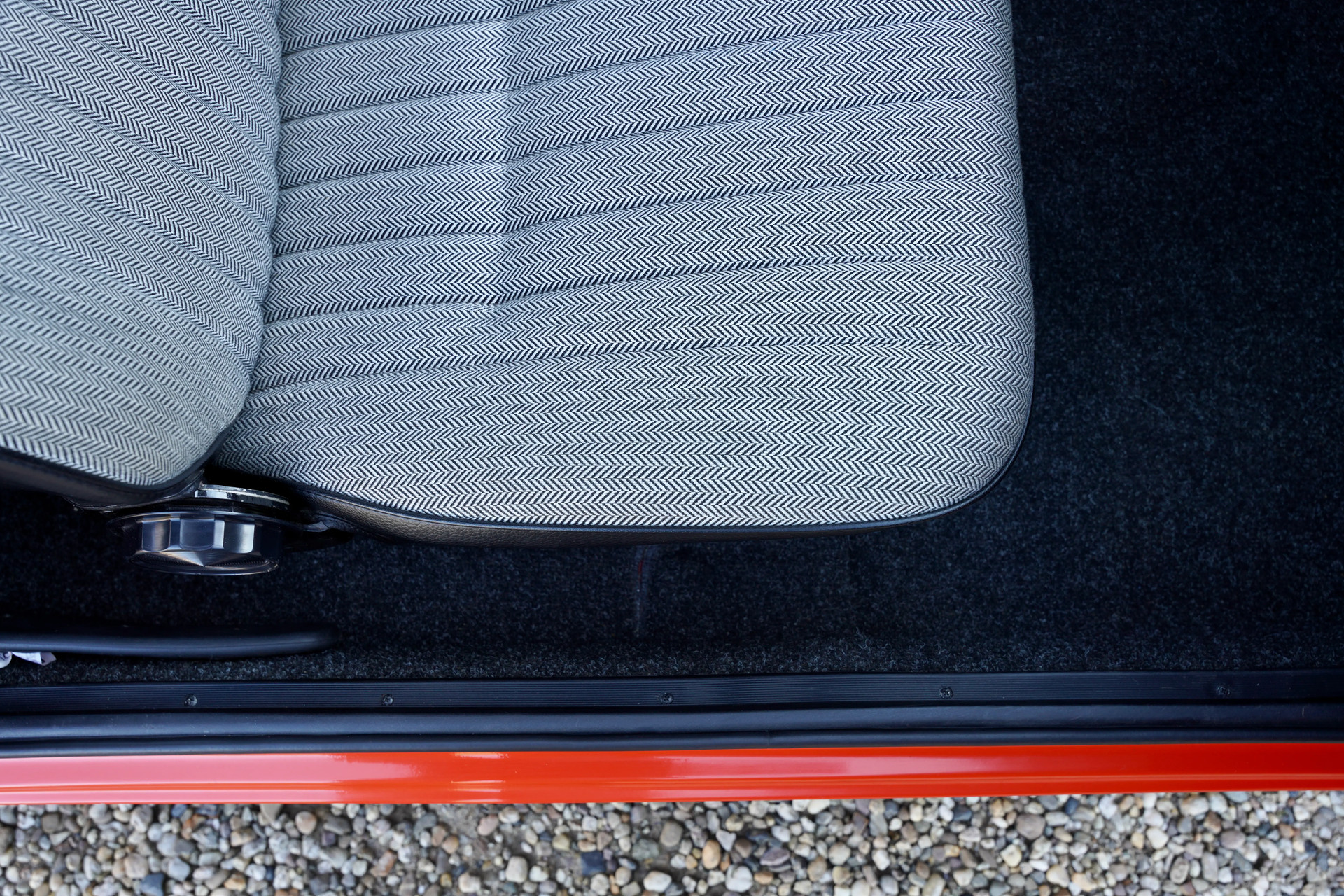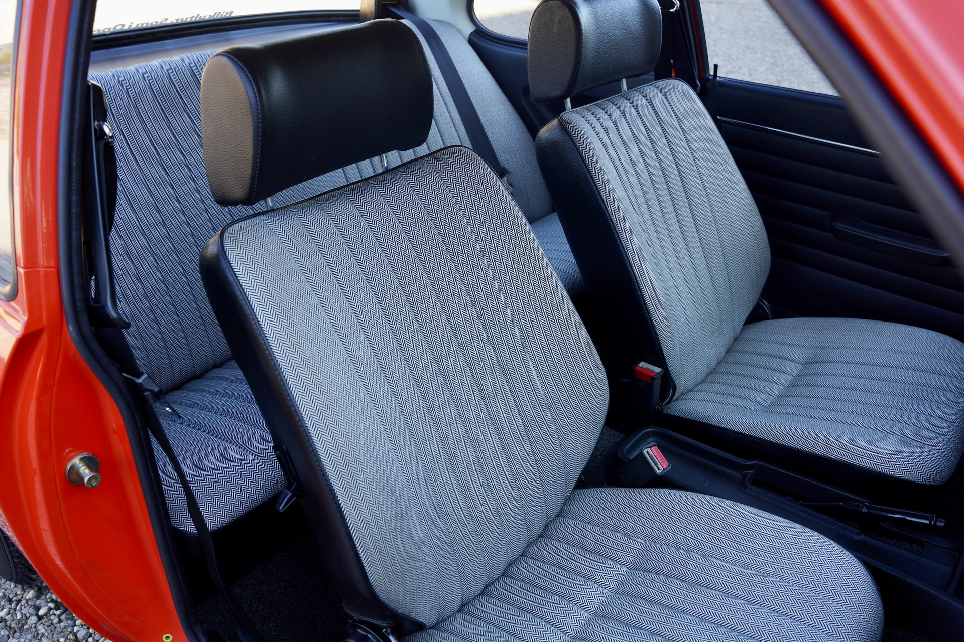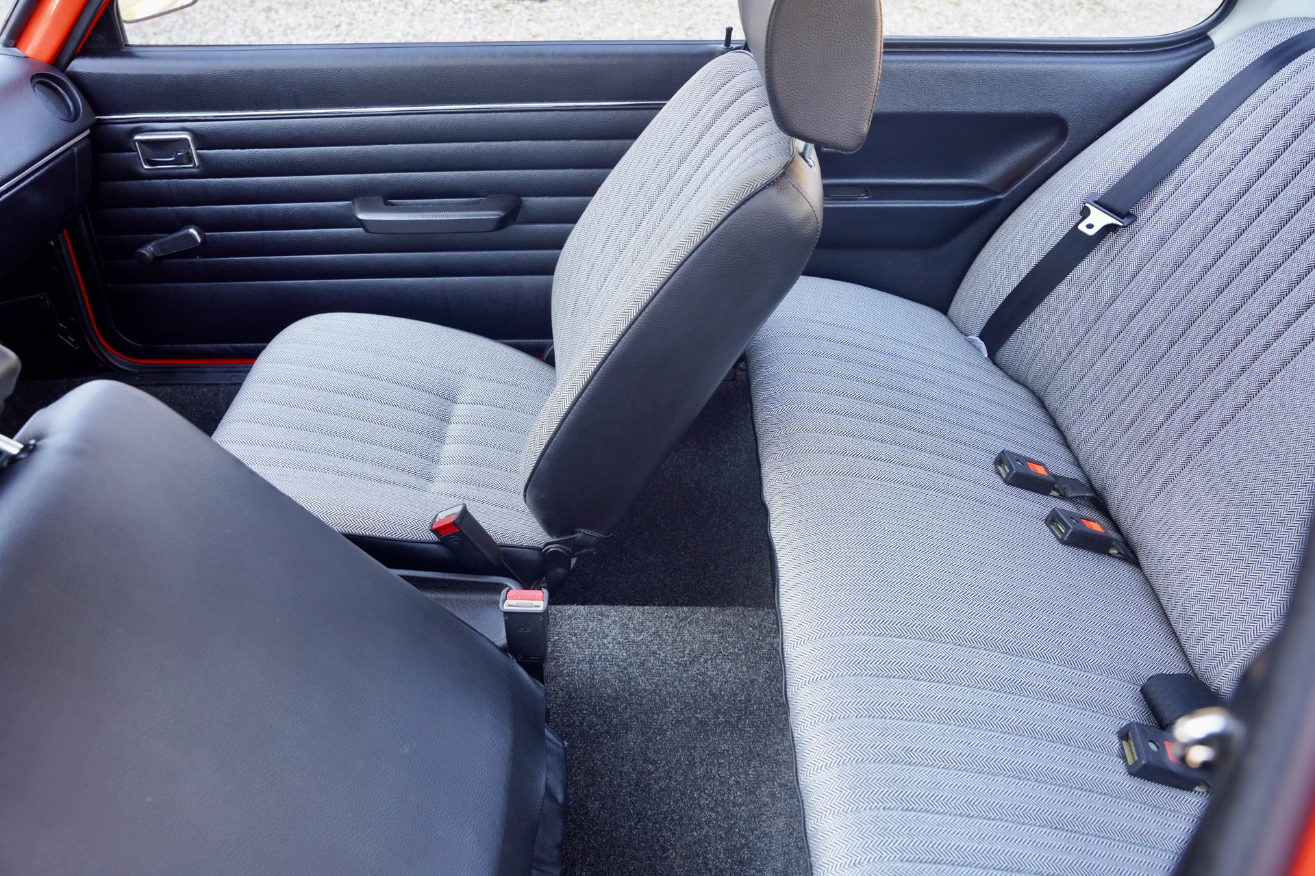 This is not a restored classic or a car that’s been rebuilt with fresh paint and updated upholstery. No, this Ascona is genuinely original. The paint? Signal Red, still the stunning factory-original finish. The interior? The black-and-white fabric upholstery looks as if you’ve stepped straight into a showroom in 1977—still fresh, crisp, and practically like new. Even the original service booklets and accompanying folder are still present.