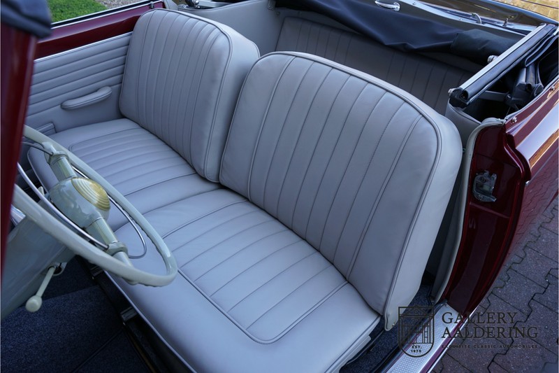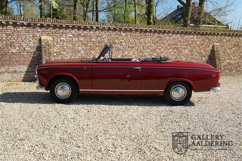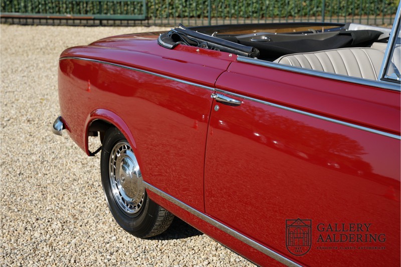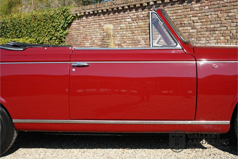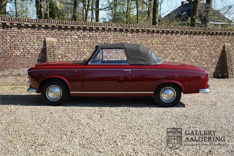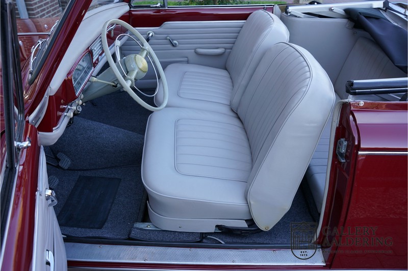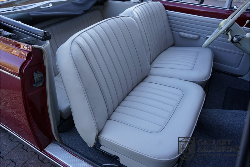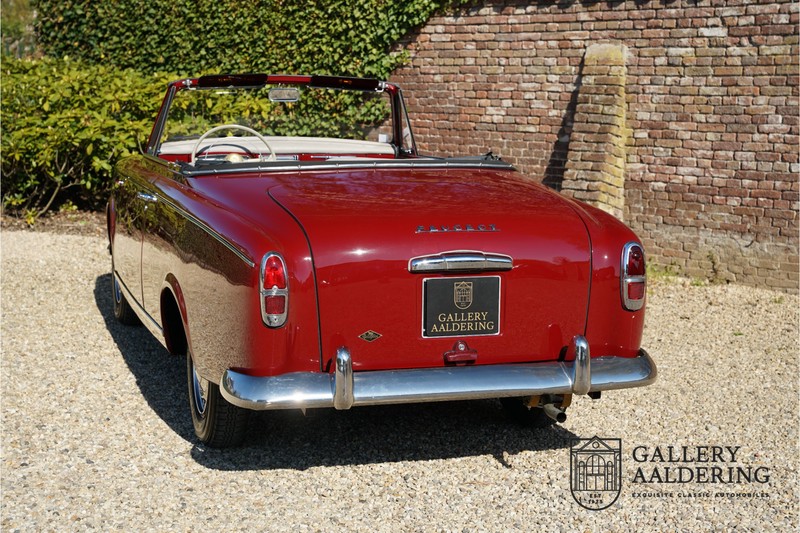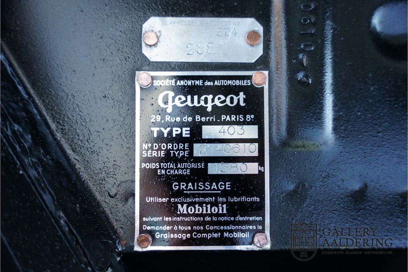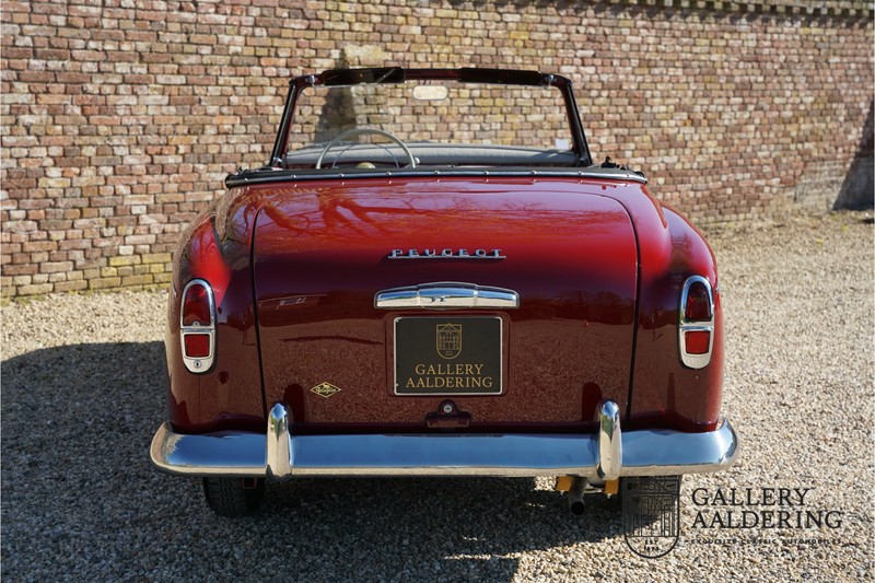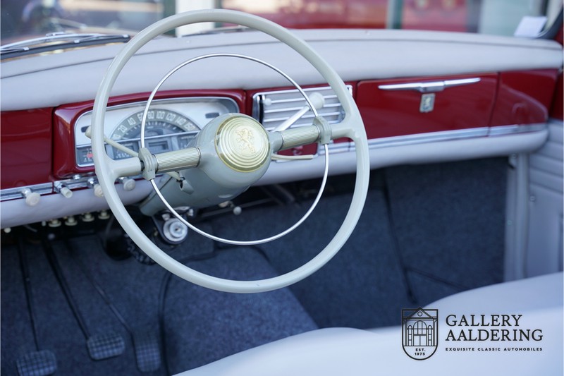 Als je kijkt naar de totale verkoopaantallen van de Peugeot 403 dan is het aandeel van de 403 cabriolet zeer minimaal. Tussen 1955 en 1965 verkocht Peugeot 1,2 miljoen 403’s. Slechts 2.043 daarvan waren een 403 Cabriolet. De 403 werd in tegenstelling tot de meeste Peugeots uit die tijd in Italië bij Pininfarina gebouwd. Pininfarina tekende voor het ontwerp en mocht de auto tevens bouwen. De 403 Cabriolet was bovendien de start van een zeer langdurige relatie tussen het Italiaanse designhuis en de Franse autobouwer die tot en met de beeldschone 406 coupé zou duren. De relatief lage verkoopaantallen waren eigenlijk een rechtstreeks gevolg van de forse meerprijs ten opzichte van een gewone 403. Voor de prijs van een 403 cabriolet kon je bijna twee gewone 403’s kopen. In de jaren ’70 kreeg de bekendheid van de 403 Cabriolet nog een impuls dankzij de hit-serie Colombo. De populariteit van het model was in de jaren daarna echter tanende en dientengevolge zijn er maar weinig exemplaren van de 403 Cabriolet bewaard gebleven. Volgens de kenners zouden het er in het ongunstigste geval minder dan 200 kunnen zijn! Dit exemplaar uit 1964 is volledig gerestaureerd en verkeert in goede conditie. De auto heeft altijd in warme oorden rondgereden en daarom hoefde er nog nooit aan het chassis te worden gelast. De foto’s van de onderzijde bevestigen dit.