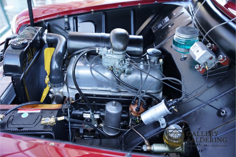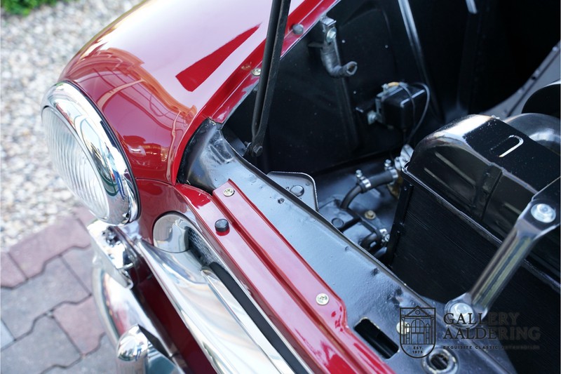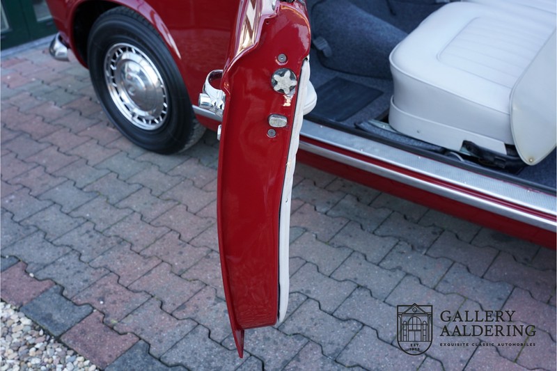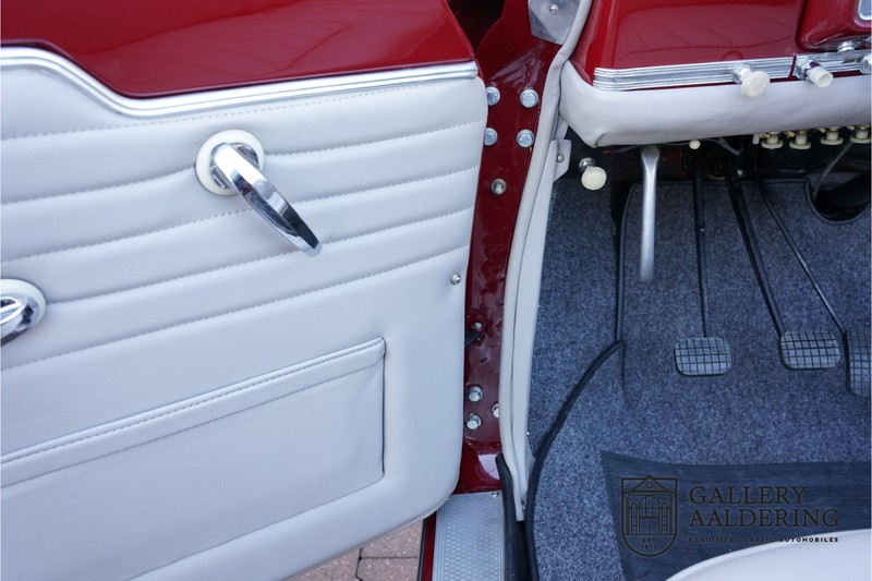 The bodywork is in wonderful condition. The panelwork is nicely thin and correctly aligned. It has a lovely Burgundy red finish, has a practically new perfectly fitting black hood. The interior