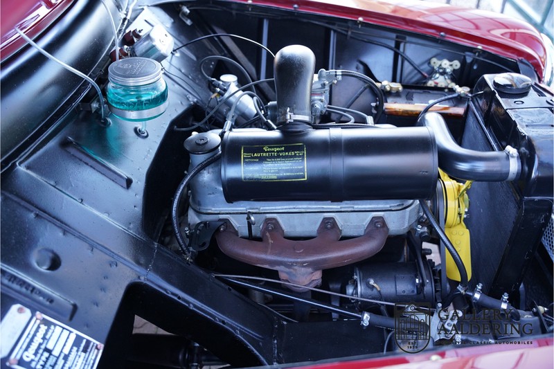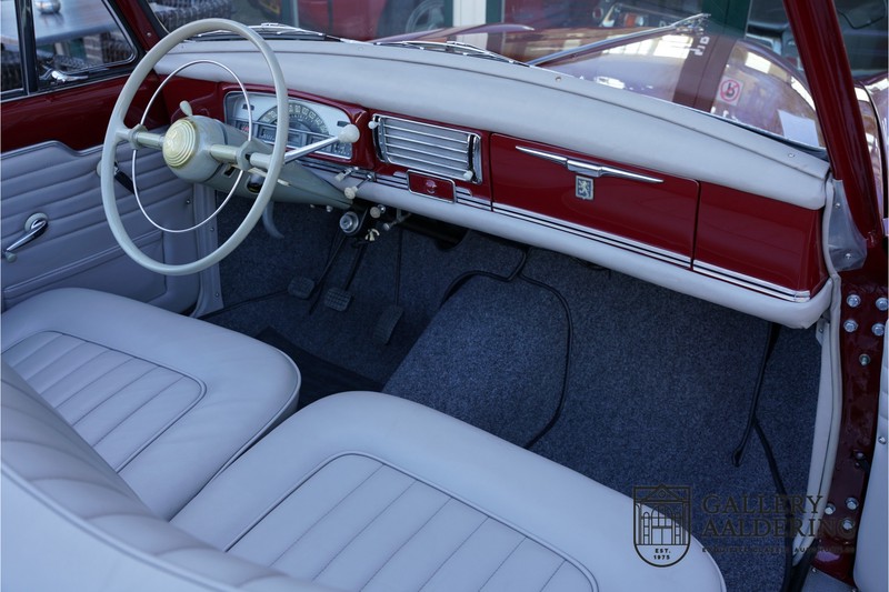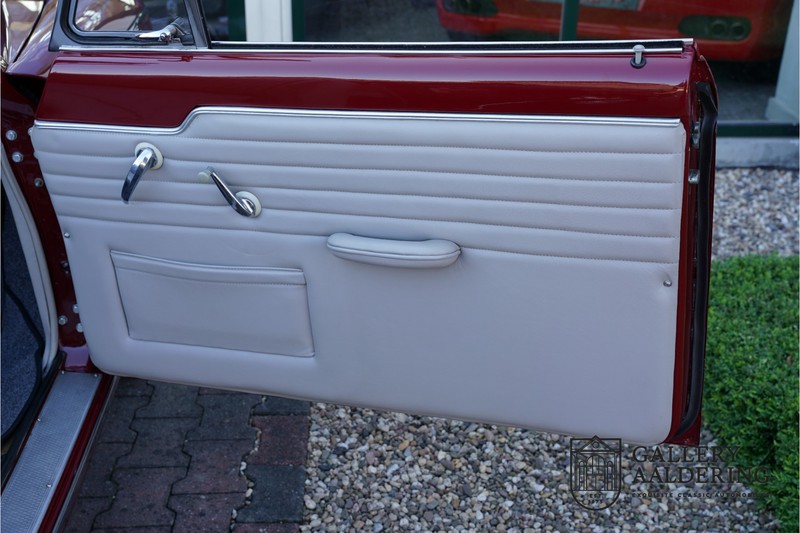 De carrosserie verkeert in prachtige conditie. Het plaatwerk is mooi dun en de passingen zijn correct. De auto is gespoten in een prachtige Bordeauxrode lak. De 403 is voorzien van een zwarte cabrioletkap die overal perfect aansluit. De kap verkeert praktisch in nieuwstaat. Het interieur is tijdens de restauratie volledig opnieuw bekleed met prachtige grijze tapijten en grijs kleurig leder. Het leder heeft wat hele lichte sporen van gebruik die alleen maar bijdragen aan het heerlijke karakter van de auto. De techniek is eenvoudig maar zeer robuust. De 1.5 liter viercilinder motor levert 68 pk en is in goede Franse traditie gekoppeld aan een handbediende transmissie met vier versnellingen en stuurschakeling. De wegligging is heerlijk comfortabel en de auto is een genot om mee onderweg te zijn. De motor is heerlijk soepel en past perfect bij het ontspannen karakter van de auto. De transmissie schakelt precies en alle overige bedieningselementen en instrumenten functioneren zoals het hoort. Kortom een prachtige en zeer zeldzame Peugeot 403 Cabriolet in prachtige gerestaureerde conditie.