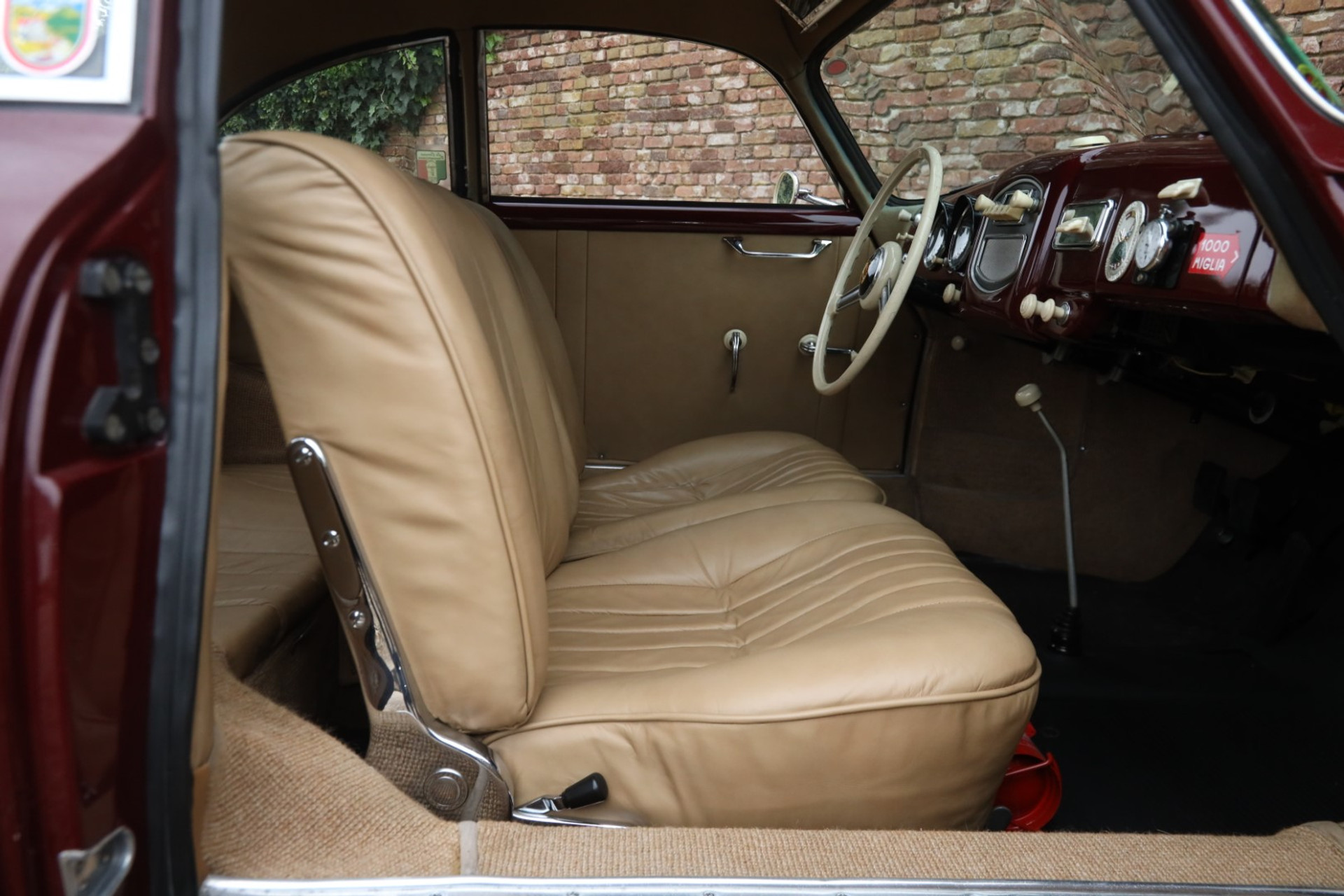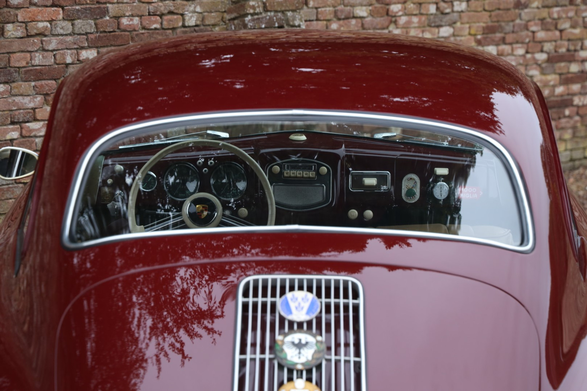 Was diesen Porsche 356 noch besonderer macht, ist seine Authentizität. Er ist weitgehend original geblieben und wurde in all den Jahren nur ein einziges Mal neu lackiert – mit größtem Respekt vor seiner ursprünglichen Erscheinung. Die Farbkombination entspricht nach wie vor der authentischen Auslieferung: Pascha Red mit beigem Lederinterieur, exakt wie er einst das Werk verließ. Zudem liegt das offizielle Porsche Birth Certificate vor, das die Matching Numbers und die originalen Farben bestätigt. Die Karosserie präsentiert sich wunderbar gerade und sauber, der Lack in hervorragender Qualität. Im Innenraum finden sich zahlreiche wunderschöne Details – die Fotos sprechen für sich. Das gesamte Fahrzeug überzeugt durch eine außergewöhnliche Qualität, bei der die Originalität stets im Vordergrund steht.
