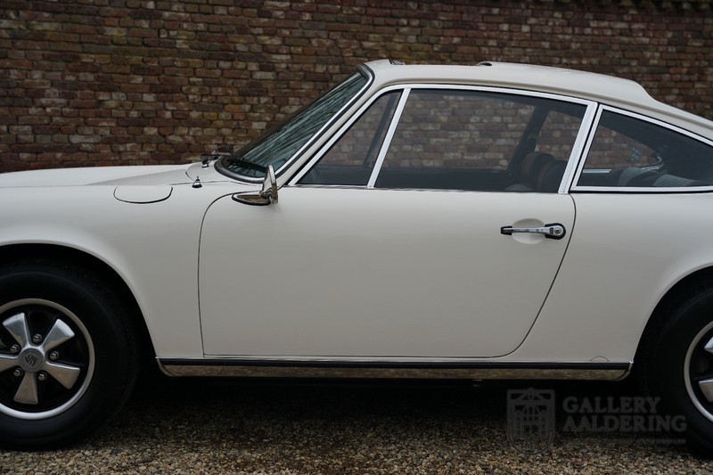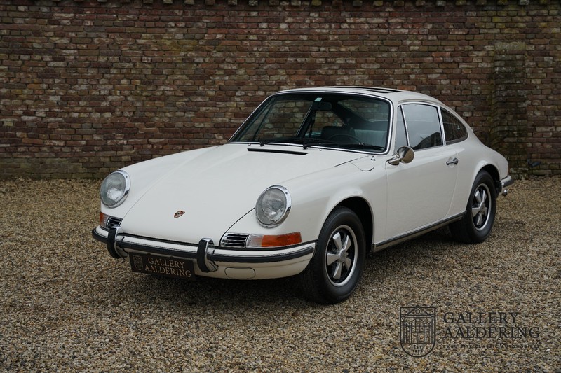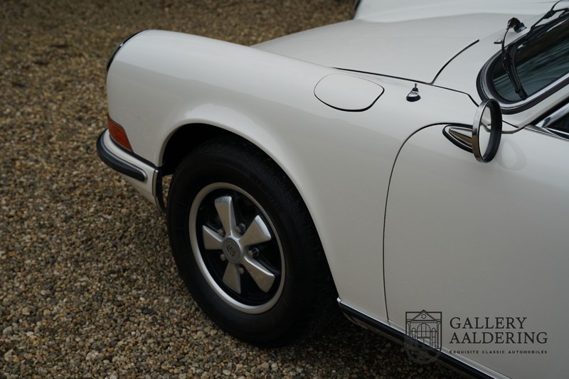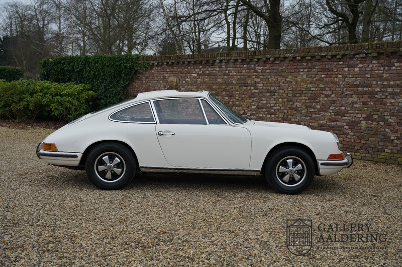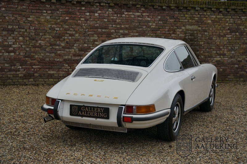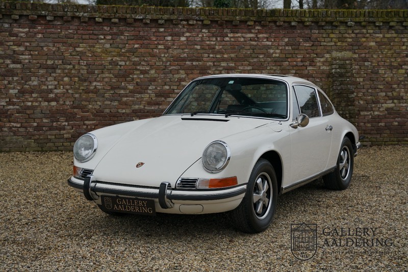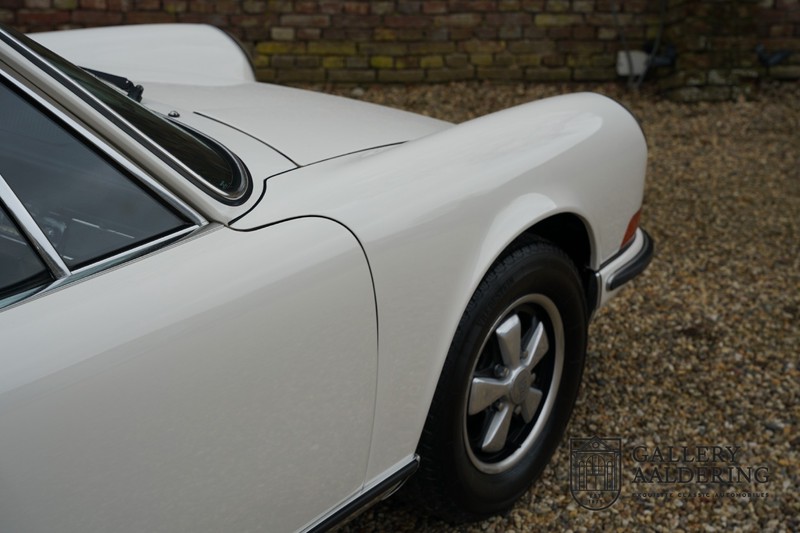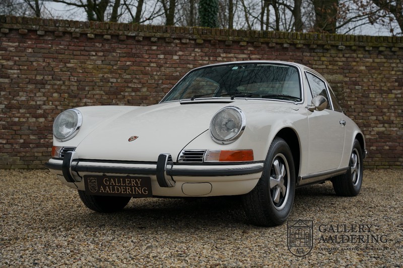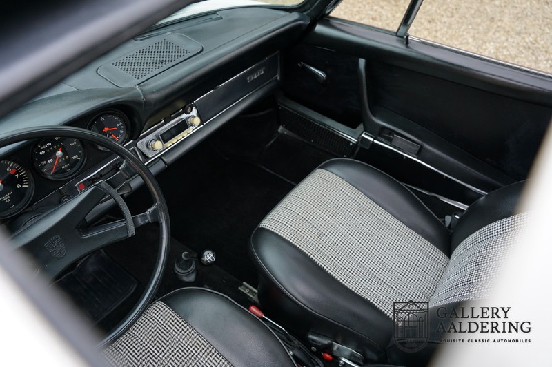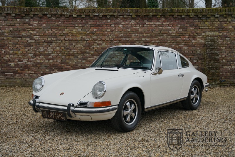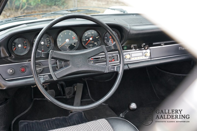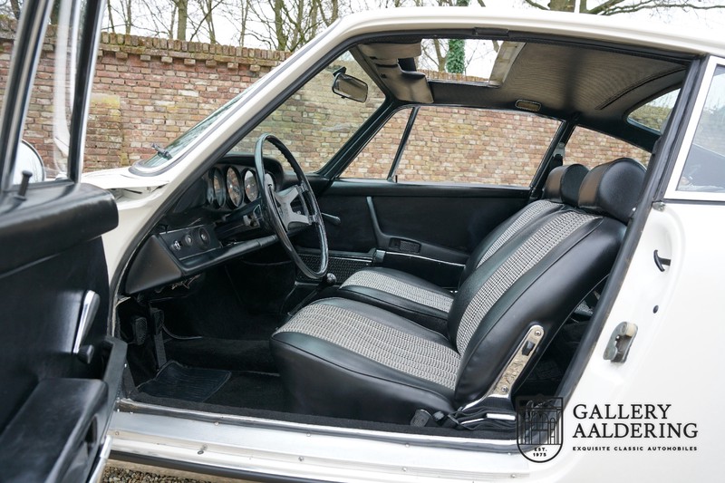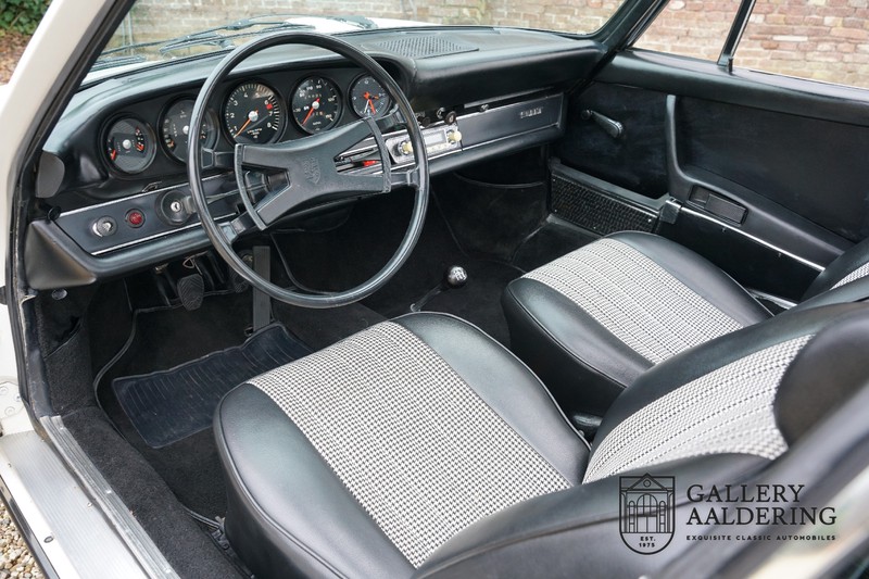 Gorgeous 1970 Porsche 911 2.2 T on offer. A few years ago this lovely example was fully restored and mechanically rebuilt. The straight body panels fit together well. The lacquer is in good shape too. The underbody is picture perfect and is absolutely rust-free of course. This 911 is in excellent shape and with everything in working order it delivers a marvellous ride. Its classy finish consists of white paint with a black/Pepita interior trim. It also sports a number of factory fitted accessories such as; an electrically operated sunroof, stabiliser bars and comfort pack. This 911 ihas been certified by Porsche and has retained its original, matching numbers, 2.2 T engine. A super Porsche, lovely finish and with a sunroof!