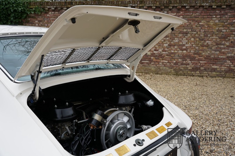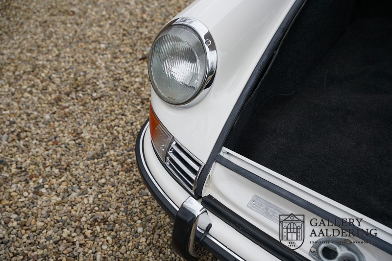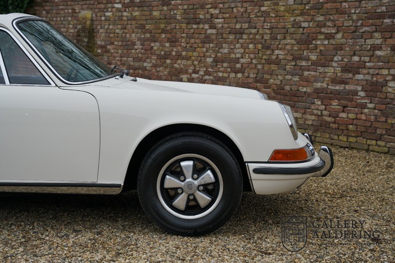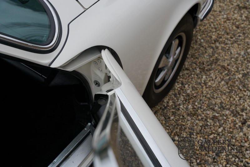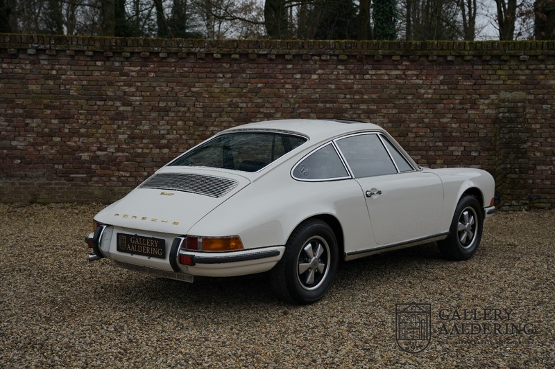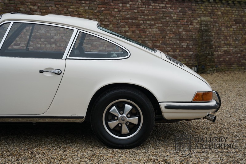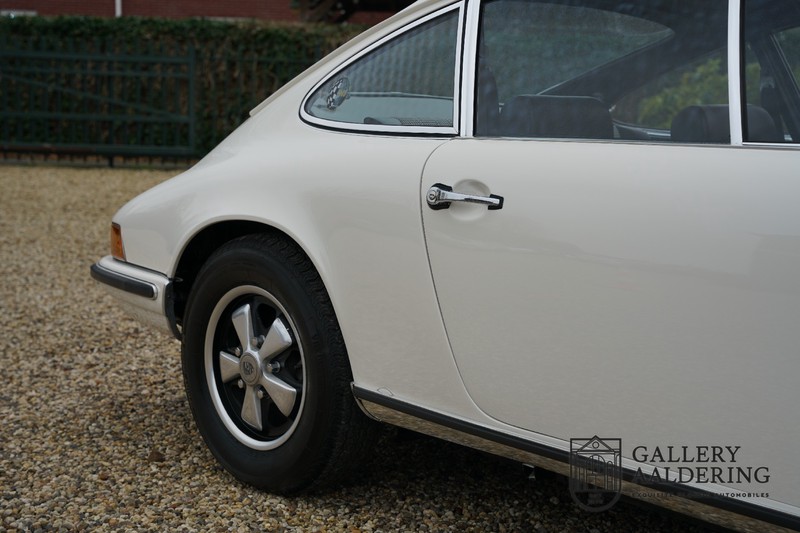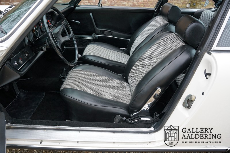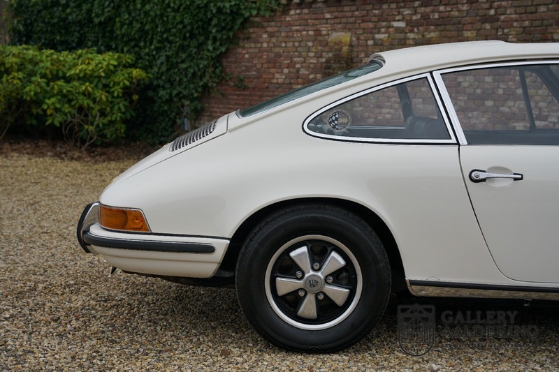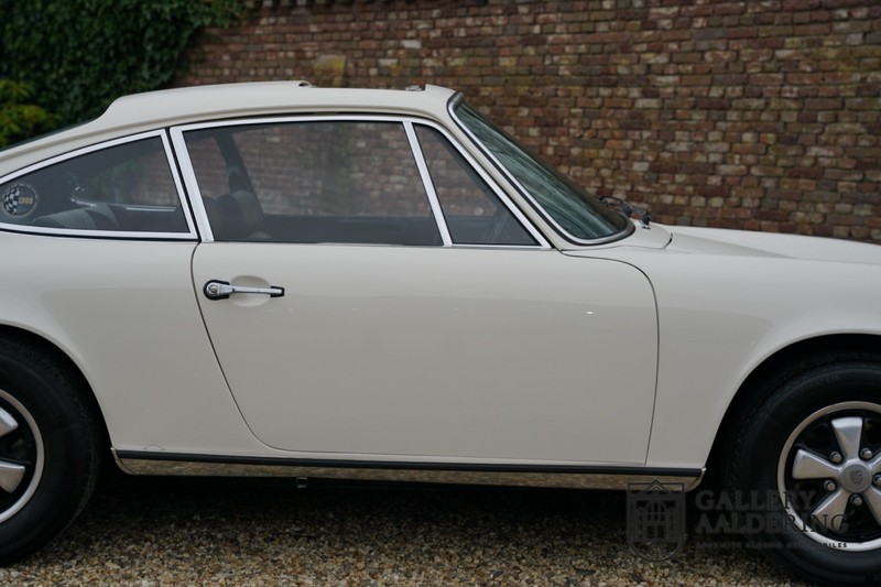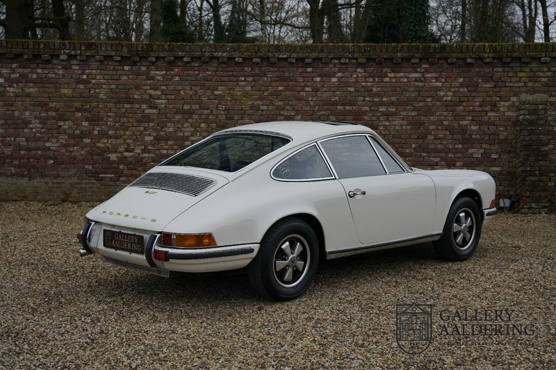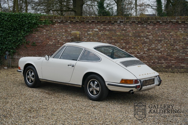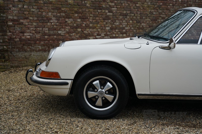 Gorgeous 1970 Porsche 911 2.2 T on offer. A few years ago this lovely example was fully restored and mechanically rebuilt. The straight body panels fit together well. The lacquer is in good shape too. The underbody is picture perfect and is absolutely rust-free of course. This 911 is in excellent shape and with everything in working order it delivers a marvellous ride. Its classy finish consists of white paint with a black/Pepita interior trim. It also sports a number of factory fitted accessories such as; an electrically operated sunroof, stabiliser bars and comfort pack. This 911 ihas been certified by Porsche and has retained its original, matching numbers, 2.2 T engine. A super Porsche, lovely finish and with a sunroof!