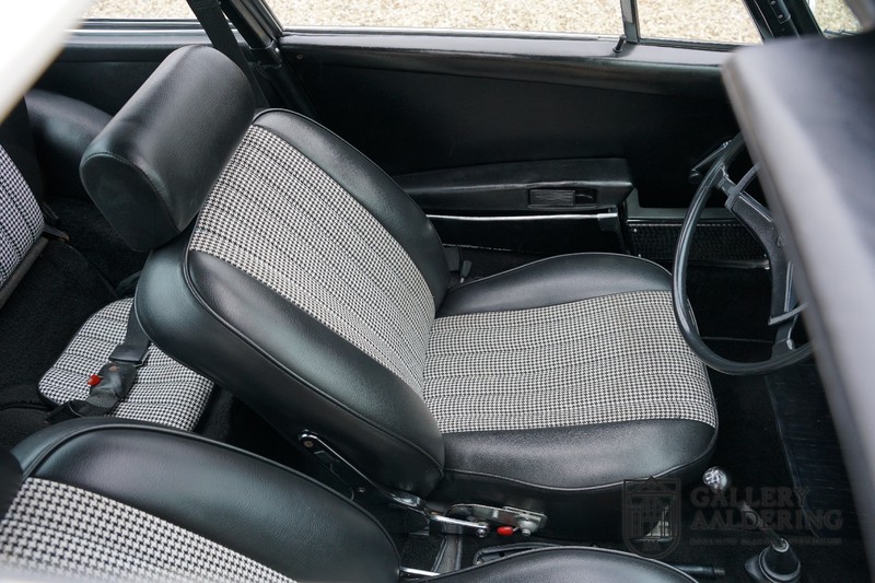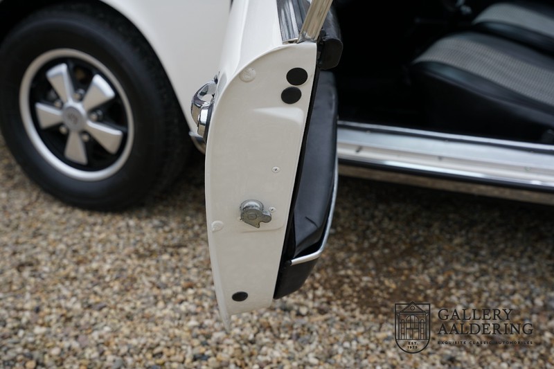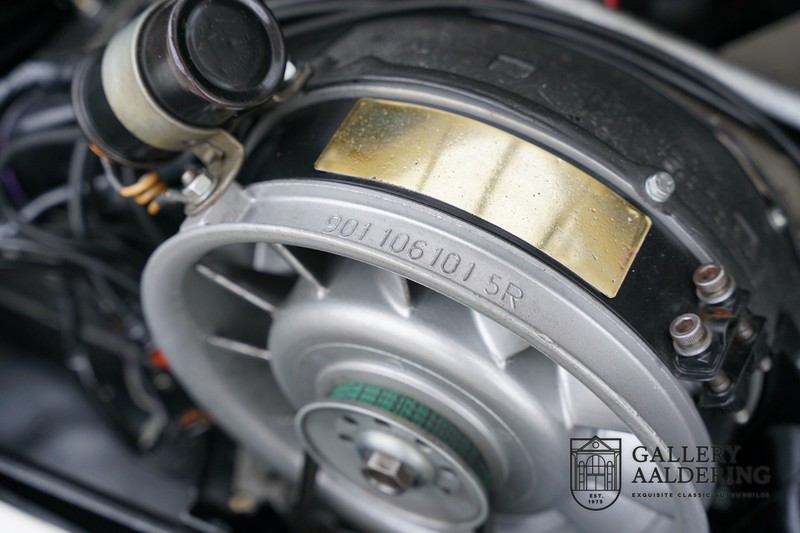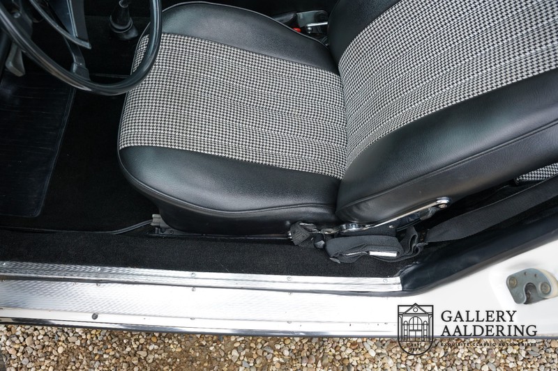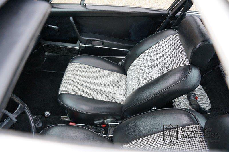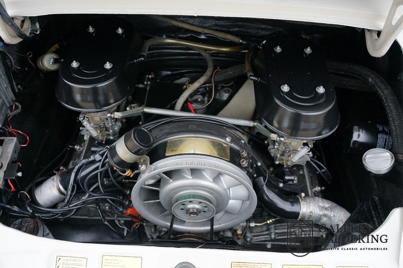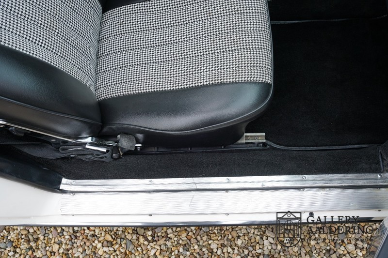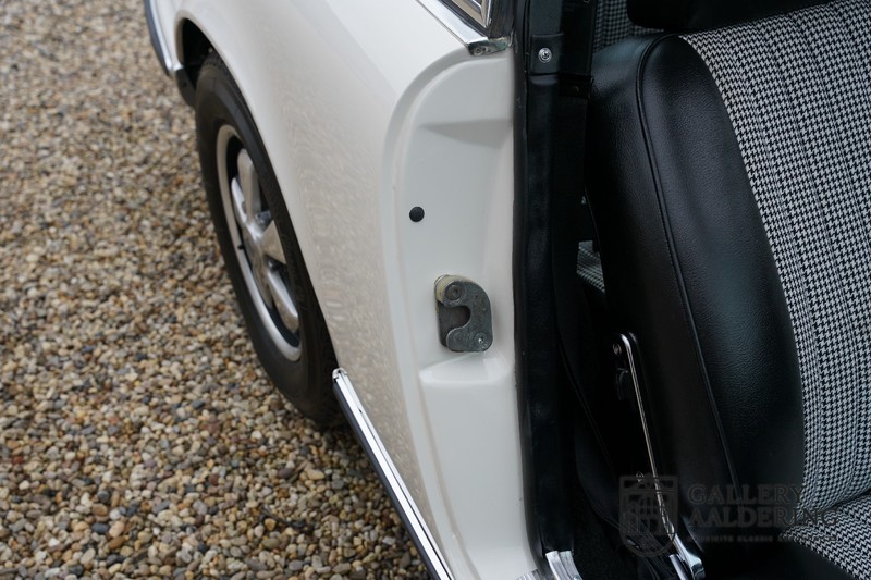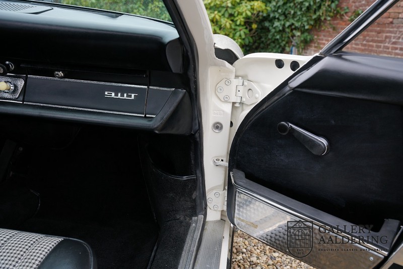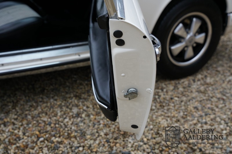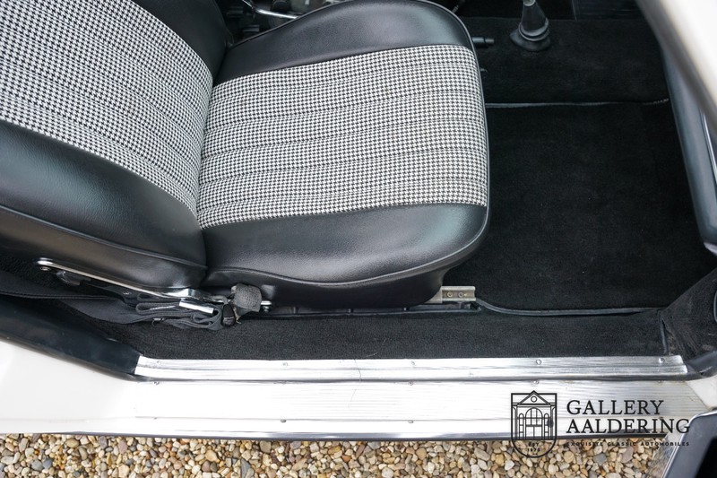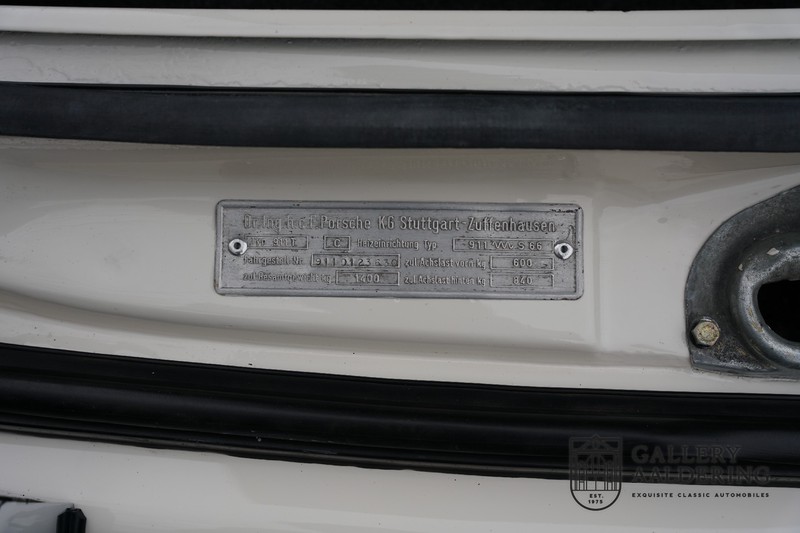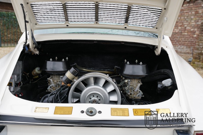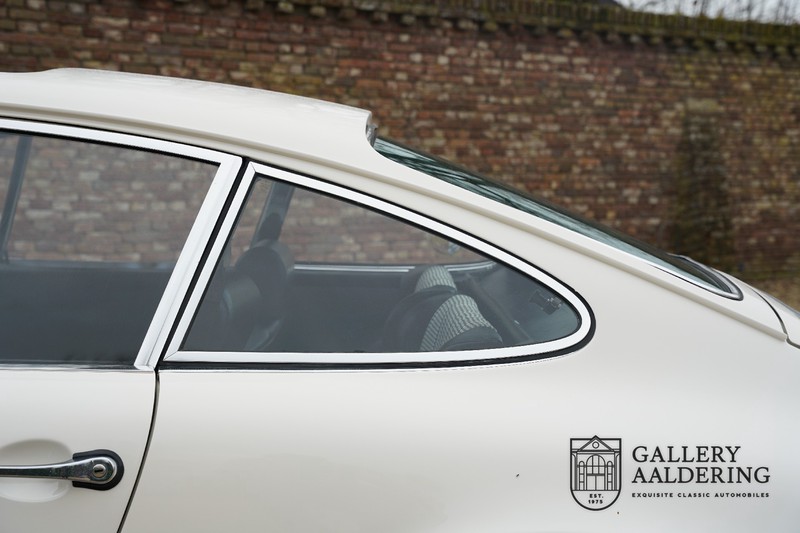 Dieser wunderschöne Porsche 911 2.2 T stammt aus dem Jahr 1970 und wurde vor einigen Jahren restauriert und revidiert. Die Karosserie hat schöne Passungen und ist sehr glatt, auch die Lackierung ist sehr schön! Der makellose Unterboden ist absolut rostfrei. Die Technik ist tipptopp in Ordnung und der Porsche fährt und funktioniert dementsprechend ausgezeichnet. Die Karosseriefarbe Weiß wird kombiniert mit einem schwarzen pepita Interieur, eine schicke Kombination. Das Fahrzeug hat ab Werk verschiedene seltene Optionen, wie z.B. ein elektrisch bedienbares Schiebedach, eine Stabilisierungsvorrichtung und das Komfort Paket. Das Auto ist von Porsche zertifiziert worden, der 2.2 T Motor ist original und hat also “Matching Numbers“. Ein sehr schöner Porsche 911 mit einer attraktiver Farbkombination und einem Schiebedach.
