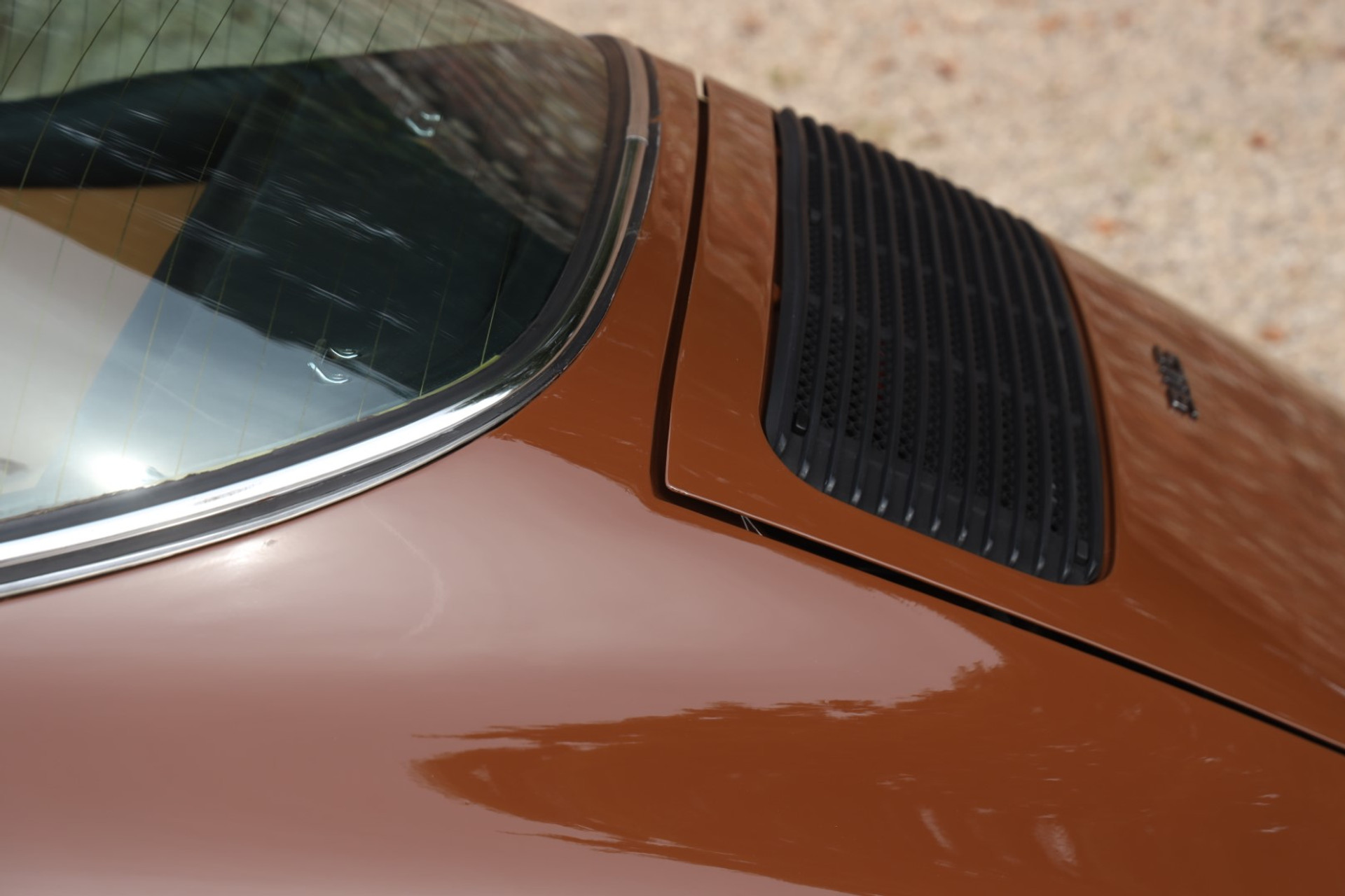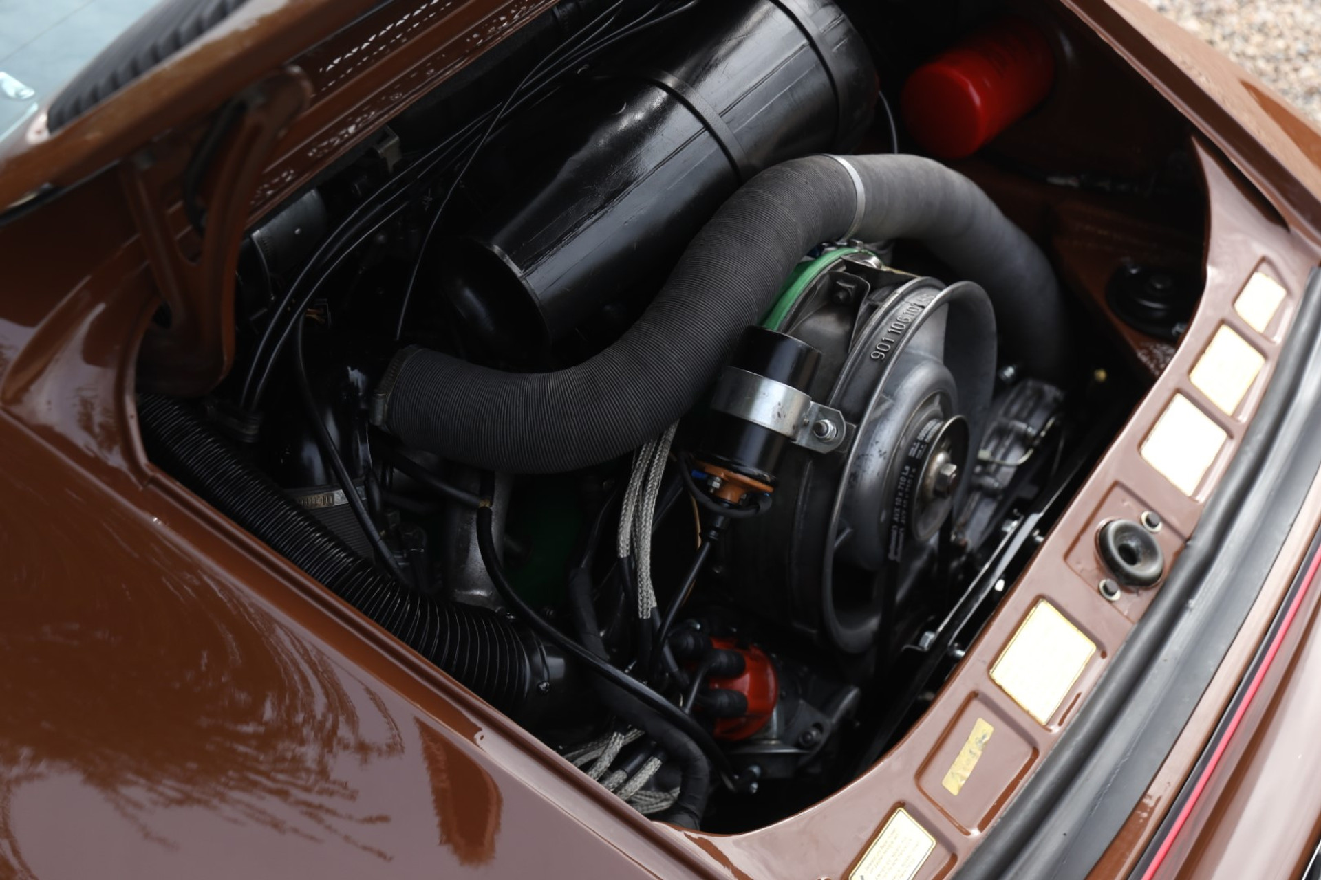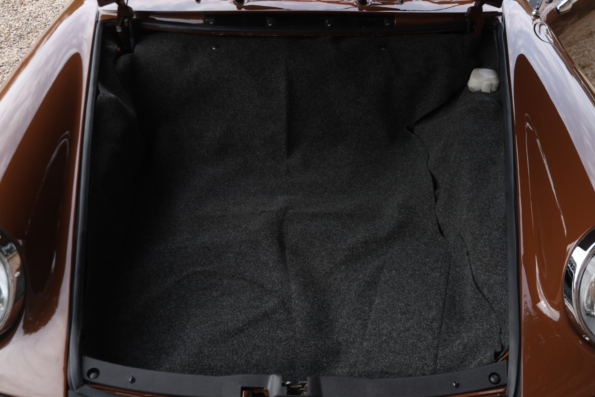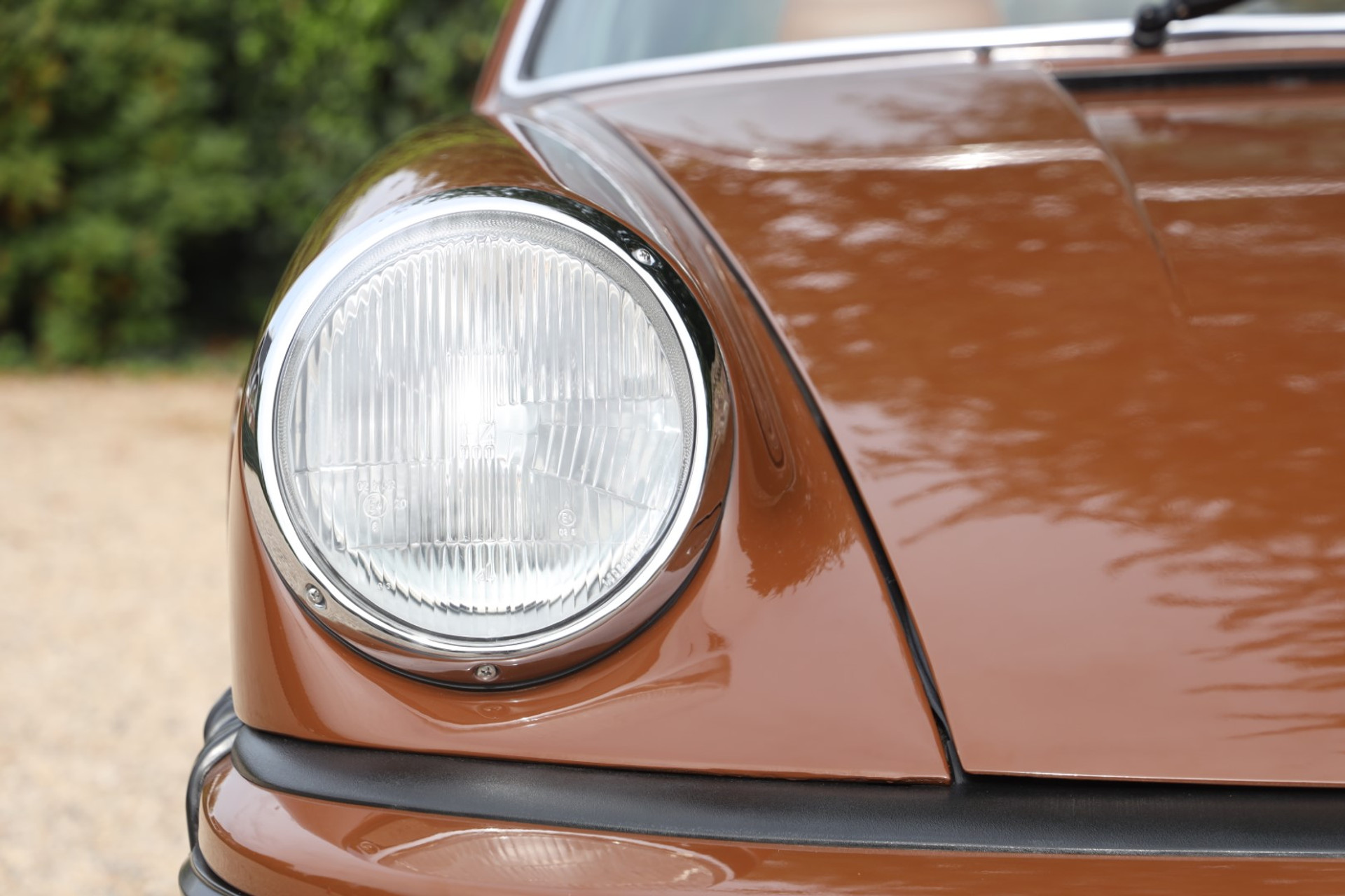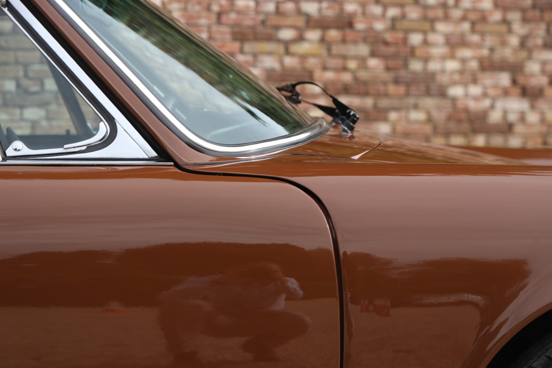Neem even afstand en kijk ernaar: de carrosserie is prachtig recht, de lak is keurig en correct aangebracht en hij staat trots op die iconische Fuchs-velgen. De houding is precies zoals het hoort, puur klassiek 911. Hij oogt precies zoals een Targa uit het midden van de jaren zeventig eruit moet zien: doelgericht, elegant en tijdloos.