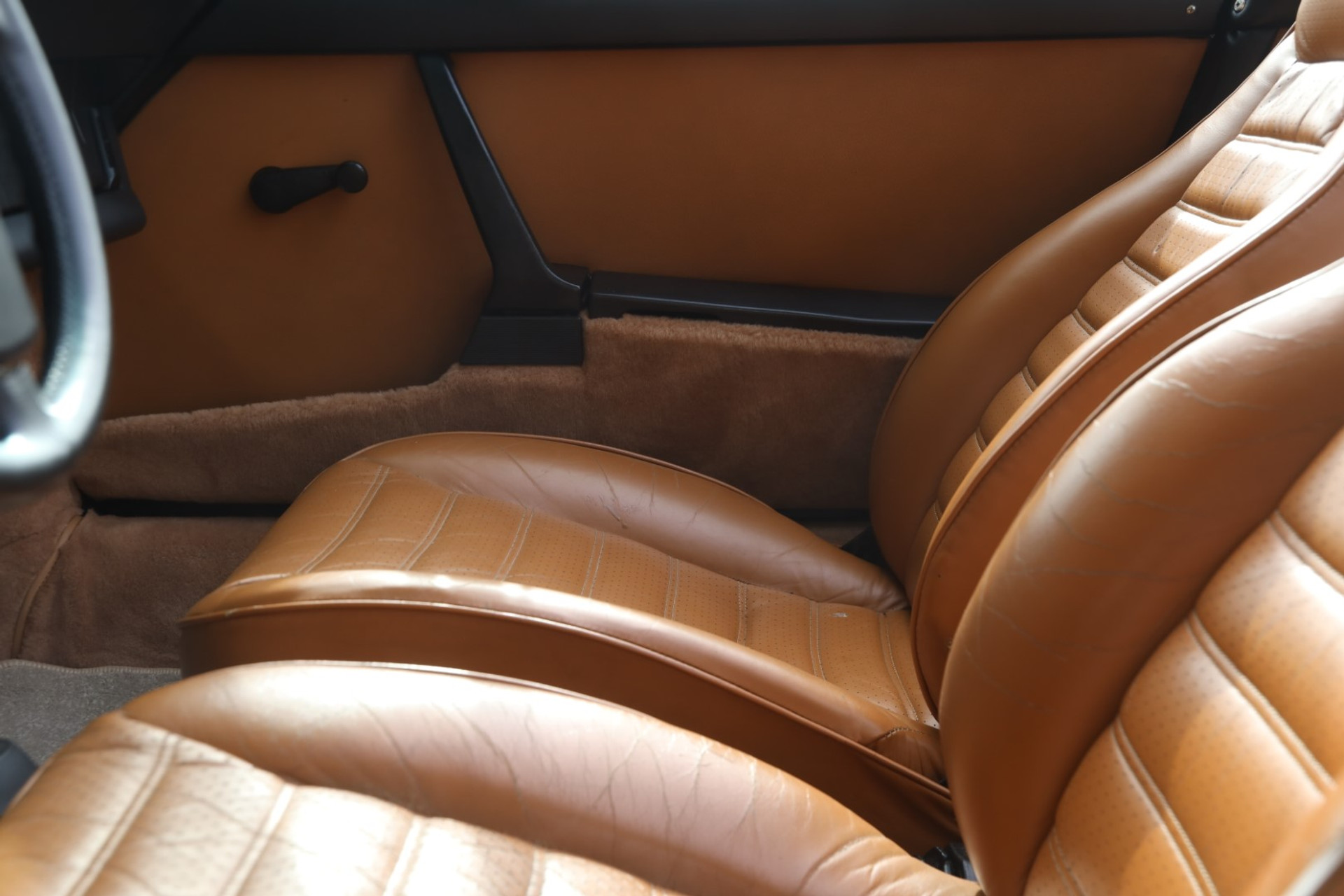 Auch das Interieur erzählt dieselbe Geschichte. Die Polsterung ist hervorragend und voller authentischen Charakters. Teppichboden, Instrumente, das legendäre Lenkrad – alles ist gepflegt und äußerst angenehm anzusehen. Sobald Sie im Fahrersitz Platz nehmen, fühlt es sich sofort richtig an: schlicht, fokussiert und vollkommen auf den Fahrer ausgerichtet – auf eine Weise, die moderne Fahrzeuge längst verloren haben.