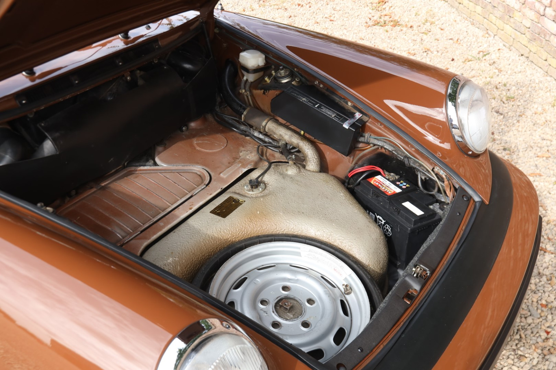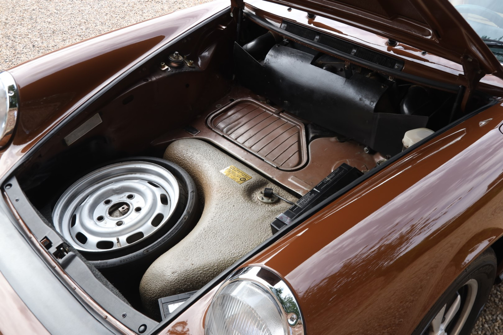 Take a step back and look at it: the bodywork is straight, the paint finish neat and correct, sitting proudly on those iconic Fuchs wheels. The stance is just right — classic 911 through and through. It looks exactly the way you want a mid-’70s Targa to look: purposeful, elegant, and timeless.