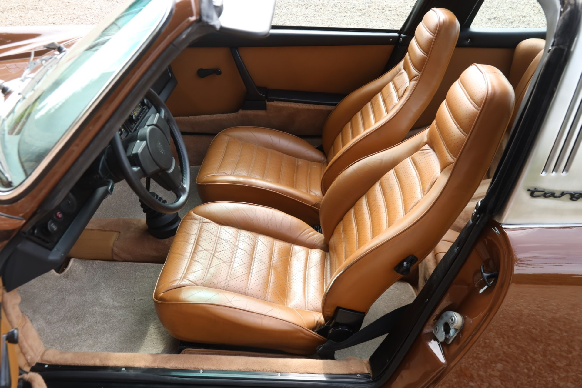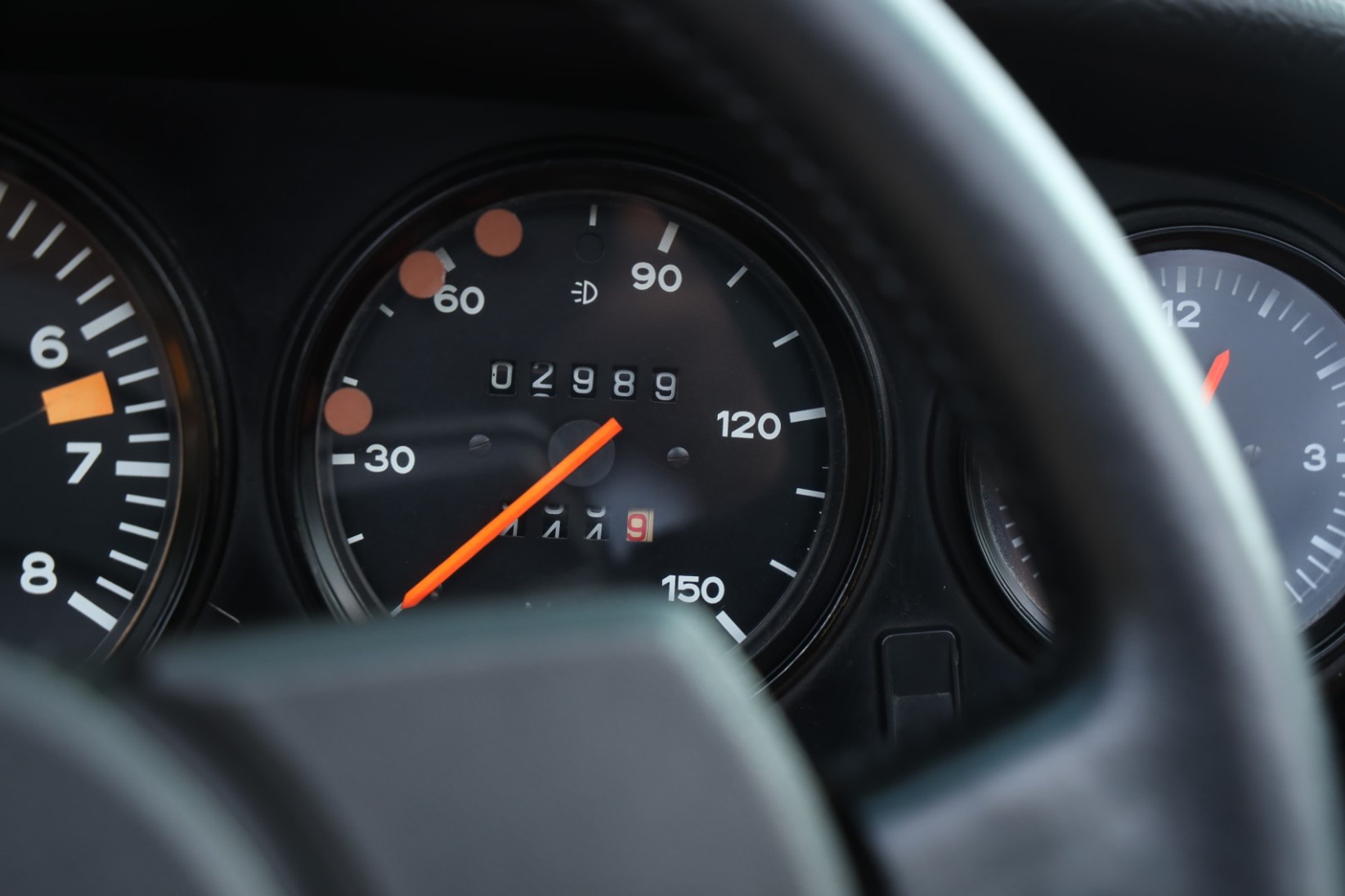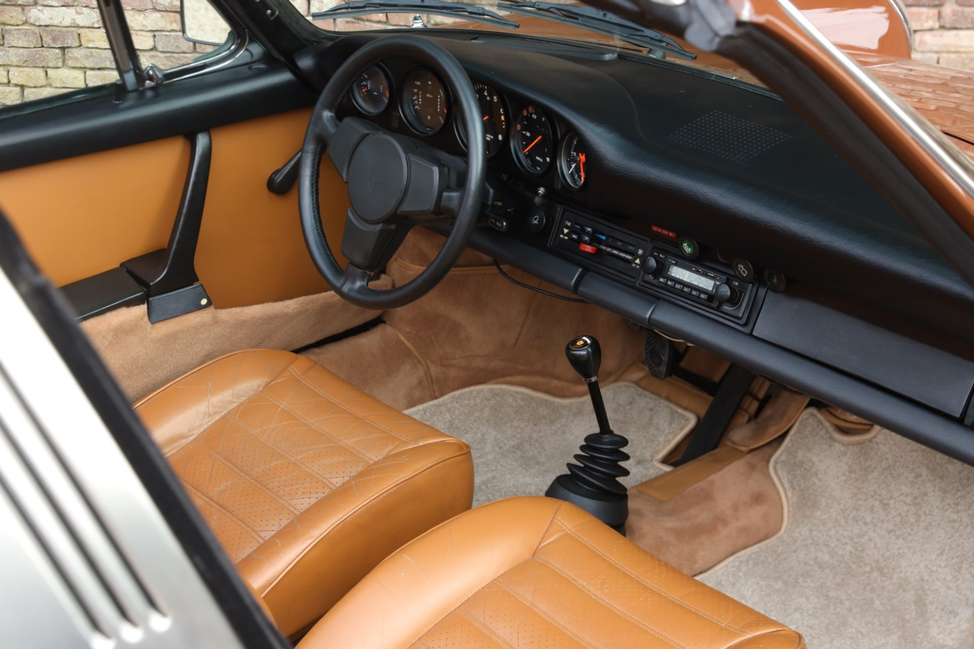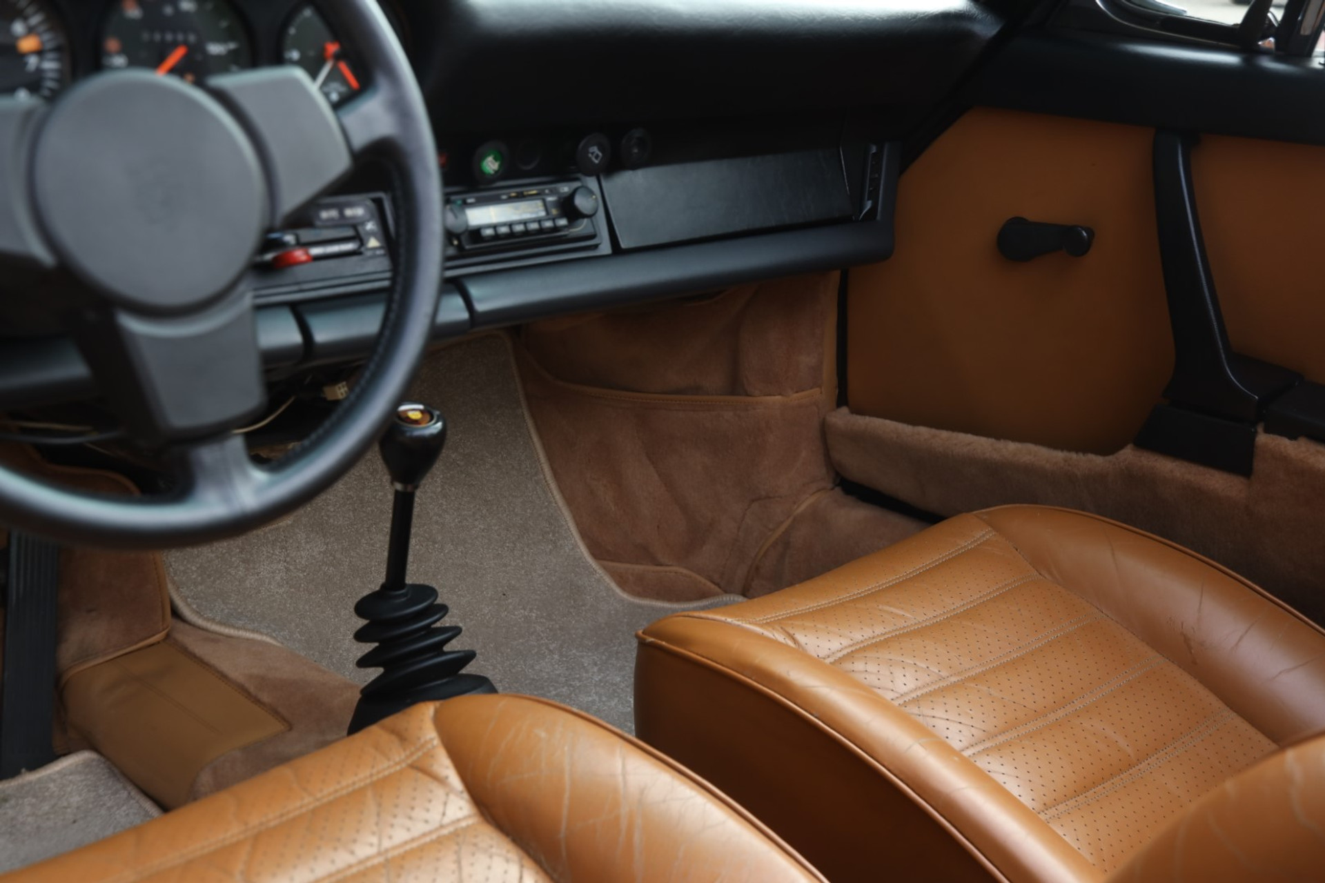 Inside, it’s the same story. The upholstery is fantastic and beautifully preserved, full of that authentic Porsche character you can’t recreate. The carpets, the instruments, the legendary steering wheel — everything is correct, neat, and just so pleasing to the eye. Slide into the driver’s seat and it immediately feels right: simple, focused, and driver-centric in a way that modern cars have long forgotten.