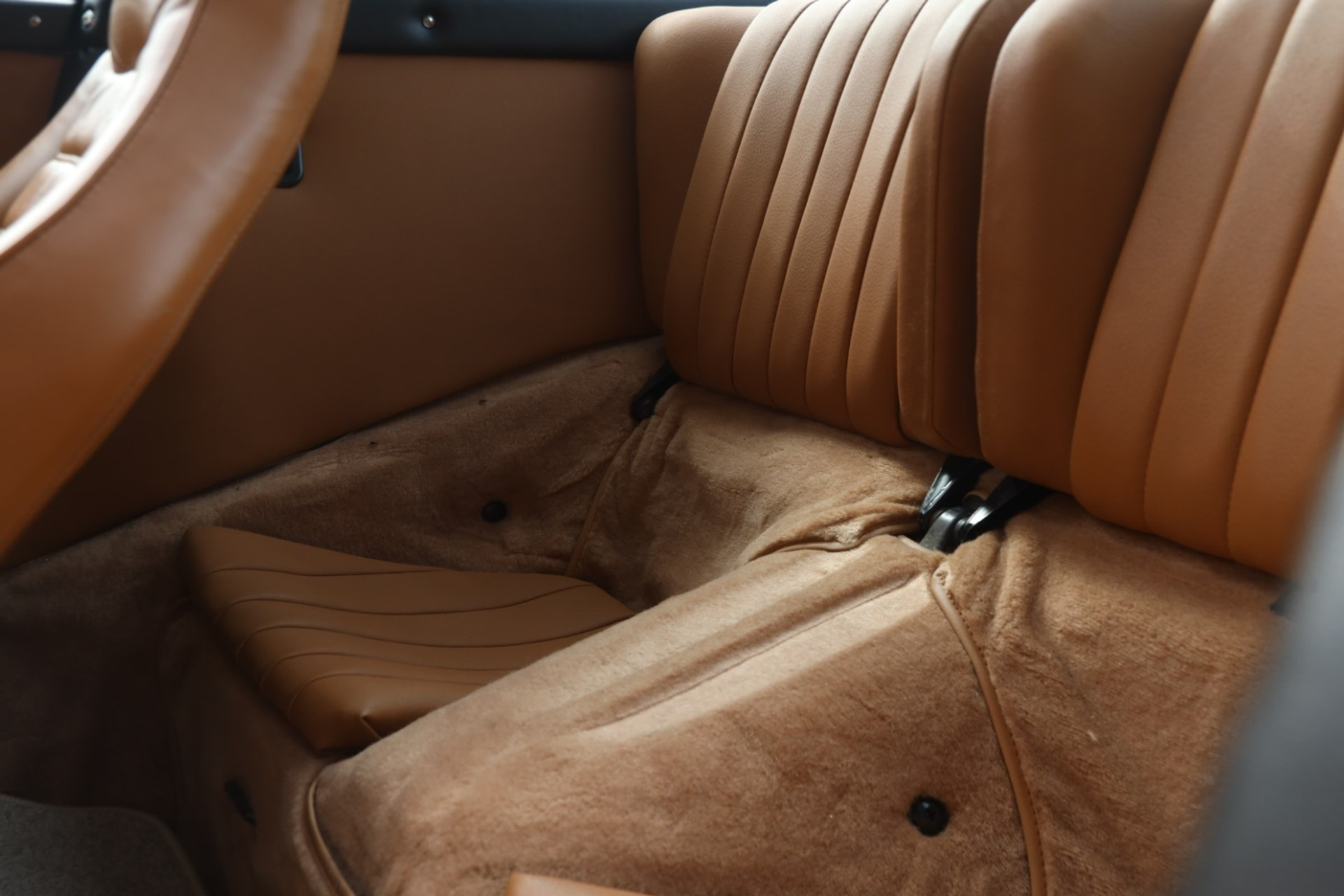 Ook het interieur vertelt hetzelfde verhaal. De bekleding is fantastisch en vol van dat authentieke karakter. Het tapijt, de instrumenten, het legendarische stuurwiel. Het geheel is verzorgd en buitengewoon aangenaam om naar te kijken. Zodra u in de bestuurdersstoel plaatsneemt, voelt het onmiddellijk juist: eenvoudig, gefocust en volledig op de bestuurder gericht, op een manier die moderne auto’s al lang zijn kwijtgeraakt.
