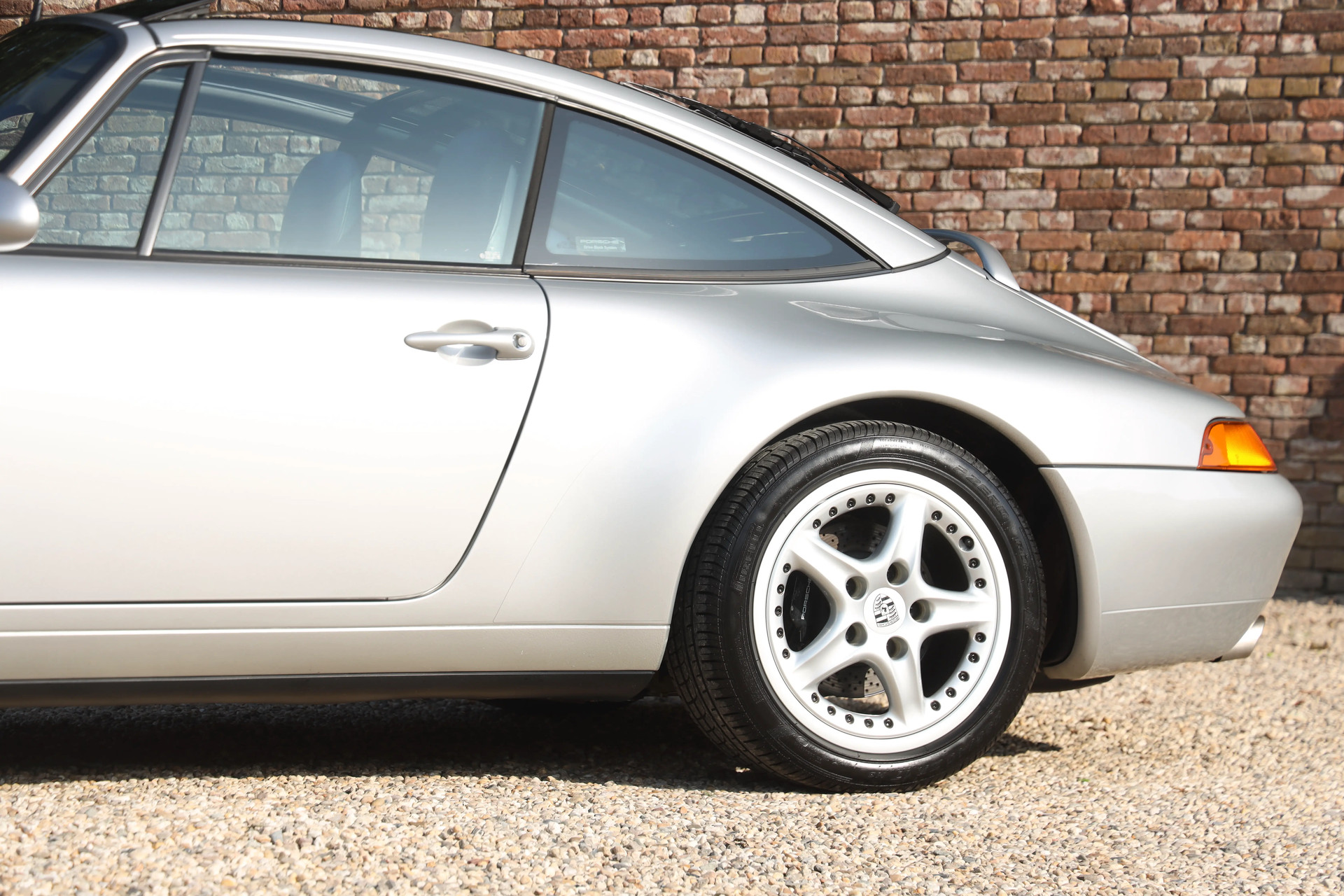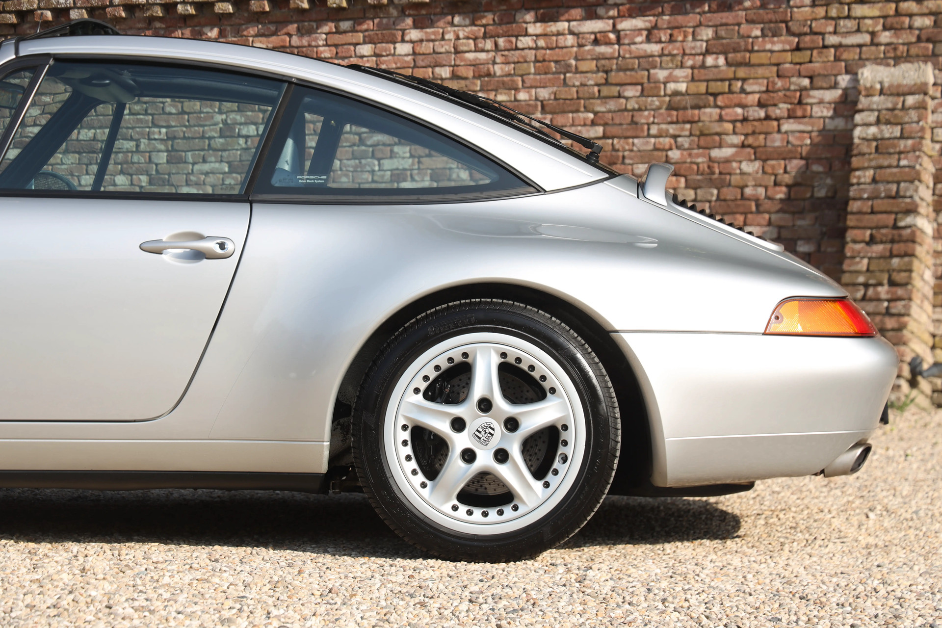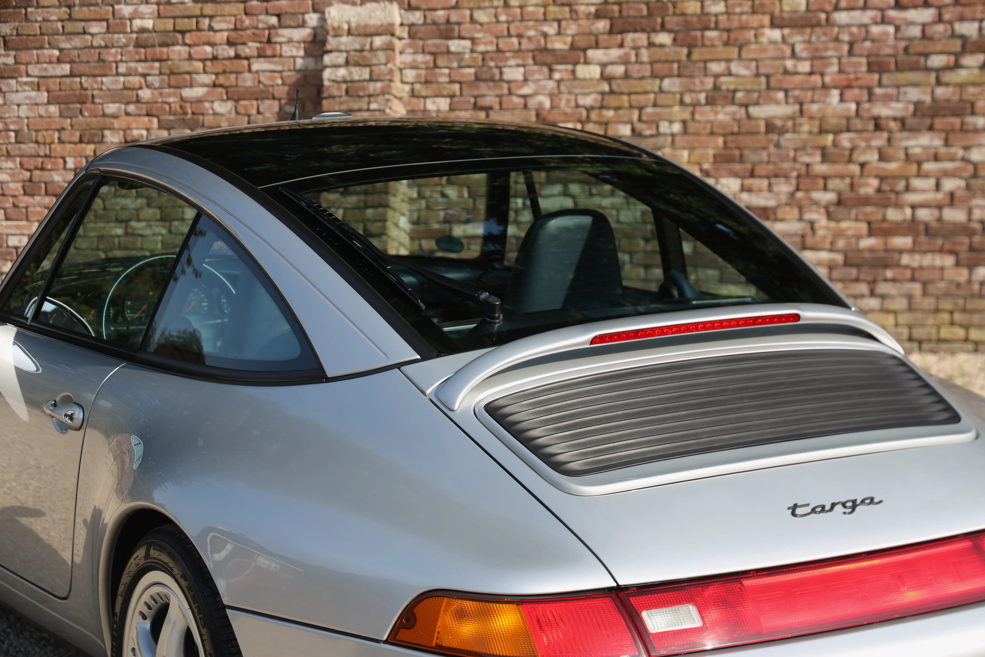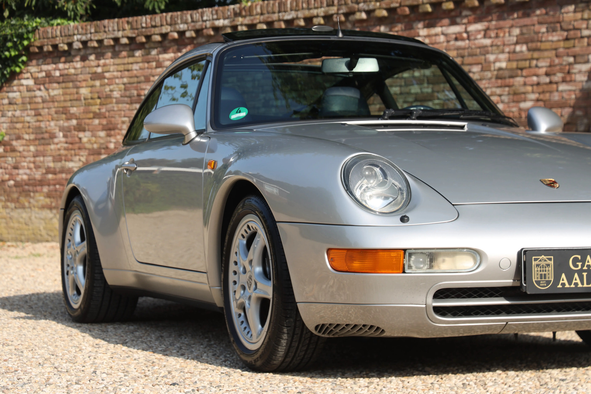 Het exemplaar dat we hier aanbieden is een zeer aantrekkelijke 993 Targa Carrera 2. Allereerst de kilometerstand: slechts 123.000 kilometers. Dit is dan ook aan alles te zien. Het exterieur, uitgevoerd in Arctic Silver, ziet er zeer goed uit met slechts minimale gebruikerssporen. De velgen zijn in fantastische staat, de deuren sluiten zoals het hoort en de lak heeft nog een prachtige glans. Kortom: een kwalitatief hoogwaardige Porsche.