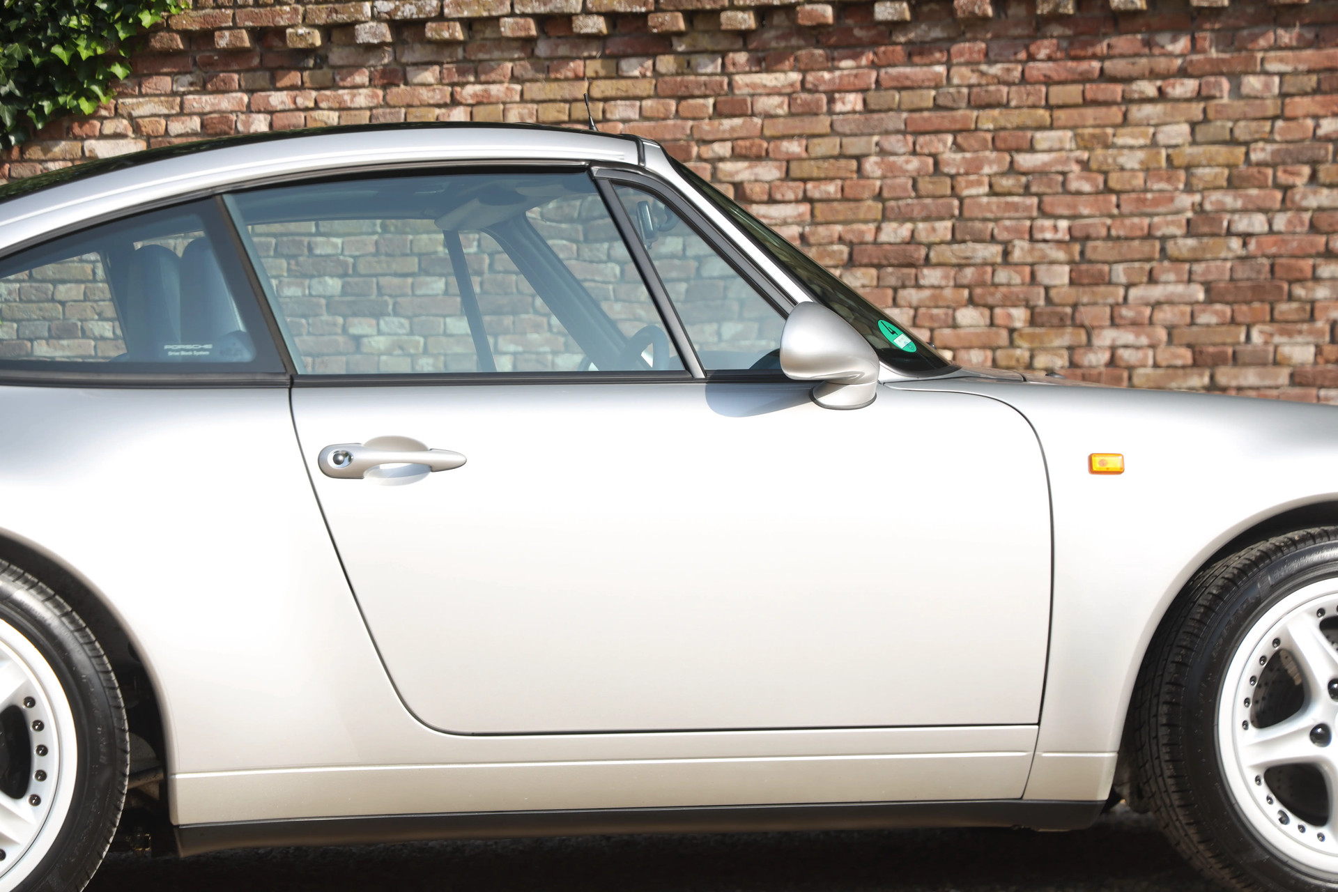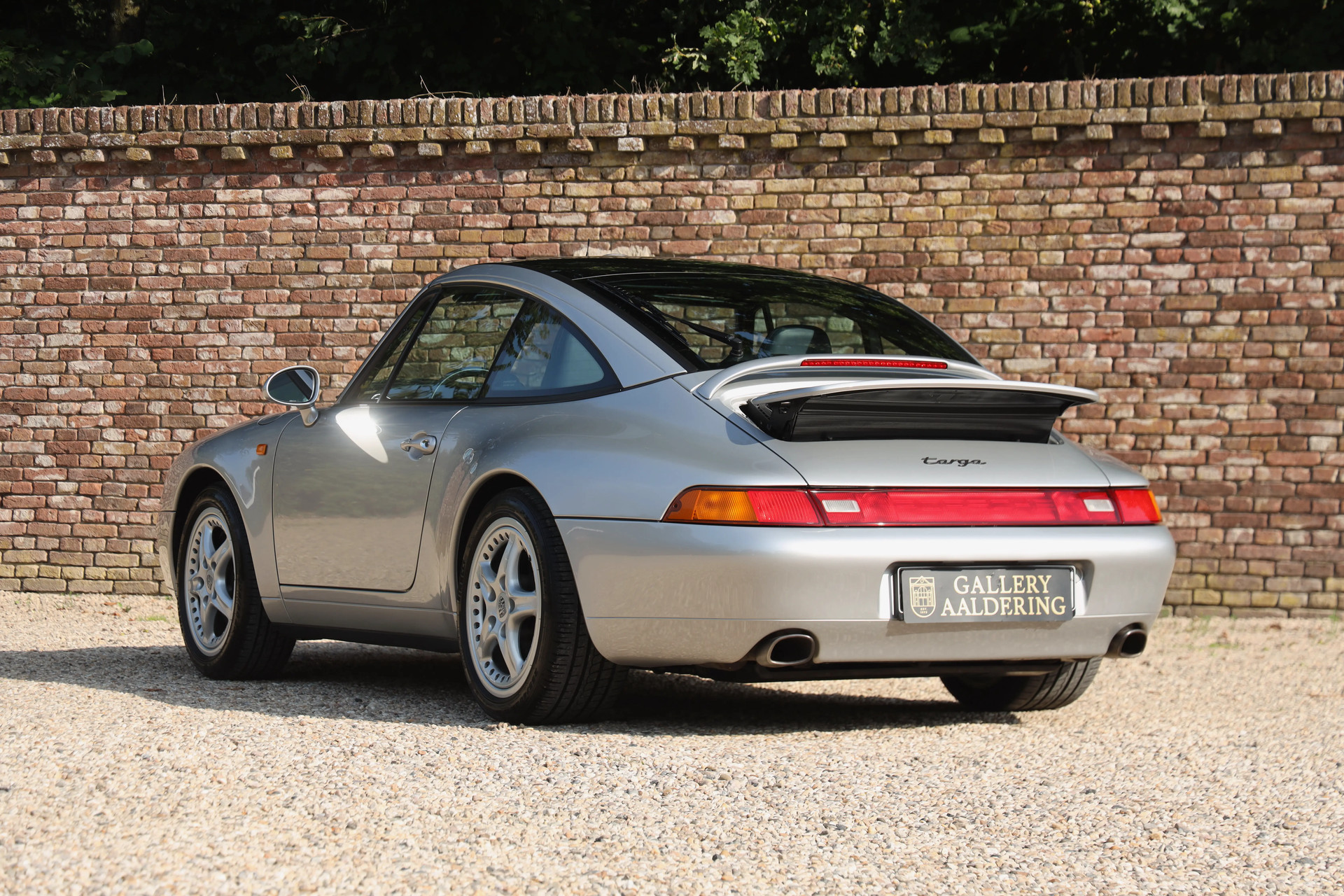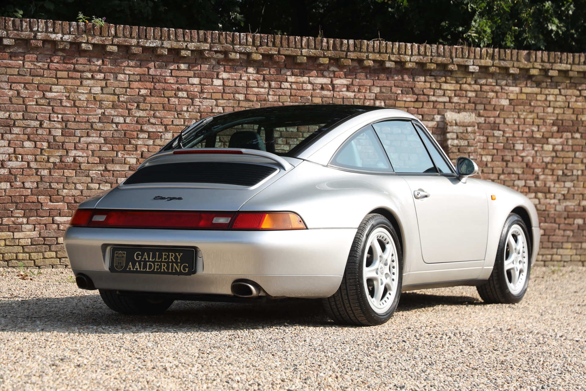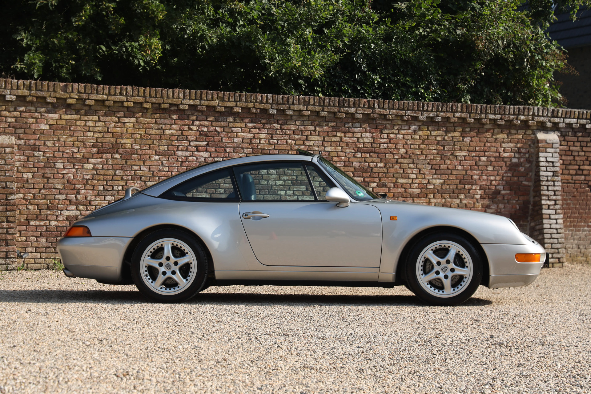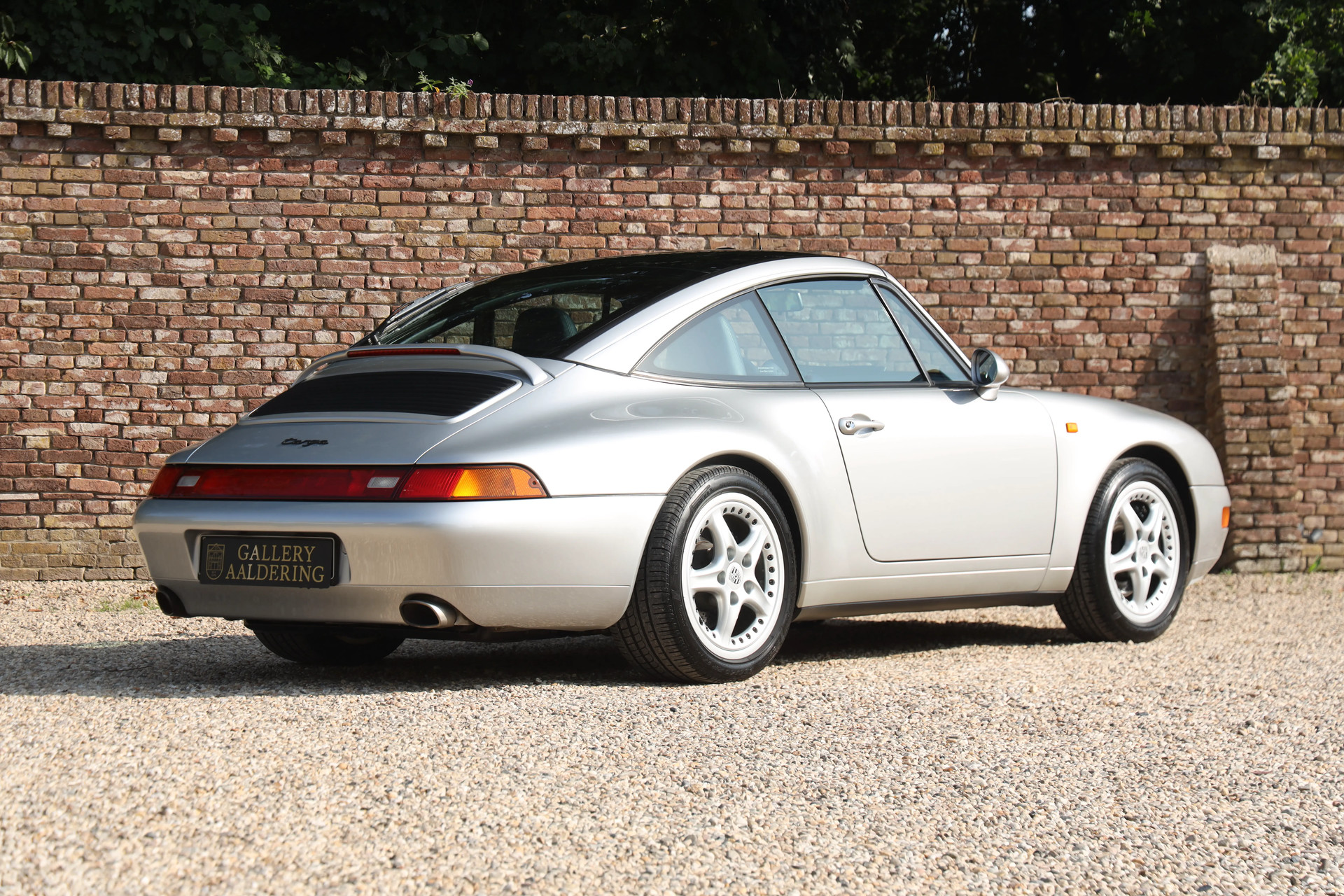 Het exemplaar dat we hier aanbieden is een zeer aantrekkelijke 993 Targa Carrera 2. Allereerst de kilometerstand: slechts 123.000 kilometers. Dit is dan ook aan alles te zien. Het exterieur, uitgevoerd in Arctic Silver, ziet er zeer goed uit met slechts minimale gebruikerssporen. De velgen zijn in fantastische staat, de deuren sluiten zoals het hoort en de lak heeft nog een prachtige glans. Kortom: een kwalitatief hoogwaardige Porsche.