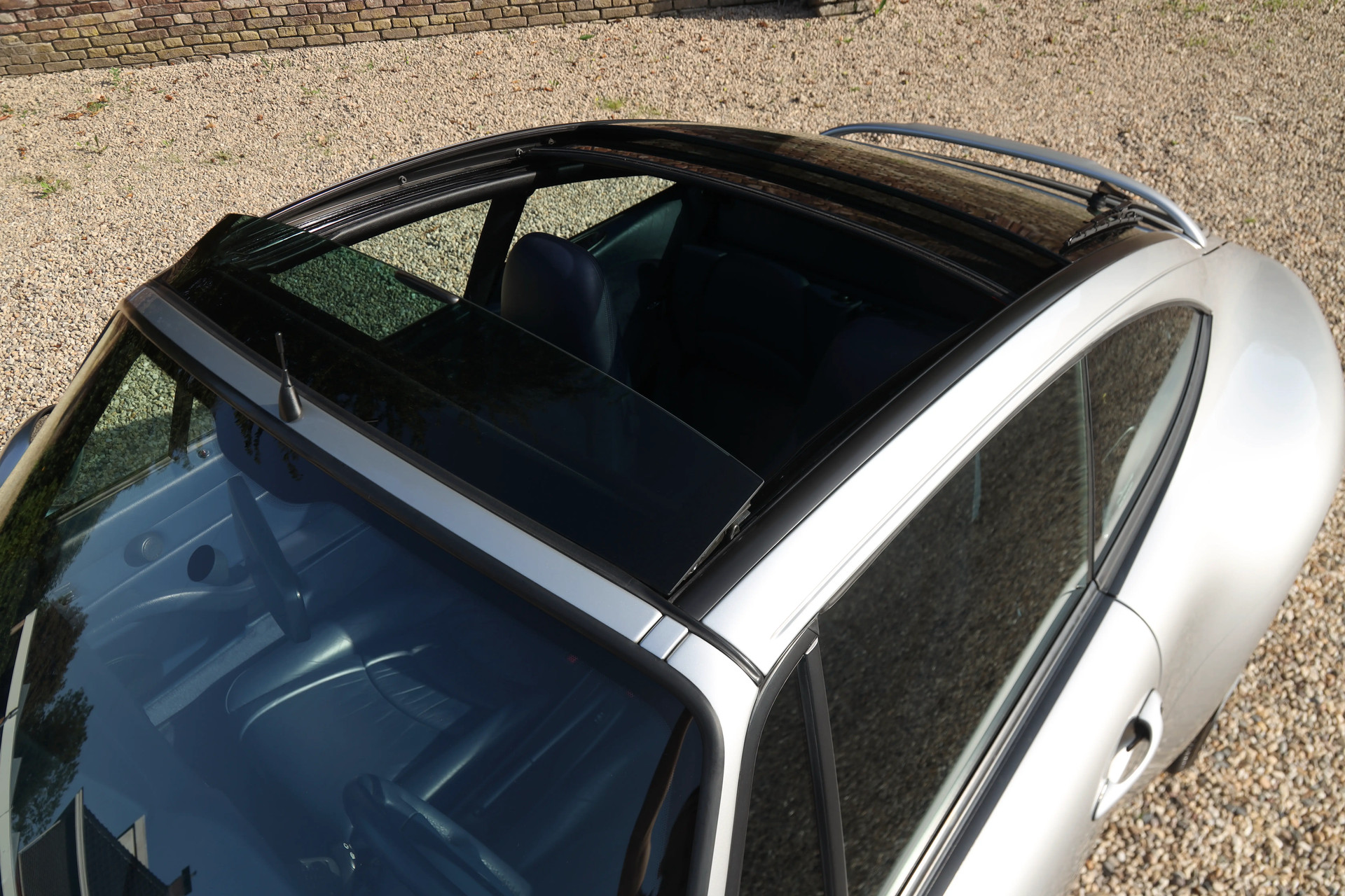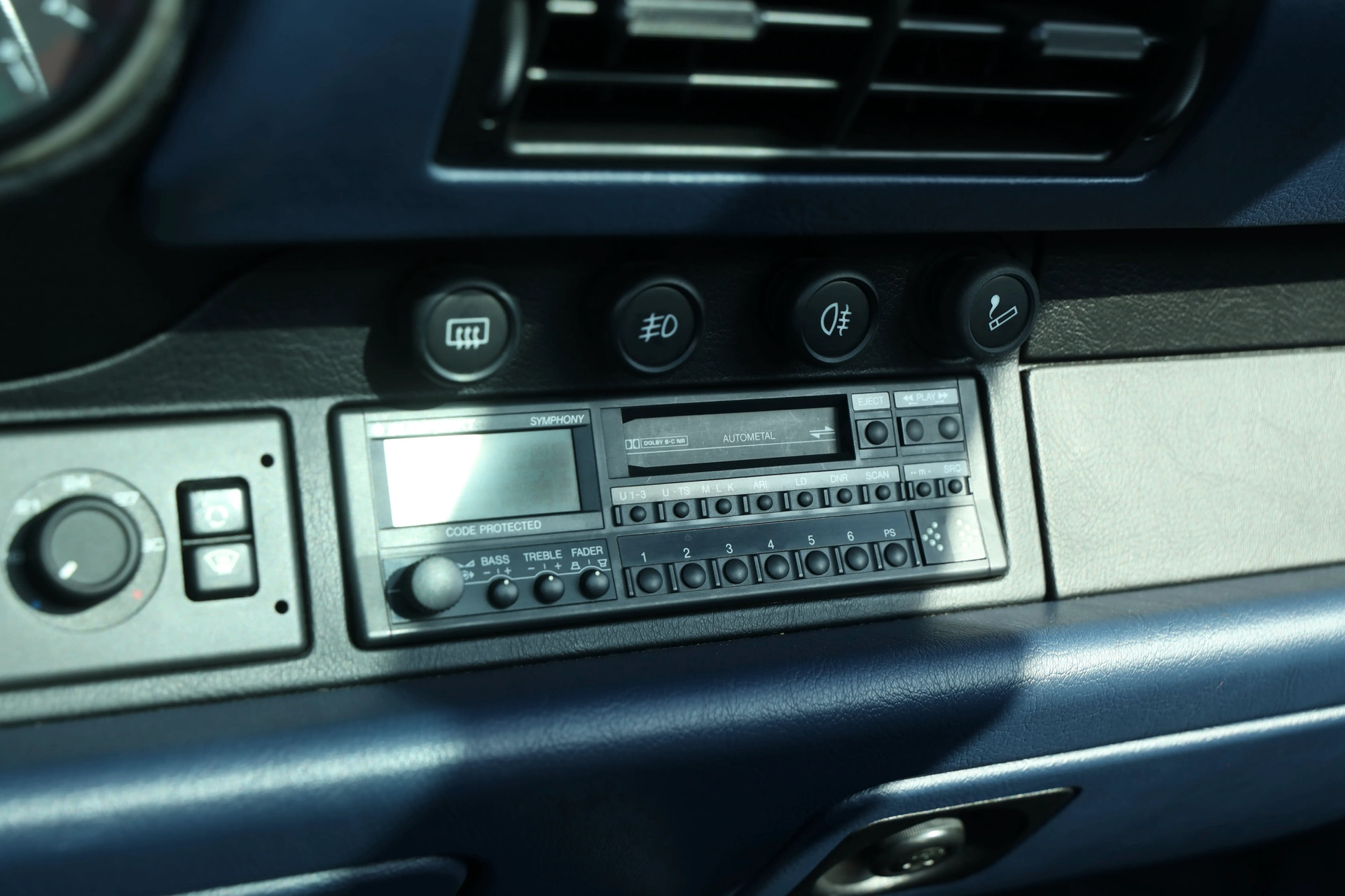 À l’intérieur, on découvre une splendide sellerie en cuir Midnight Blue, réalisée en cuir Raff de très belle facture. Parmi les options, on retrouve la climatisation, le régulateur de vitesse, l’autoradio Blaupunkt Symphony et même un téléphone Nokia devenu aujourd’hui presque iconique.