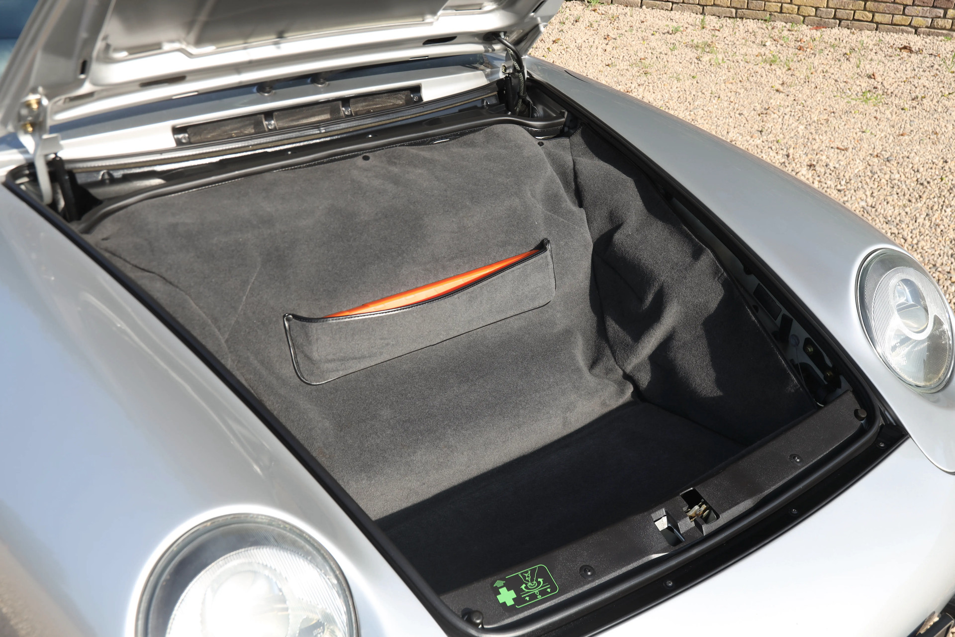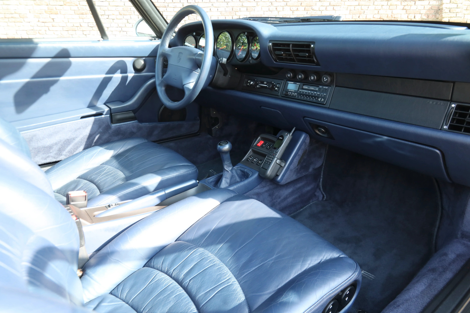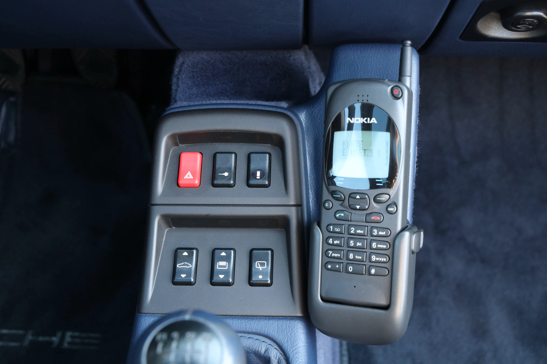 In het interieur treffen we prachtige leren bekleding aan, uitgevoerd in Midnight Blue en voorzien van Raff leer. Met onder andere airconditioning, cruise control, de Blaupunkt Symphony radio en een inmiddels iconische Nokia telefoon, heeft deze Porsche enkele fraaie opties.