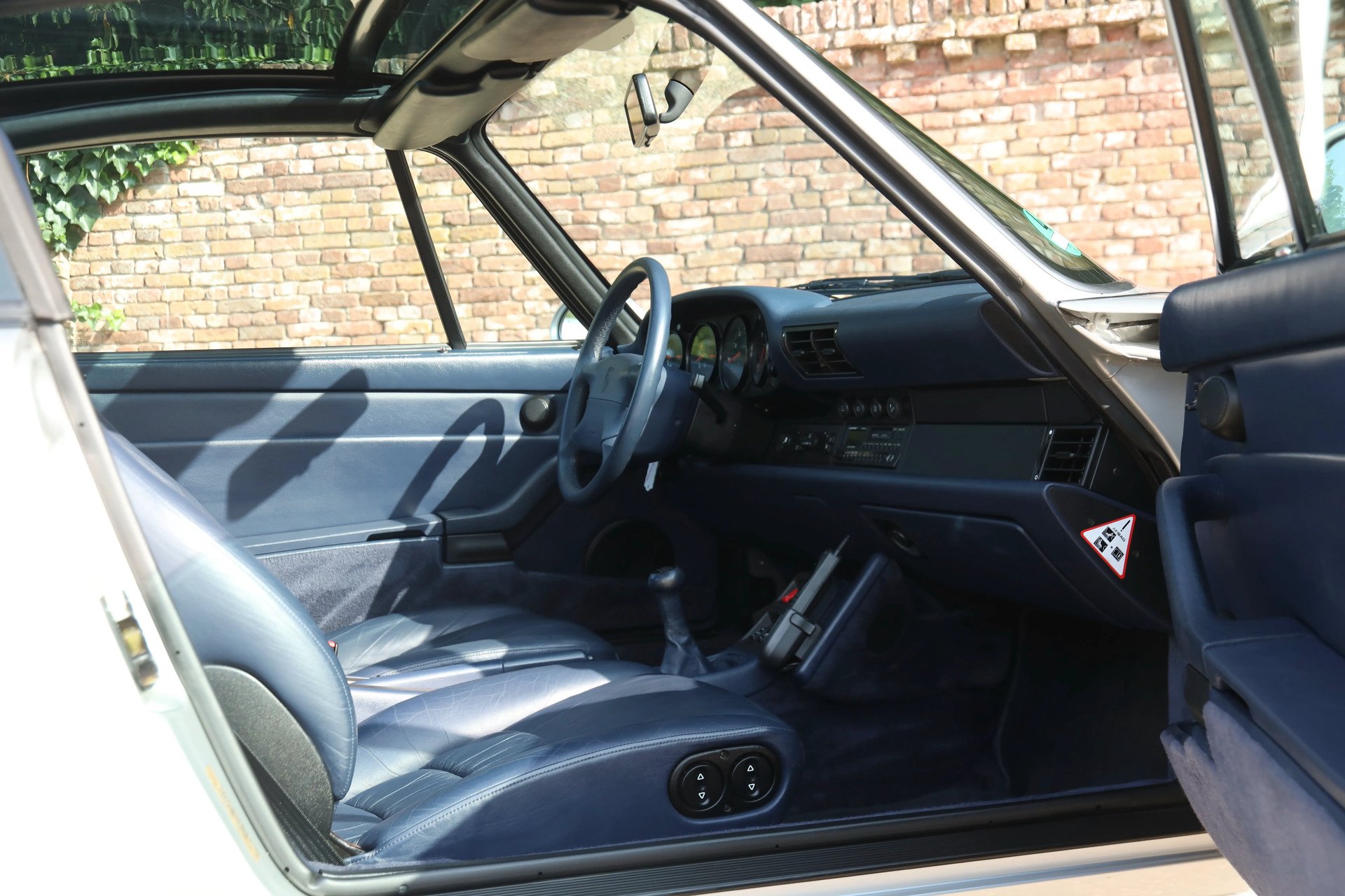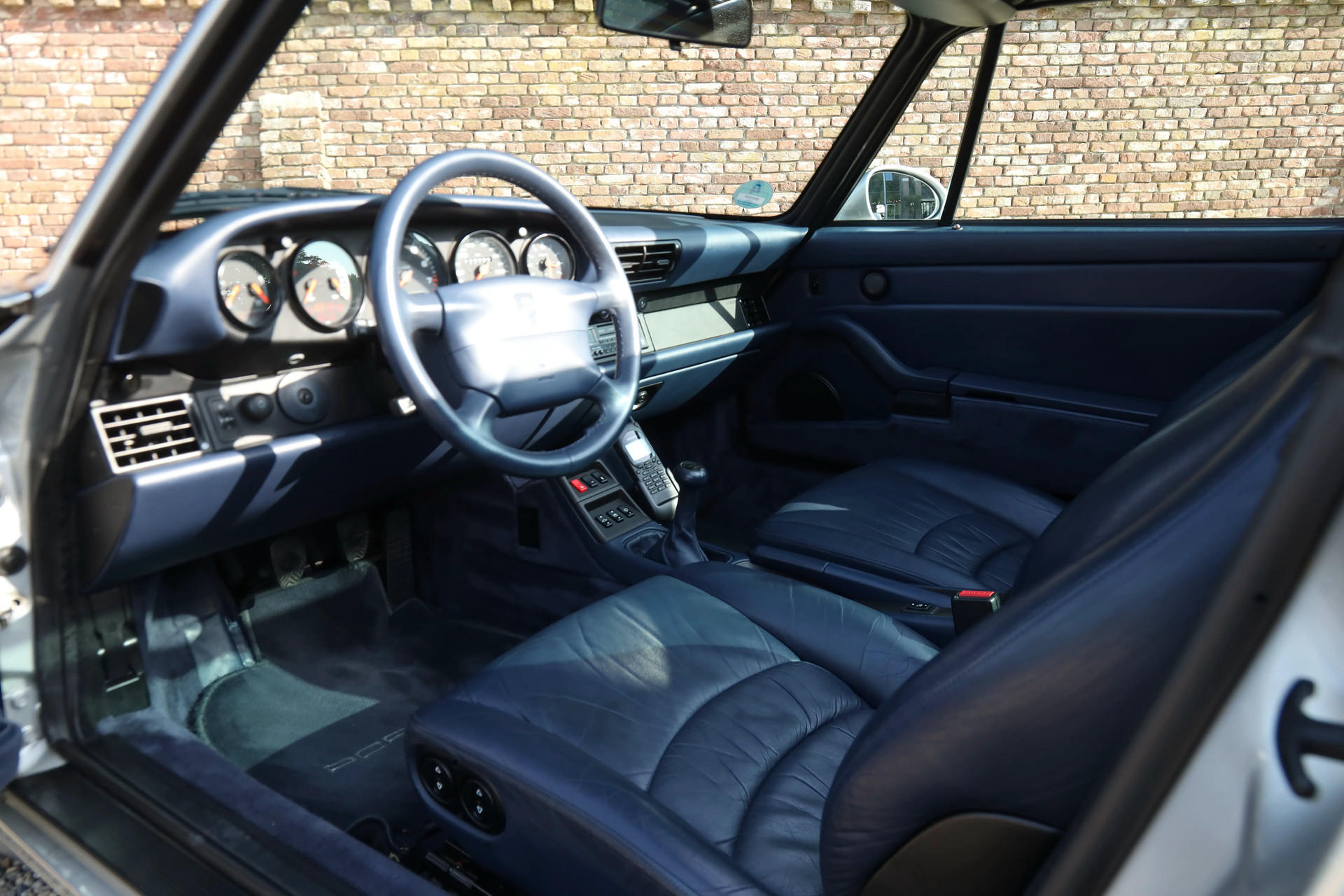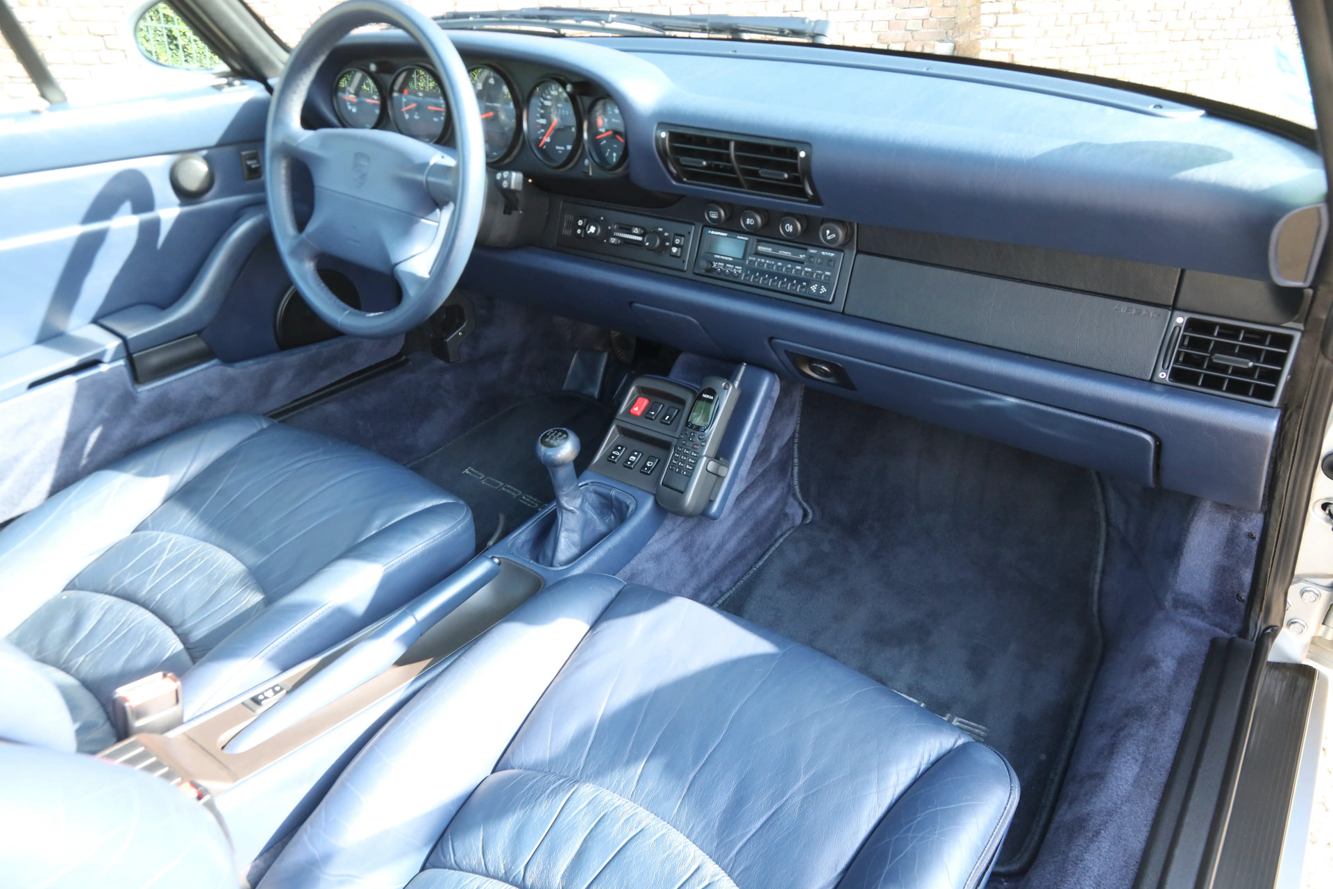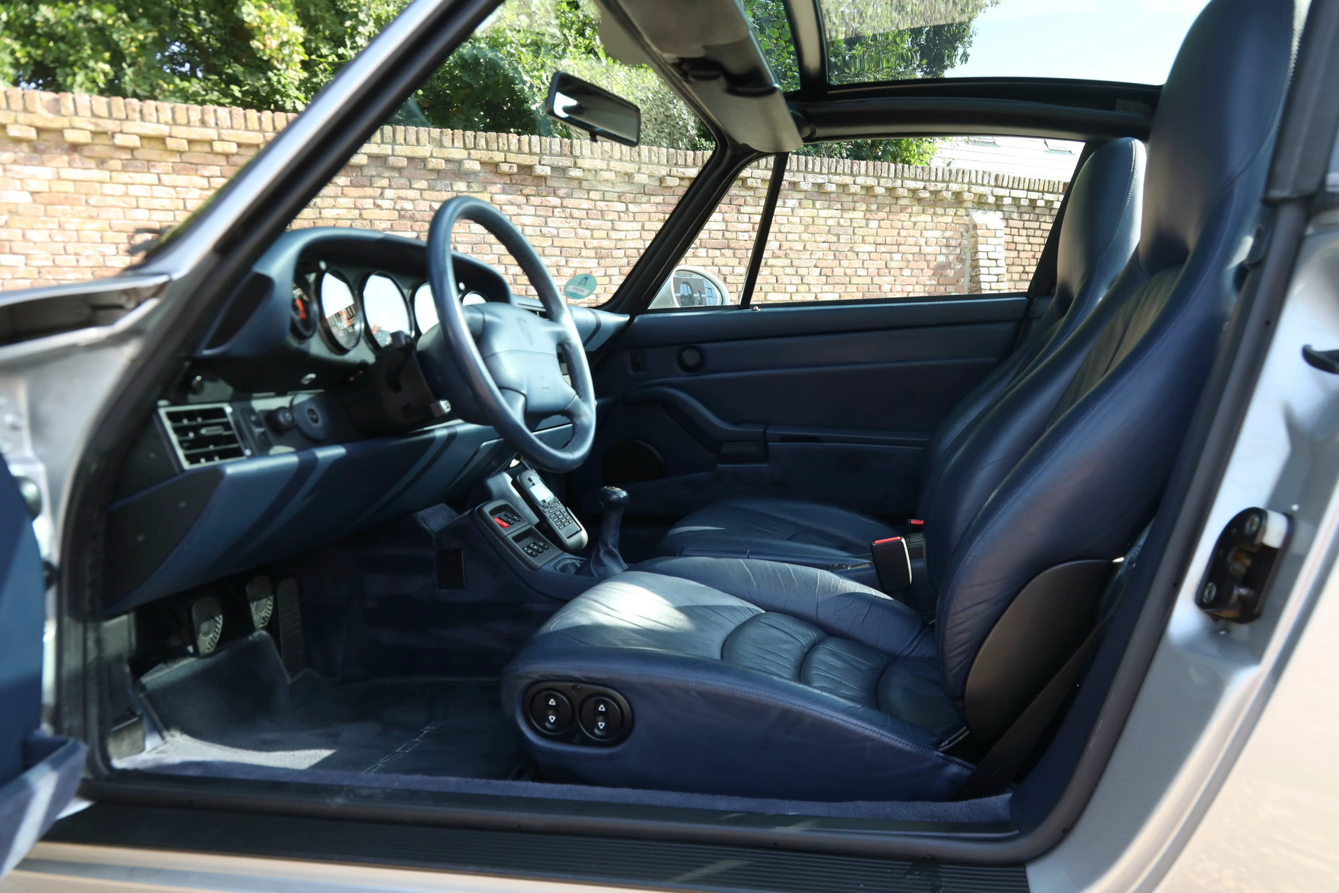 In het interieur treffen we prachtige leren bekleding aan, uitgevoerd in Midnight Blue en voorzien van Raff leer. Met onder andere airconditioning, cruise control, de Blaupunkt Symphony radio en een inmiddels iconische Nokia telefoon, heeft deze Porsche enkele fraaie opties.