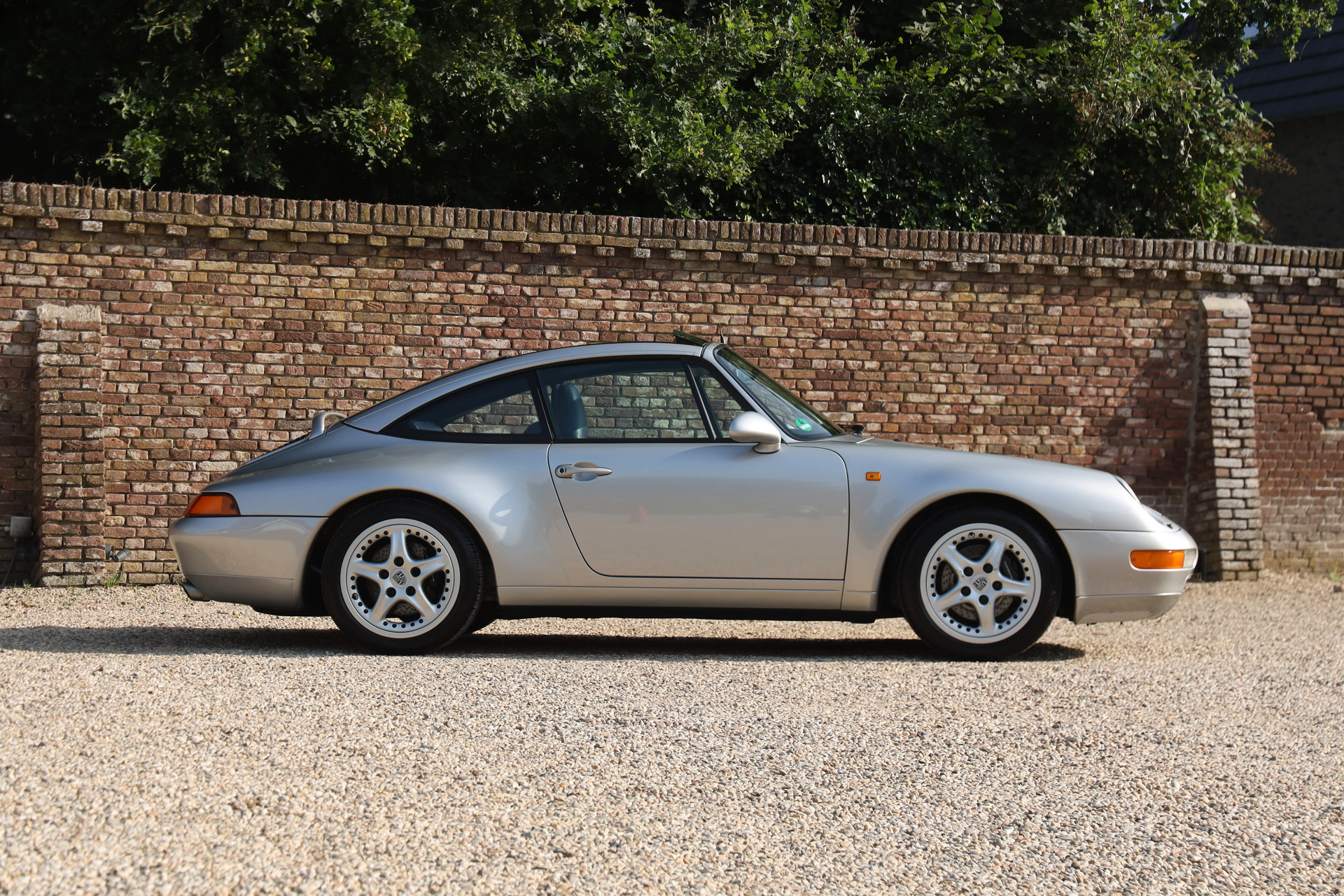 The example we are offering here is a highly desirable 993 Targa Carrera 2. First, the mileage: just 123,000 kilometers. And it shows in every detail. The Arctic Silver exterior is in excellent condition with only the lightest signs of use. The wheels are flawless, the doors close with the solid click you expect, and the paint retains a beautiful deep shine. In short, this is a Porsche that radiates quality.
