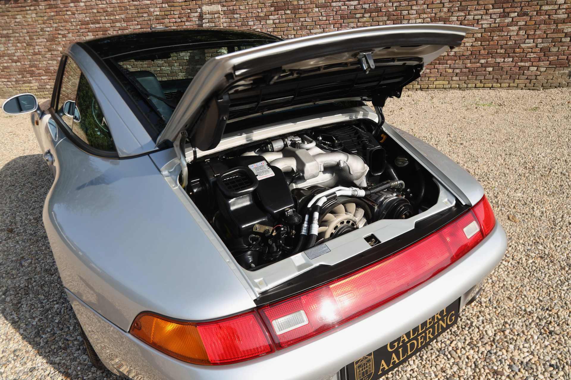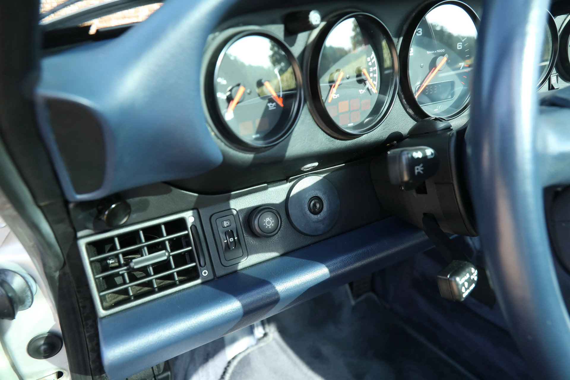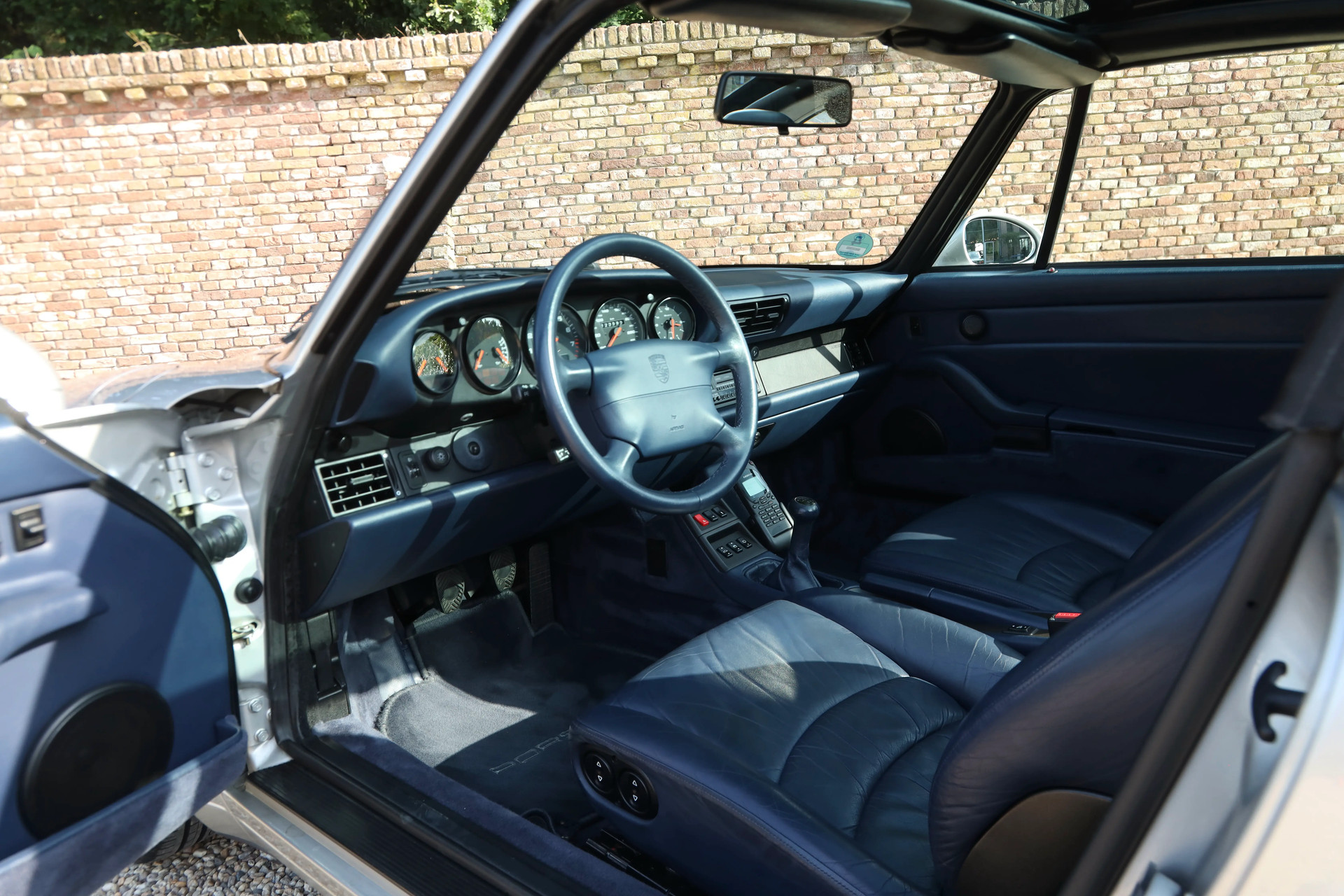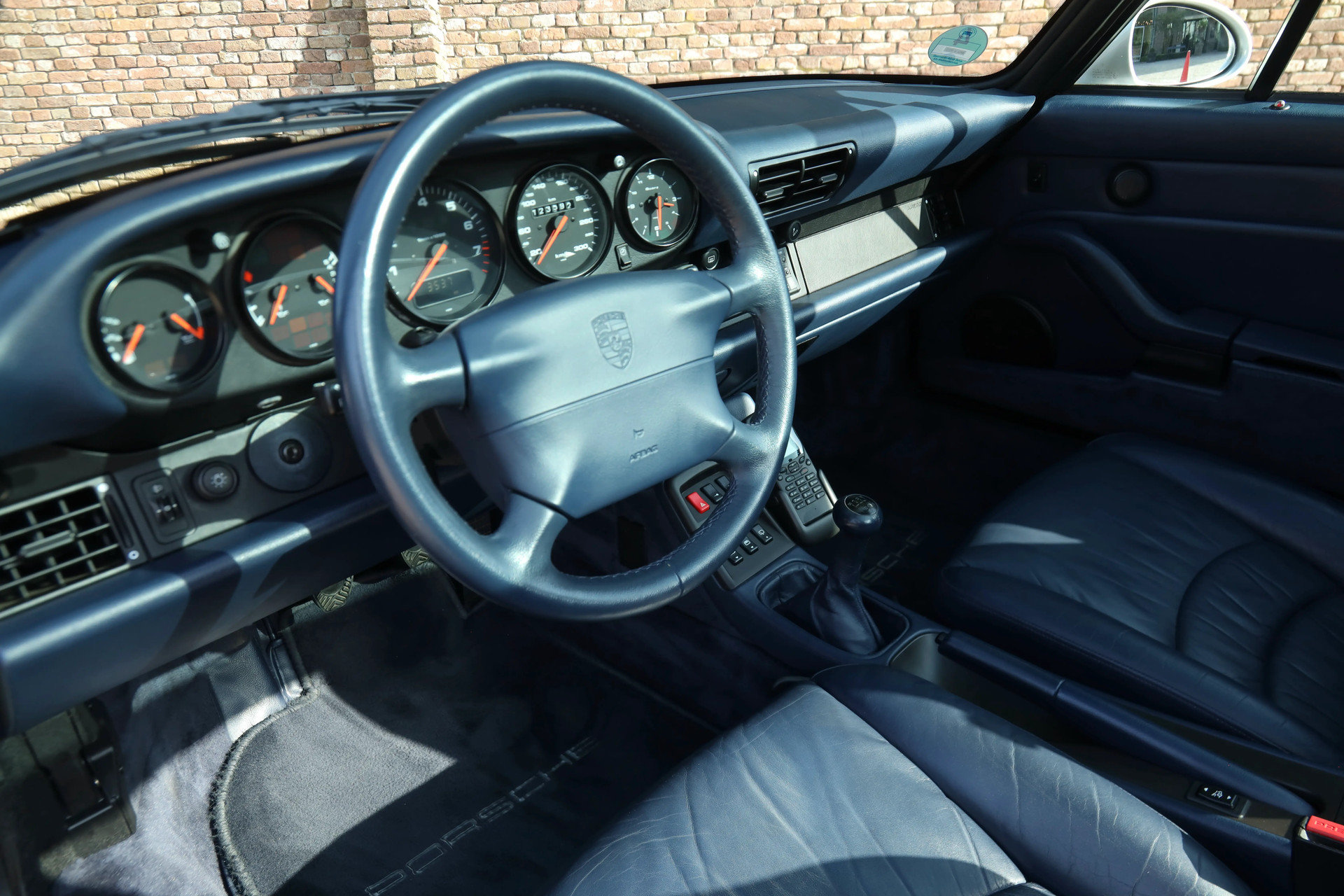 Of course, the centerpiece is the engine. The 3.6-liter flat-six produces 285 horsepower and 340 Nm of torque, and it sounds exactly as it should: rich, mechanical and alive. The manual gearbox, in our view, is a major highlight, enhancing the analog character that makes the 993 so engaging. Thanks to its relatively low mileage and full service history, this Porsche drives superbly. The transmission shifts smoothly, the clutch is light yet communicative, steering is wonderfully precise – exactly what this model is famous for – and the overall feel is reassuringly solid, just as you would expect.