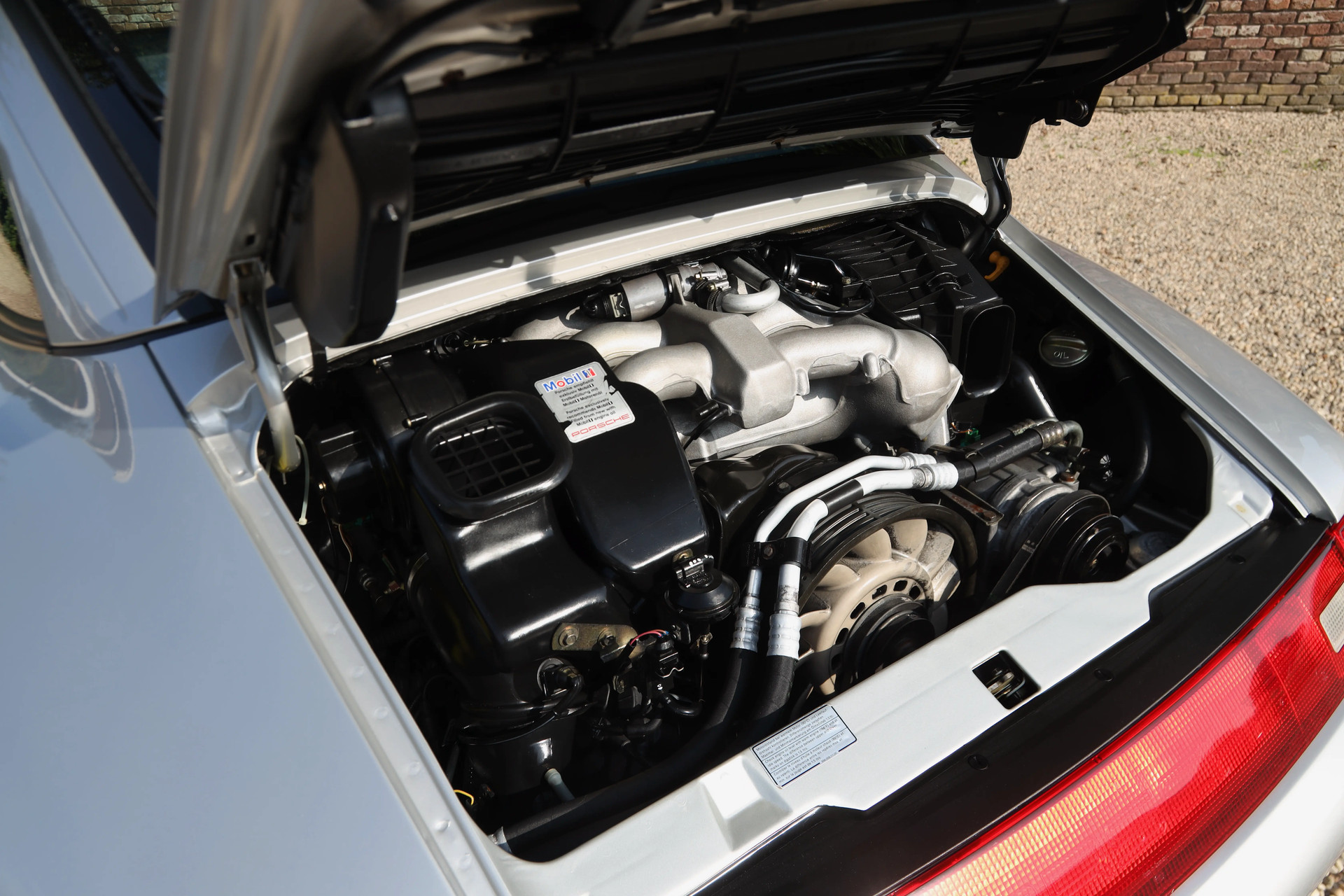 De motor is uiteraard iconisch. De 3,6 liter met 285 pk, 340 Nm aan koppel klinkt fantastisch en klinkt zoals het hoort. De handgeschakelde versnellingsbak is naar onze mening een enorm pluspunt en complementeert het analoge karakter van deze 993 op de juiste wijze. Door de relatief lage kilometerstand en de volledige onderhoudshistorie, rijdt deze Porsche geweldig. De versnellingsbak schakelt soepel, de koppeling gaat licht maar wel met veel gevoel, het sturen is bijzonder fijn (daar staat dit model dan ook om bekend) en het geheel maakt een zeer solide indruk, eigenlijk precies zoals u mag verwachten.