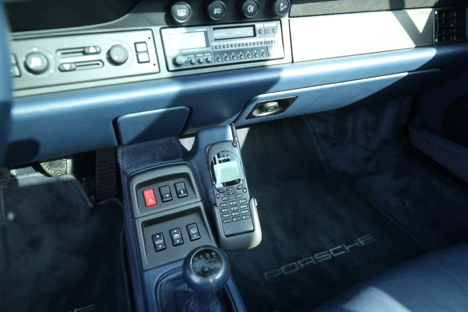 Step inside and you are greeted by a Midnight Blue leather interior finished in Raff leather. With options such as air conditioning, cruise control, a Blaupunkt Symphony radio and even the now-iconic Nokia phone, this 993 has just the right touches of luxury and nostalgia.