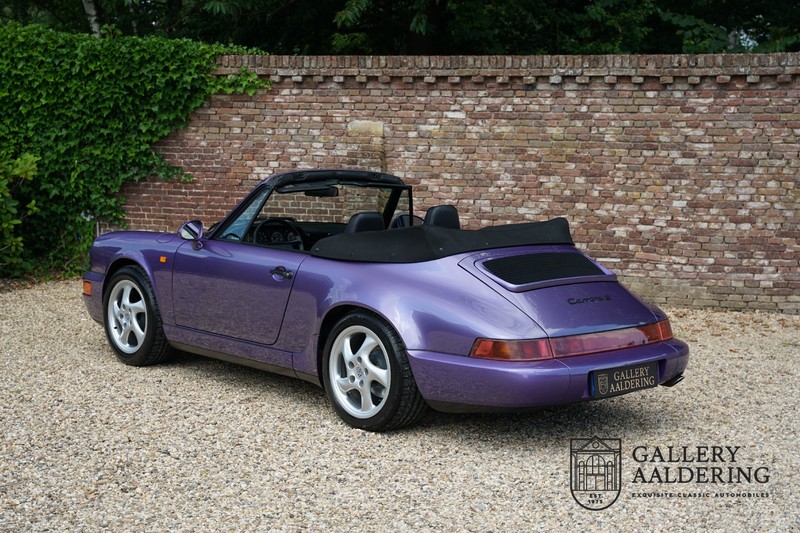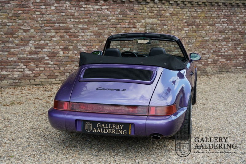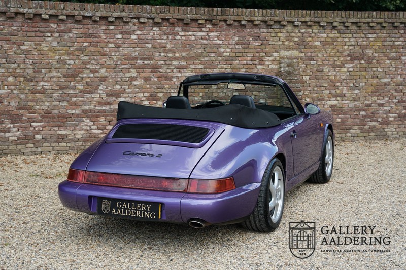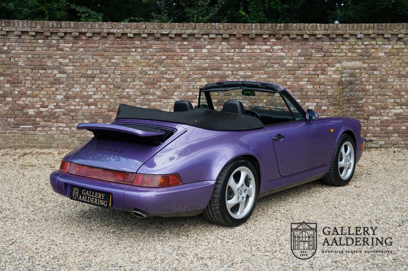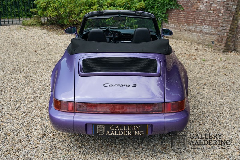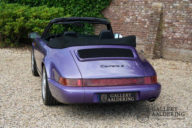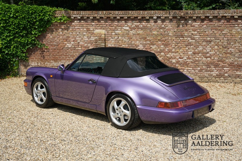 Het betreft hier een prachtige Porsche 964 Carrera 2 cabriolet uit 1990. De auto is nieuw geleverd in Kiel in Duitsland en is in 1997 naar Nederland gekomen. Sindsdien heeft de auto mara één eigenaar gehad die zeer goed voor de auto heeft gezorgd. De Porsche heeft nog geen 120.000 kilometer op de teller en is altijd bij de Porsche dealer in onderhoud geweest.