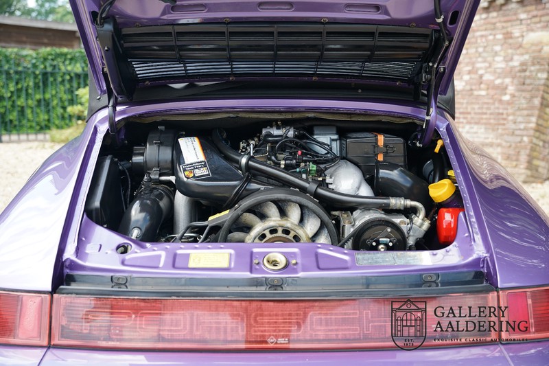 Für die Technik des 964 ist perfekt gesorgt. Der Wagen wurde immer beim Porsche-Importeur in Leusden zur Wartung angeboten. Der Motor wurde 1998 komplett überholt und wird seitdem perfekt gewartet. 2015 wurde der Motor neu verpackt und dann regelmäßig gewartet. Die Rechnungen für die Wartung sind selbstverständlich mit dem Auto vorhanden. Angetrieben wird der Porsche 964 von einem 3,6-Liter-Sechszylinder-Boxermotor, der 260 PS bei 6.1000 U/min leistet. Der Motor ist an ein Viergang-Automatikgetriebe gekoppelt, das Sie über den Tiptronic-Modus auch selbst schalten können. Der Porsche beschleunigt in 6,2 Sekunden von 0 auf 100 und erreicht eine Höchstgeschwindigkeit von 256 Stundenkilometern. Auch nach 31 Jahren noch hervorragende Leistung.