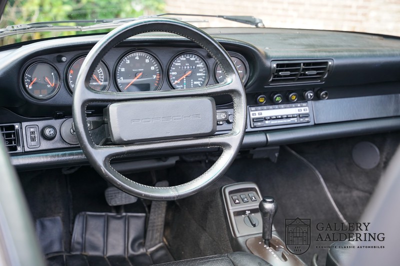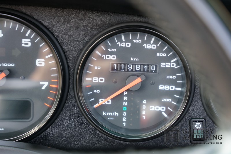 The technology of the 964 is perfectly taken care of. The car has always been offered for maintenance at the Porsche importer in Leusden. The engine was completely overhauled in 1998 and has been perfectly maintained since then. In 2015 the engine was repackaged and then regularly serviced. Of course, the invoices for the maintenance are present with the car. The Porsche 964 is powered by a 3.6 litre six-cylinder boxer engine that produces 260 hp at 6,1000 rpm. The engine is coupled to a four-speed automatic transmission that you can also shift yourself using the Tiptronic mode. The Porsche goes from 0-100 in 6.2 seconds and reaches a top speed of 256 kilometres per hour. Even after 31 years still has excellent performance.