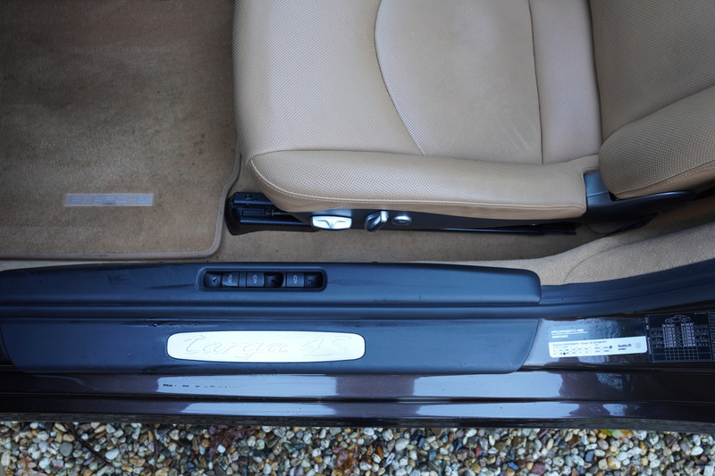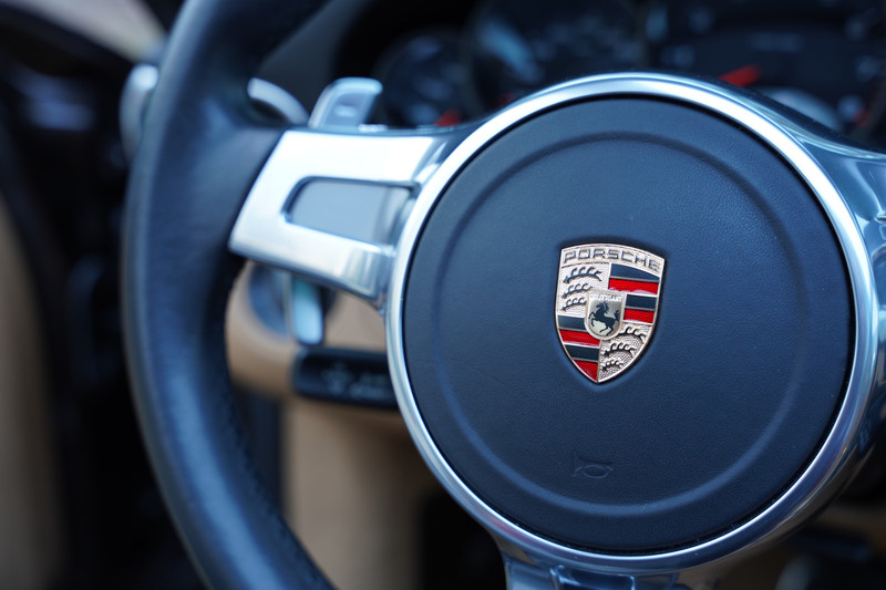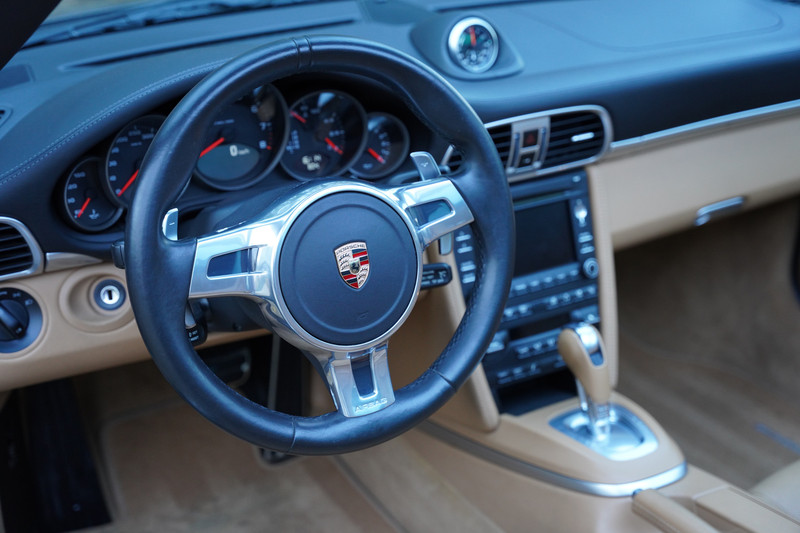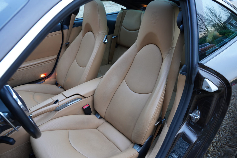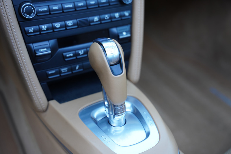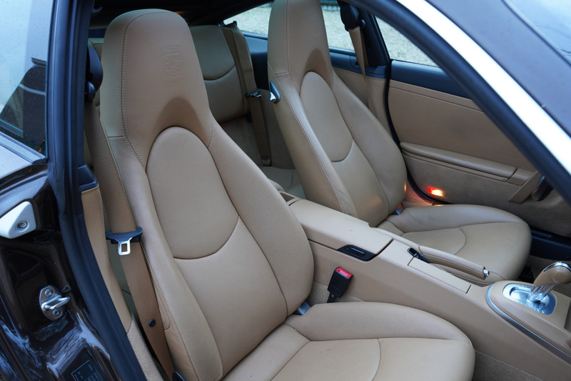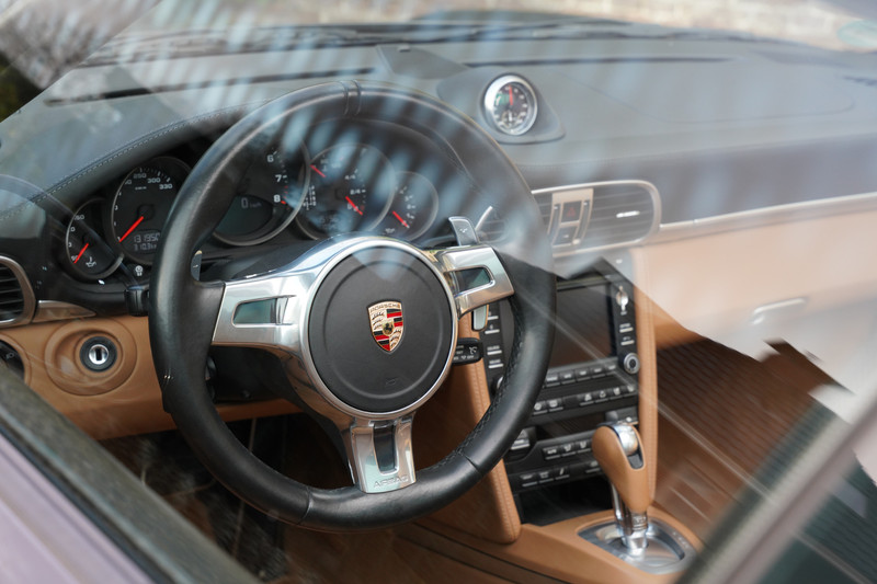 Kommen wir gleich zum Punkt: Dieser 911 hat einiges zu bieten, was Liebhaber begeistern wird: Mit dem sehr komfortablen Automatikgetriebe lässt sich in diesem 4S schalten und man hat sich für das Sport Chrono Plus-Paket entschieden. Und dann hätten wir fast vergessen, das optionale Schiebedach zu erwähnen: dieses hier! Auch nicht zu übersehen: die wunderschöne Macadamia-Metallic-Lackierung über einer wirklich schönen hellbraunen Lederausstattung.