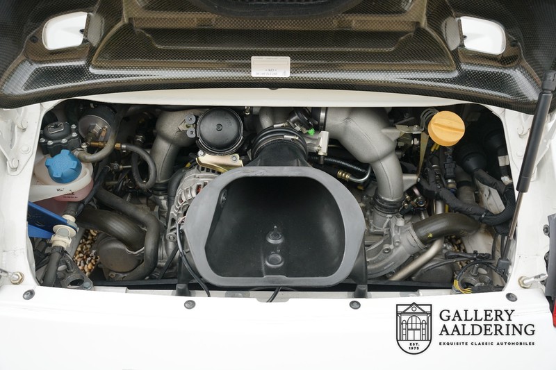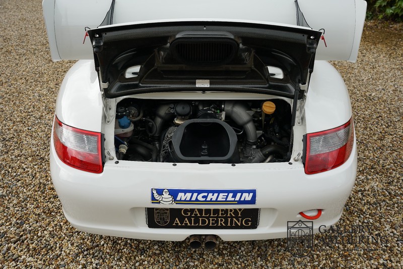 Wat deze auto écht bijzonder maakt en laat opvallen tussen soortgelijke auto’s is de conditie. Laten we beginnen bij de motor, die heeft nog maar 37 uur gedraaid en heeft zelfs nog de originele Porsche verzegeling. De auto werd nieuw geleverd door Porsche Centrum Leipzig en is één van de slechts 195 Cup auto’s die Porsche voor het seizoen van 2006 bouwde. Maar nu het meest opmerkelijk. Na het seizoen van 2006 verdween de auto in een verzameling en werd er niet meer mee gereden. Meestal krijgen dit soort auto’s nog zware levens in de handen van mindere goden en in minder prestigieuze raceklassen. Dit exemplaar stond echter mooi te zijn in een verwarmde garage en staat er dan ook tadeloos bij.