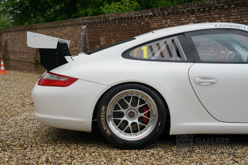 Het betreft hier de oude auto van Allessandro Zampredi waarmee hij tijdens het seizoen van 2006 heeft meegedaan aan de Porsche 997 Cup. Hij kwam uit voor de formatie van Lechner Racing. De Porsche 997 GT3 Cup is een absolute geweldenaar. De auto weegt slechts 1.150 kilo, heeft 400 pk en een sequentieel geschakelde zesbak. Een op en top raceauto, het beste dat Porsche kon leveren in 2006.
