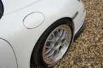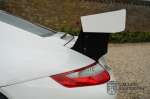 Am Ende der Saison wurde die Folie entfernt und jetzt strahlt das Auto mit seiner schönen Farbe “Carrera Weiss“. Dies alles wird komplettiert mit dem riesigen Heckflügel mit Gurney Flap, den ikonischen 3-teiligen Centerlock BBS-Felgen und dem großen Frontspoiler. Die Räder haben sehr große Bremsen und Michelin Regenreifen. Vorne und hinten sind jeweilig 6- und 4-Kolbenbremsen montiert, welche eine enorme Bremskraft erzeugen. Es sieht wirklich fantastisch aus. Alle Scheiben wurden aus Sicherheitsgründen und wegen Gewichteinsparung ersetzt von Lexanfenster. Das Auto hat ein luftbetriebenes eingebautes Hebesystem, alle Gummis der Radaufhängung wurden ersetzt von Uniballs, es wurde ein 90 Liter Benzintank montiert und so sind die Modifizierungen von diesem GT3 Rennwagen unendlich. Porsche hat wie immer gute Arbeit geleistet.