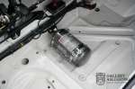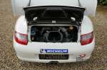 Na het seizoen is de carrosserie ontdaan van de wrap en staat ze nu prachtig te stralen in haar heerlijke “Carrera Weiss” maatpak. Het plaatje aan de buitenkant wordt gecompleteerd door de grote splitter, de enorme achterspoiler mét Gurney Flap en de iconische driedelige centerlock BBS-wielen die worden gevuld door enorme remmen en zijn voorzien van Michelin regenbanden. De remmen zijn aan de voorzijde voorzien van 6-zuigers en achter van 4-zuigers en hebben enorme remkracht. Het is simpelweg fantastisch om te zien. Porsche is bij de ontwikkeling van de 997 GT3 Cup natuurlijk niet over één nacht ijs gegaan. Porsche heeft er daarom voor gekozen om een aantal zaken anders te doen ten opzichte van de reguliere straatauto. Zo zijn alle ruiten omwille van de veiligheid en gewicht vervangen door exemplaren van polycarbonaat. De auto is voorzien van een ingebouwd kriksysteem dat werkt op lucht. Alle rubbers in de ophanging zijn vervangen door stalen uniballs. Daarnaast is de auto voorzien van een 90 liter tank Zo zijn de zaken die Porsche heeft veranderd ten opzichte van de straatauto eigenlijk eindeloos. Wat we met zekerheid kunnen stellen: Porsche heeft, zoals altijd, weer vakwerk geleverd.