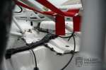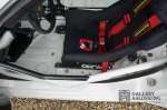 Das Interieur ist genau wie es sein soll in einem Rennwagen: spartanisch und funktionell. Die Standardinstrumenten wurden ersetzt von einem zentralen Motec Display. Der kurze Schalthebel wurde ersetzt von einem viel längeren Exemplar um das sequentielles Sechsgang-Getriebe zu bedienen und das normale ziemlich große Lederlenkrad wurde ersetzt von einem 3-Speichen OMP-Lenkrad. Selbstverständlich wird die Innenseite dominiert von dem Überrollkäfig mit FIA-Zertifikat. Außerdem hat Auto den Karbon OMD-Sitz von Herrn Zampredi. Es wurden Kunststofftüren montiert, auch um den Gewicht zu reduzieren.