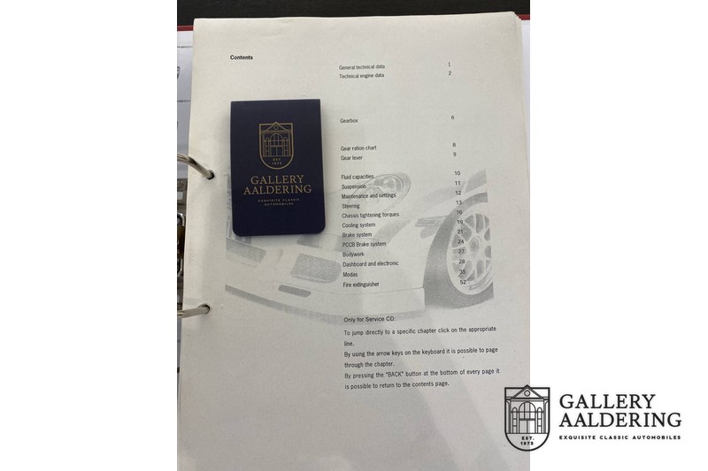 De 911 wordt geleverd met zeer uitgebreide documentatie. Begin dit jaar heeft de auto een volledige servicebeurt gehad, de factuur á € 2.300,- daarvan is aanwezig. Daarnaast zijn de papieren die benodigd zijn om de auto wederom in te schrijven voor competitie aanwezig, een uitgebreide technische handleiding en veel historie die de unieke geschiedenis van deze Cup auto onderschrijven.