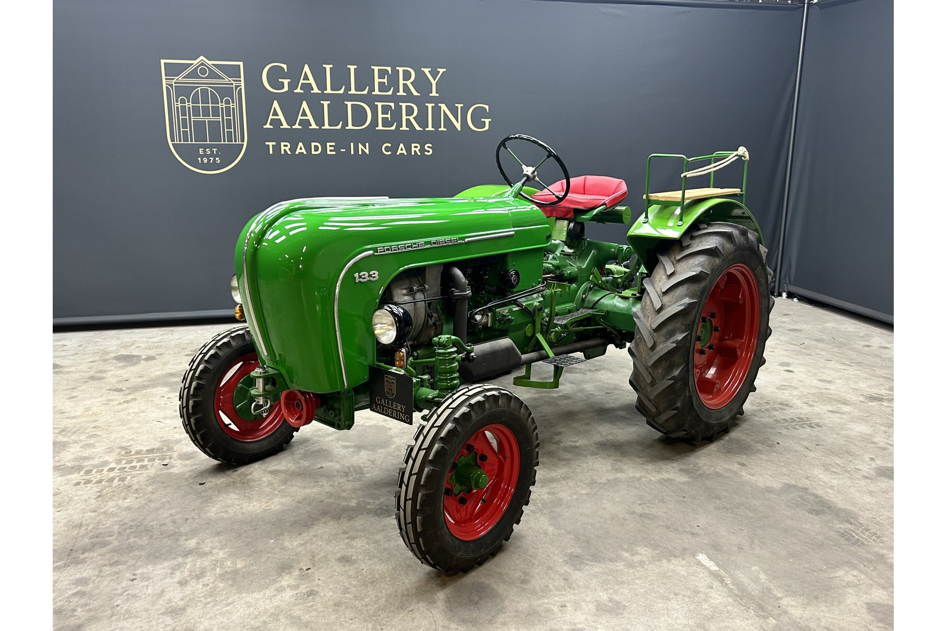The 1956 A133 seamlessly blends practical strength with striking design. Finished in its original “Allgaier” green and presented as a rare 3-person version, this tractor brings the past to life with refined charm and exceptional versatility.