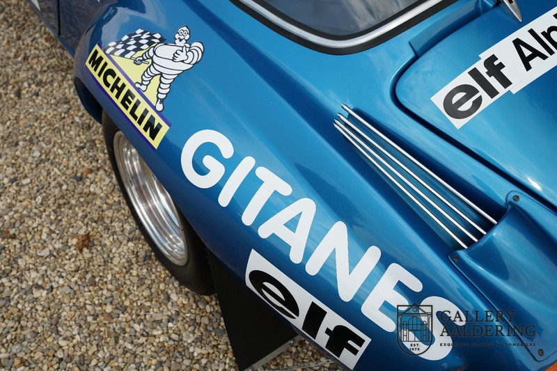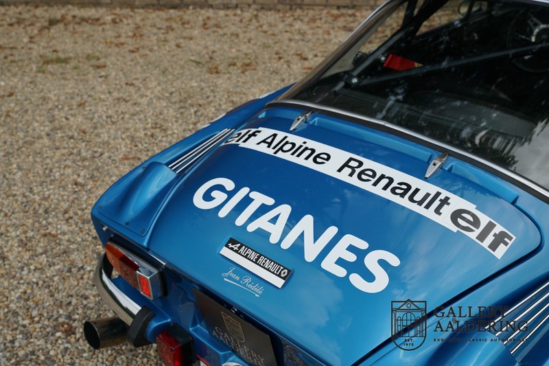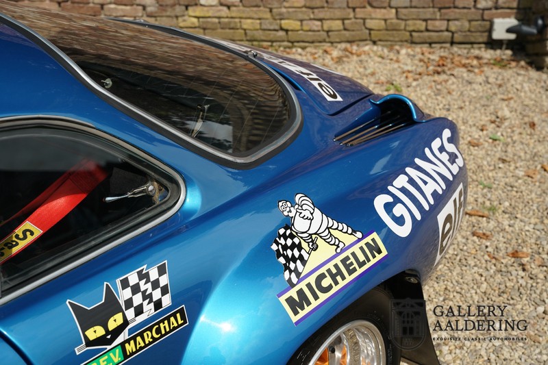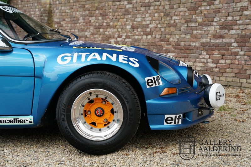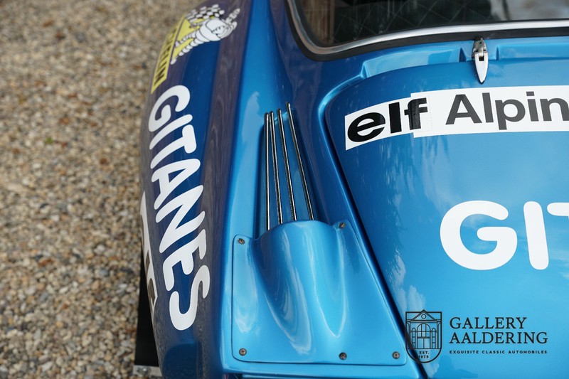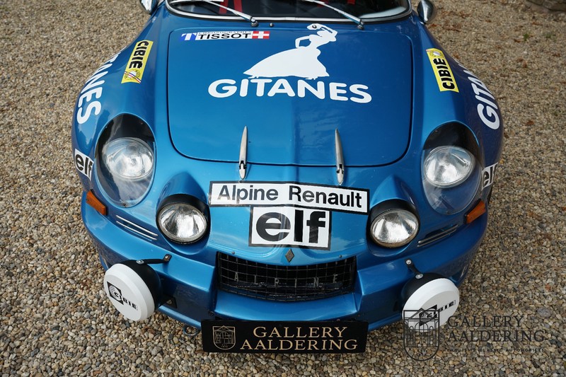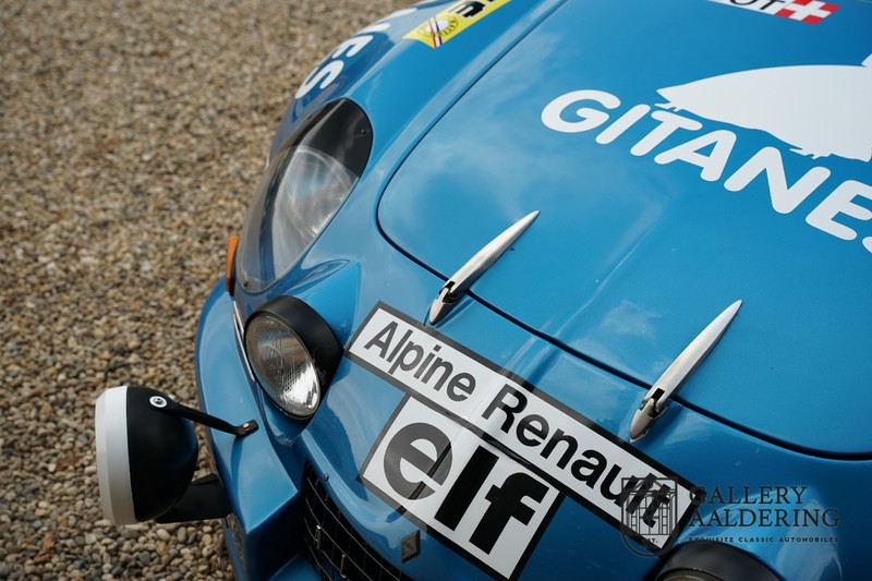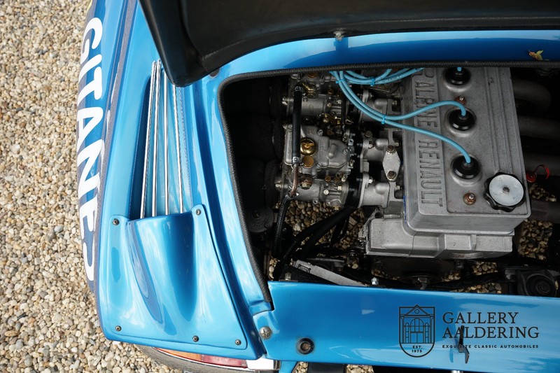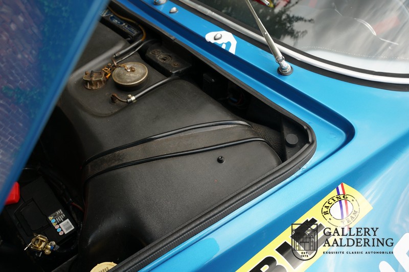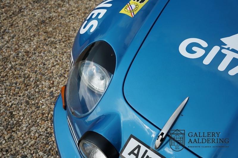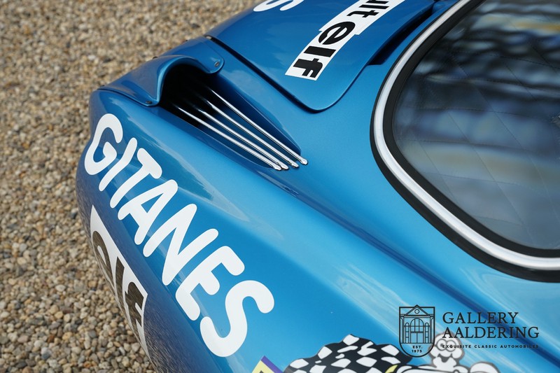 Dit exemplaar werd voor het eerst toegelaten tot het verkeer in Belgie en verkeert in prachtige conditie. De blauwe Alpine lak vormt een schitterend contrast met de oranje harten van de velgen. De aanwezige Gitanes livery maakt dat het lijkt dat de Alpine zo van de rallystage is doorgereden naar onze showroom. De carrosserie is deels van kunststof en verkeert in zeer goede en originele conditie. De blauwe lak is al eens opnieuw gespoten en ziet er nog steeds zeer goed uit. De velgen zijn recentelijk opnieuw opgemaakt en verkeren eveneens in zeer goede staat. De Gitanes livery is professioneel aangebracht en ziet er goed uit.